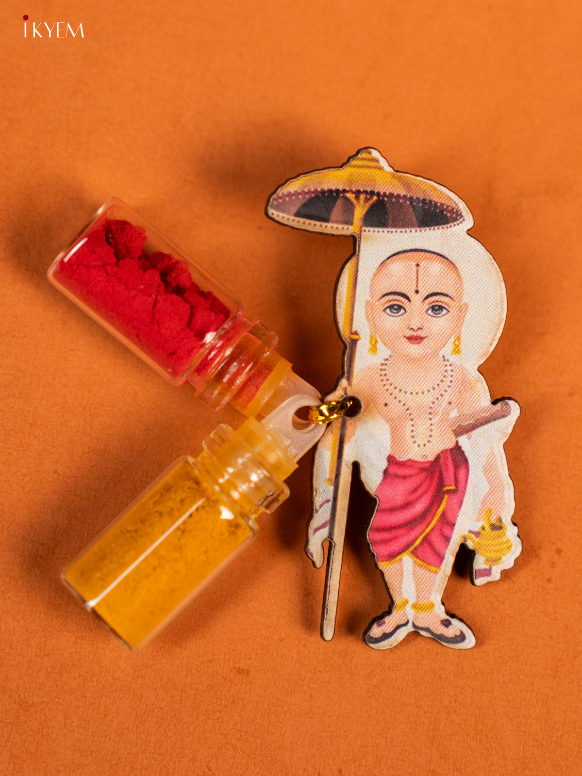 - Perfect for pooja and Navaratri, this elegant Haldi Kumkum bottle set features a beautiful design of Vamana.
