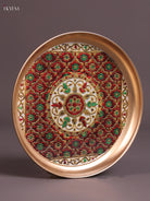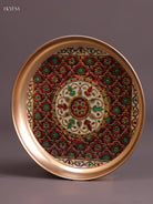 Floral - Printed Brass Coated Plate White & Red - 8 inch