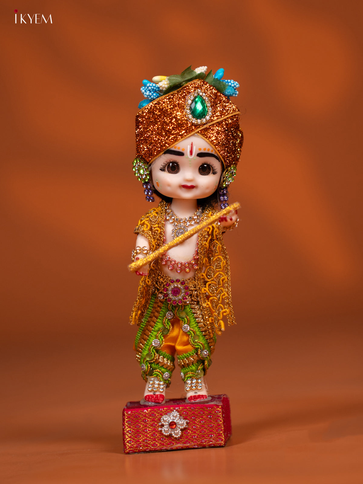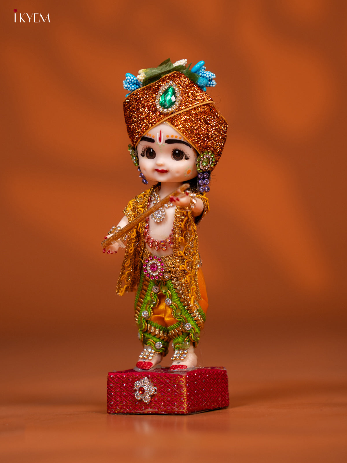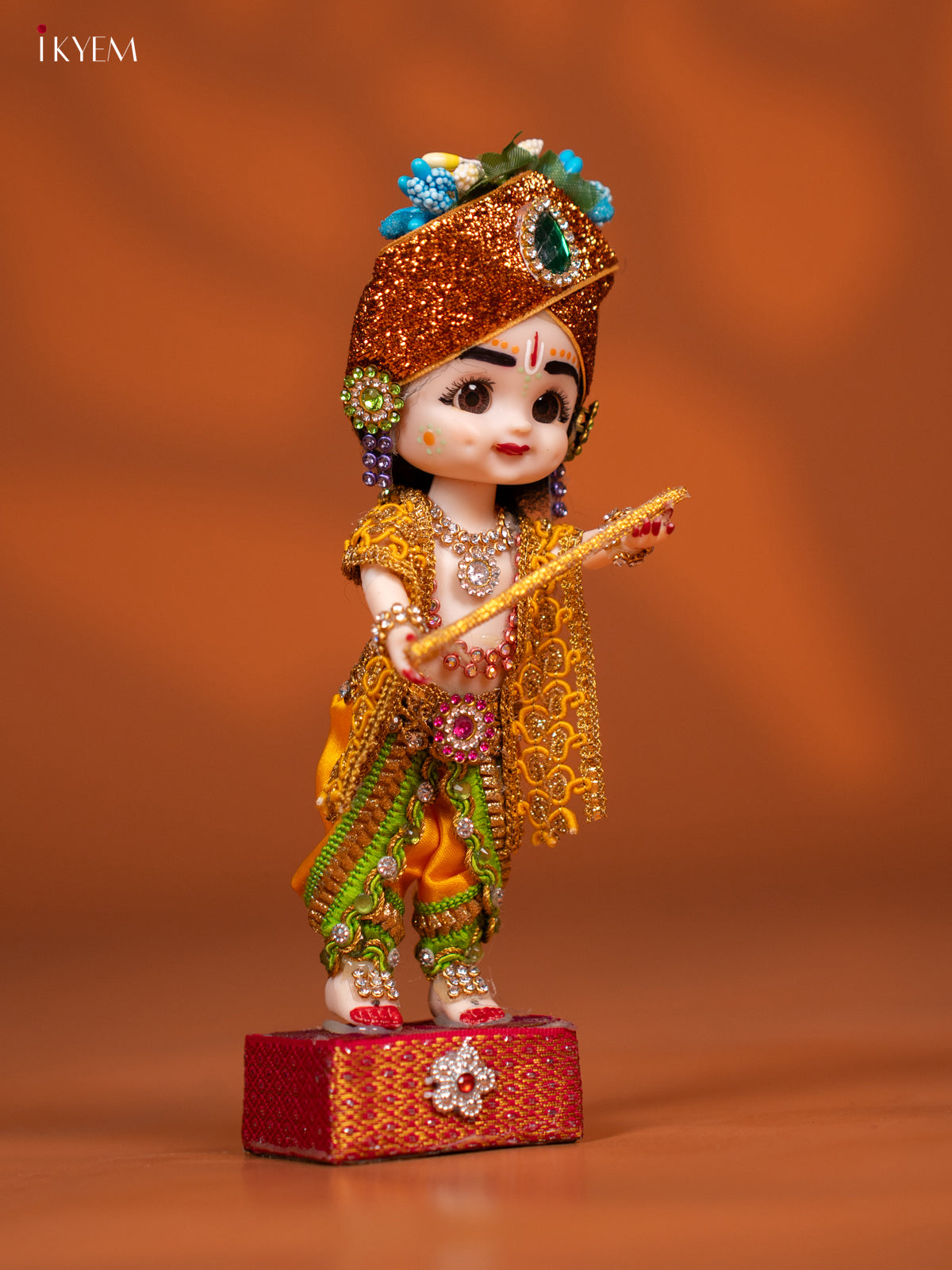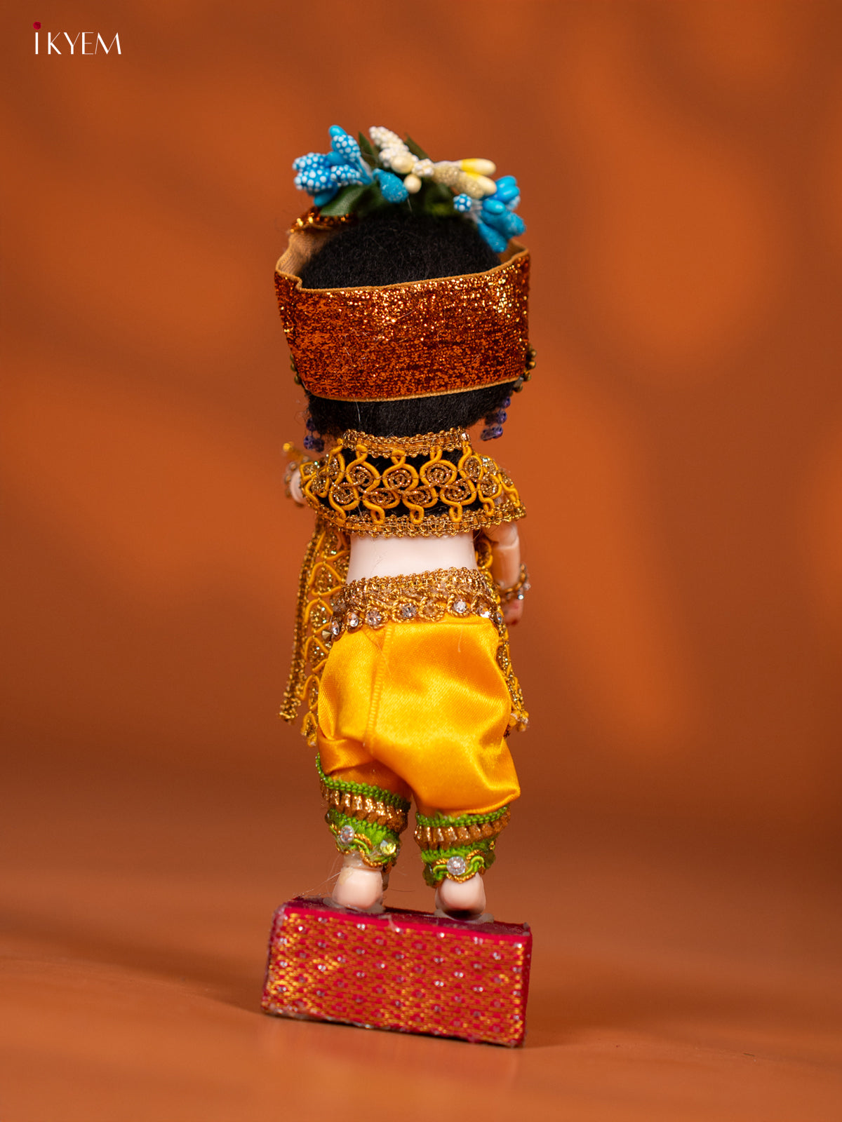 - Celebrate tradition with the Baby Krishna with Flute Golu Display Doll, featuring vibrant yellow and green attire.