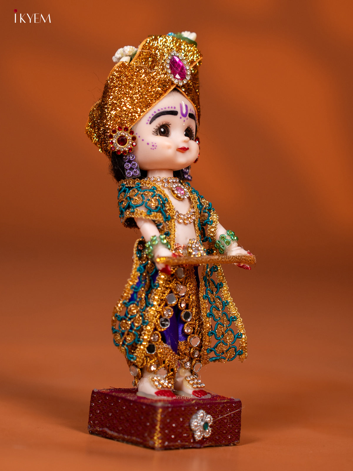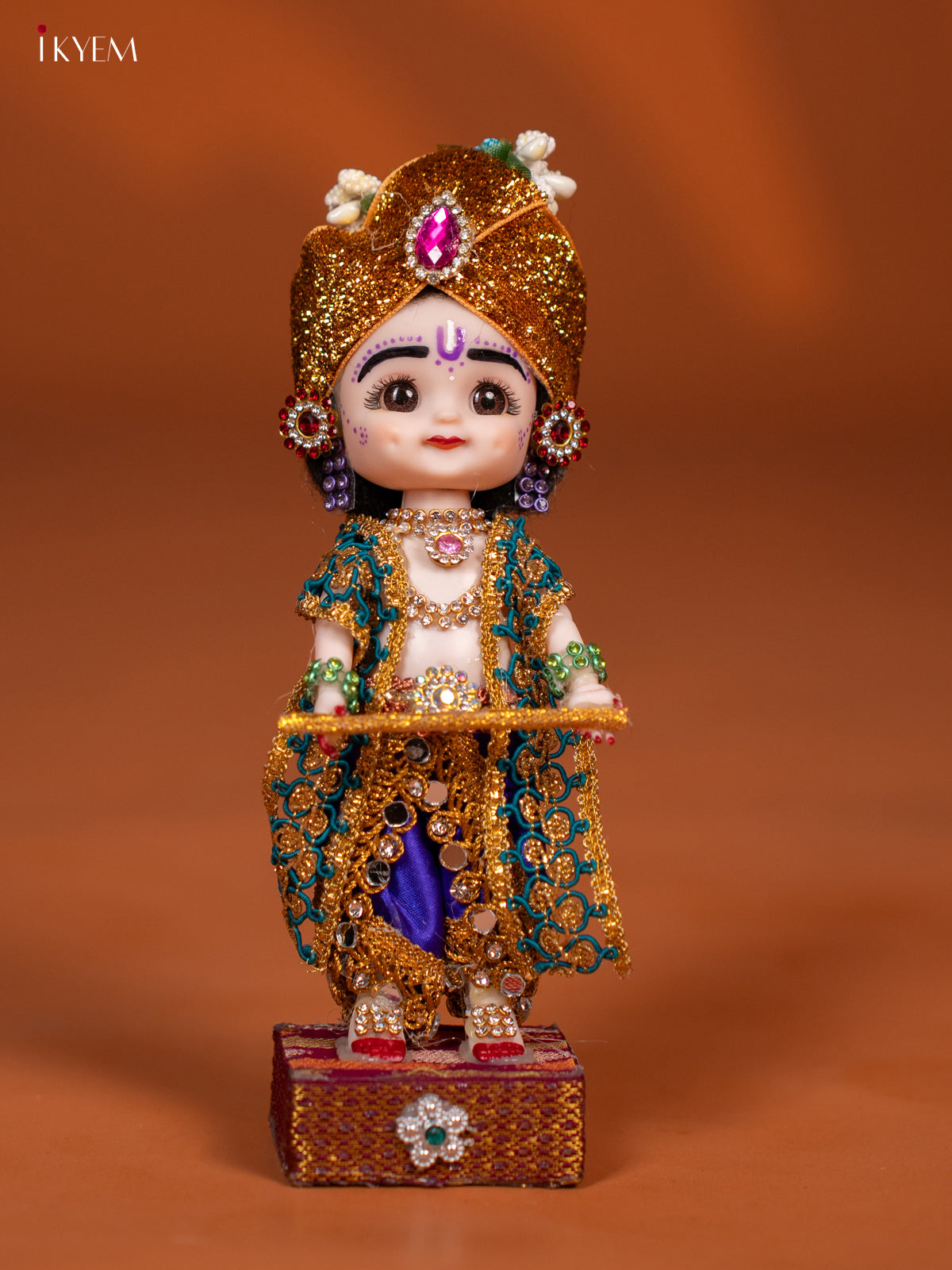 - Celebrate tradition with the Baby Krishna with Flute Golu Display Doll, featuring vibrant purple and green attire.