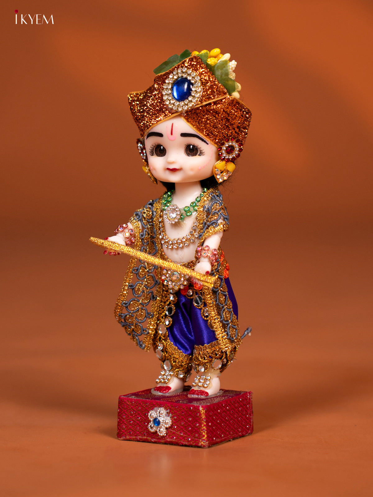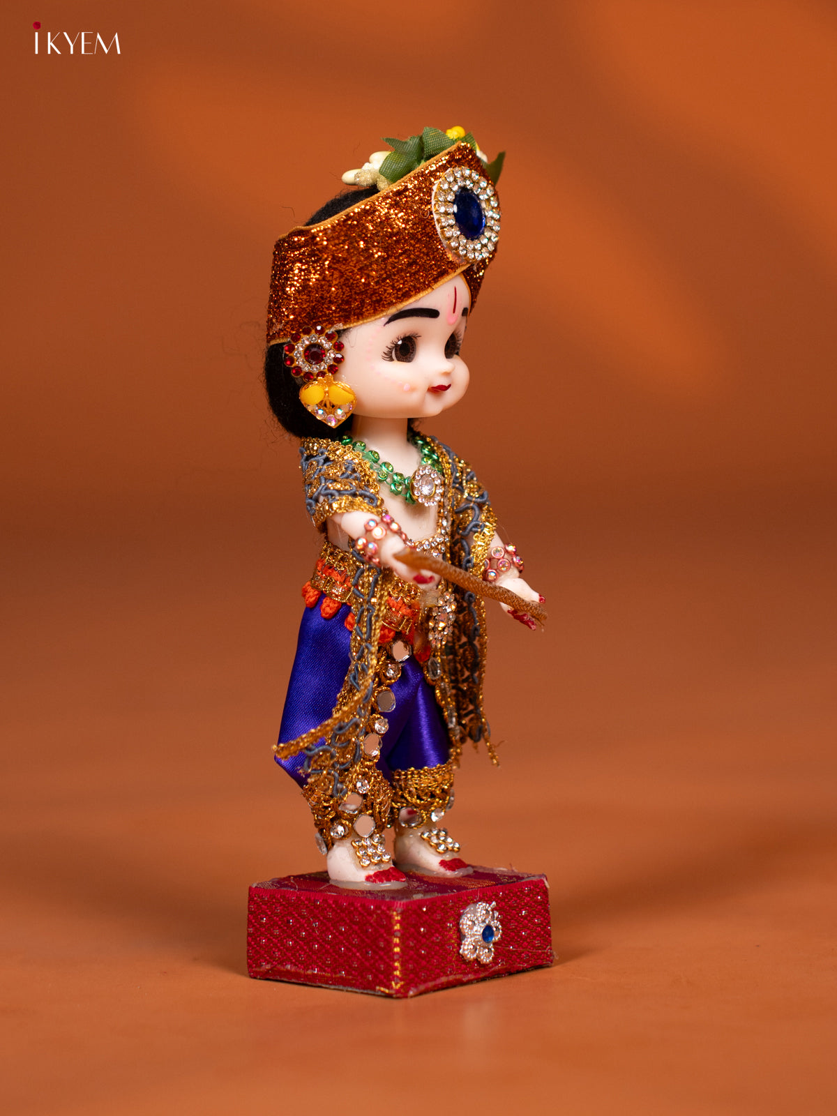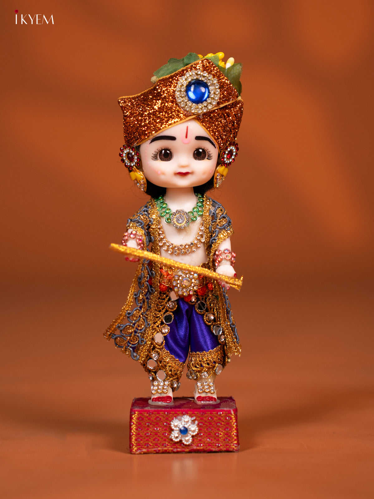 - Celebrate tradition with the Baby Krishna with Flute Golu Display Doll, featuring vibrant violet and blue attire.