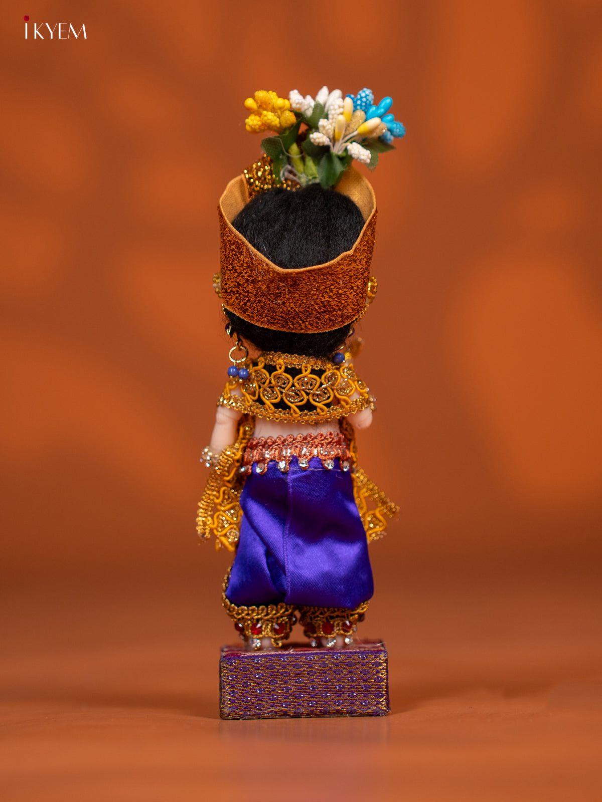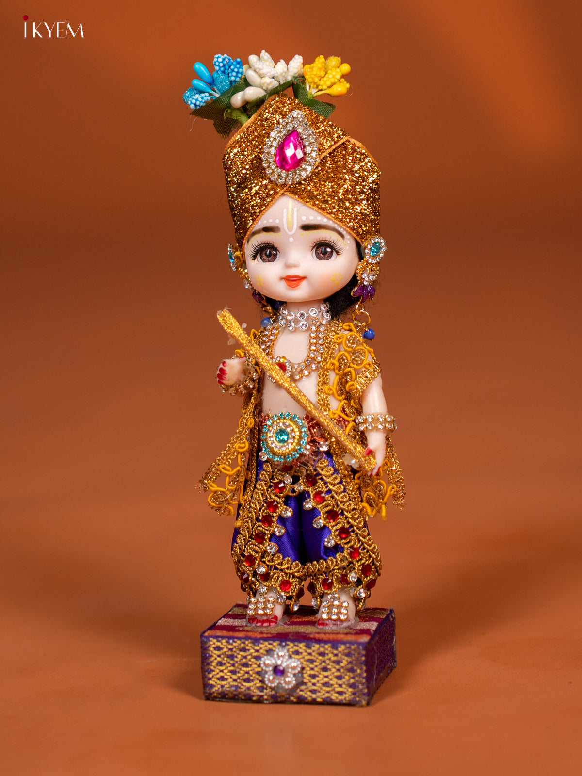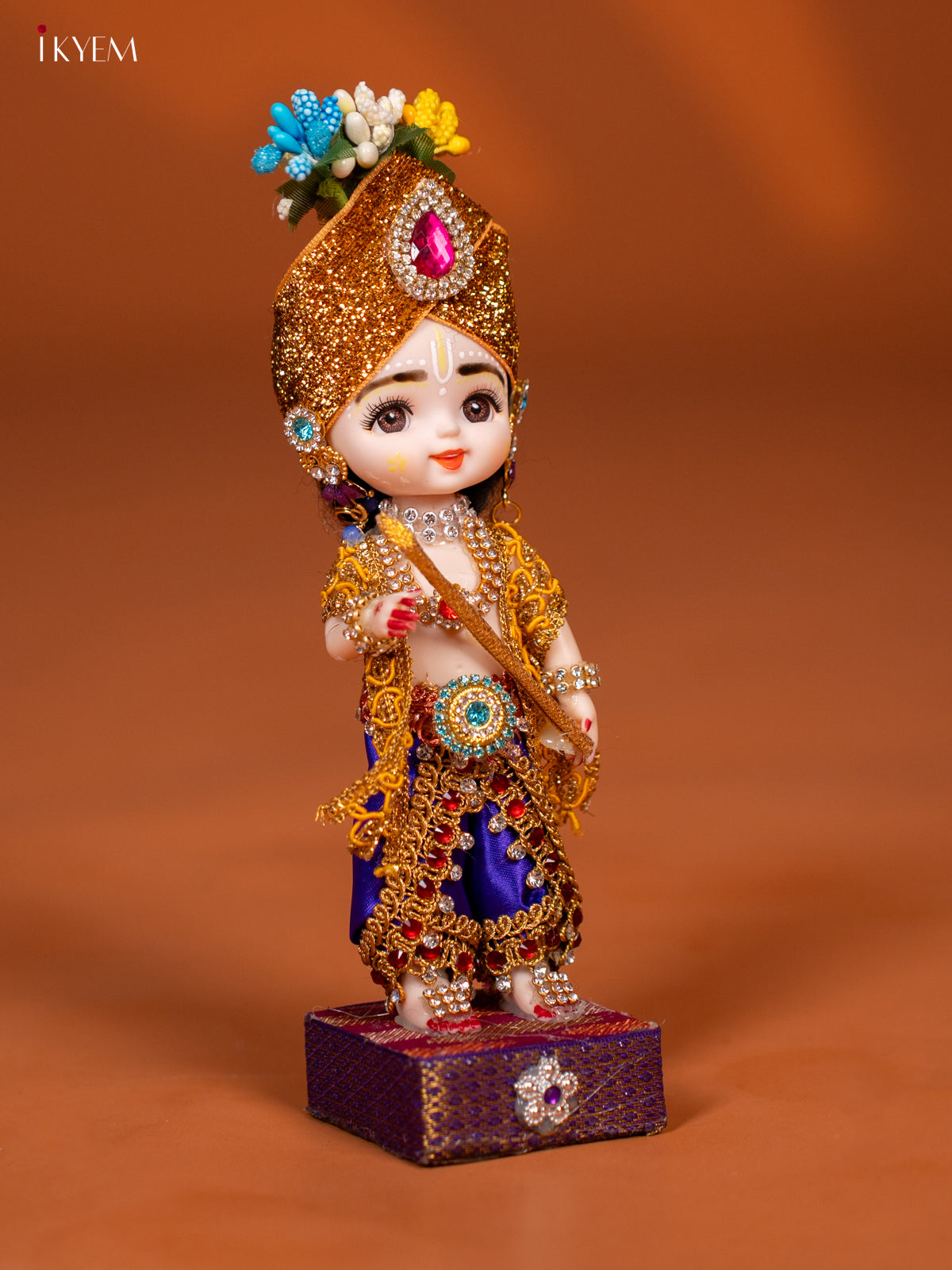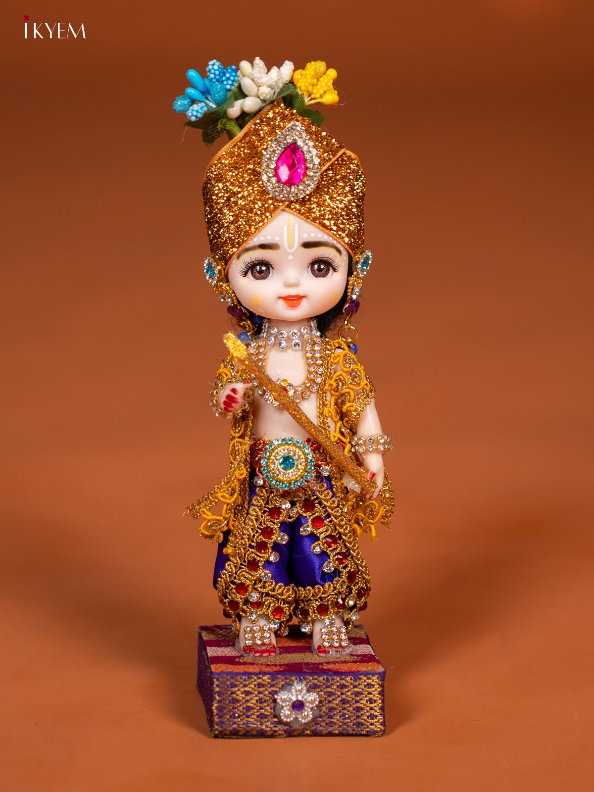 - Celebrate tradition with the Baby Krishna with Flute Golu Display Doll, featuring vibrant violet and orange attire.