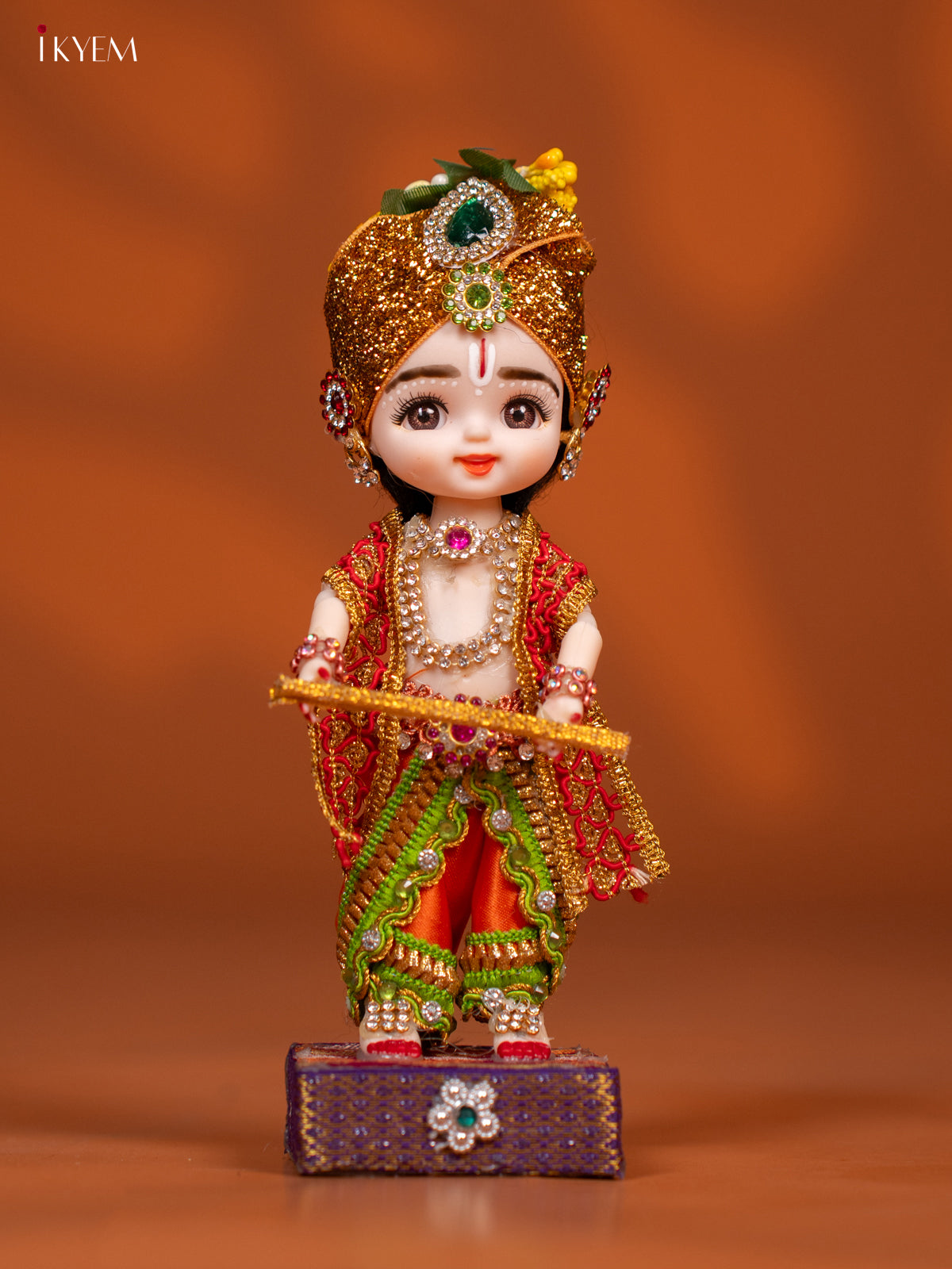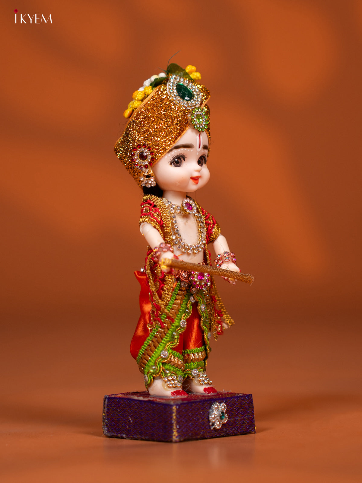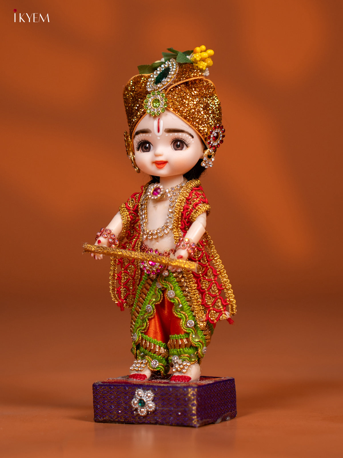 - Celebrate tradition with the Baby Krishna with Flute Golu Display Doll, featuring vibrant green and orange attire.