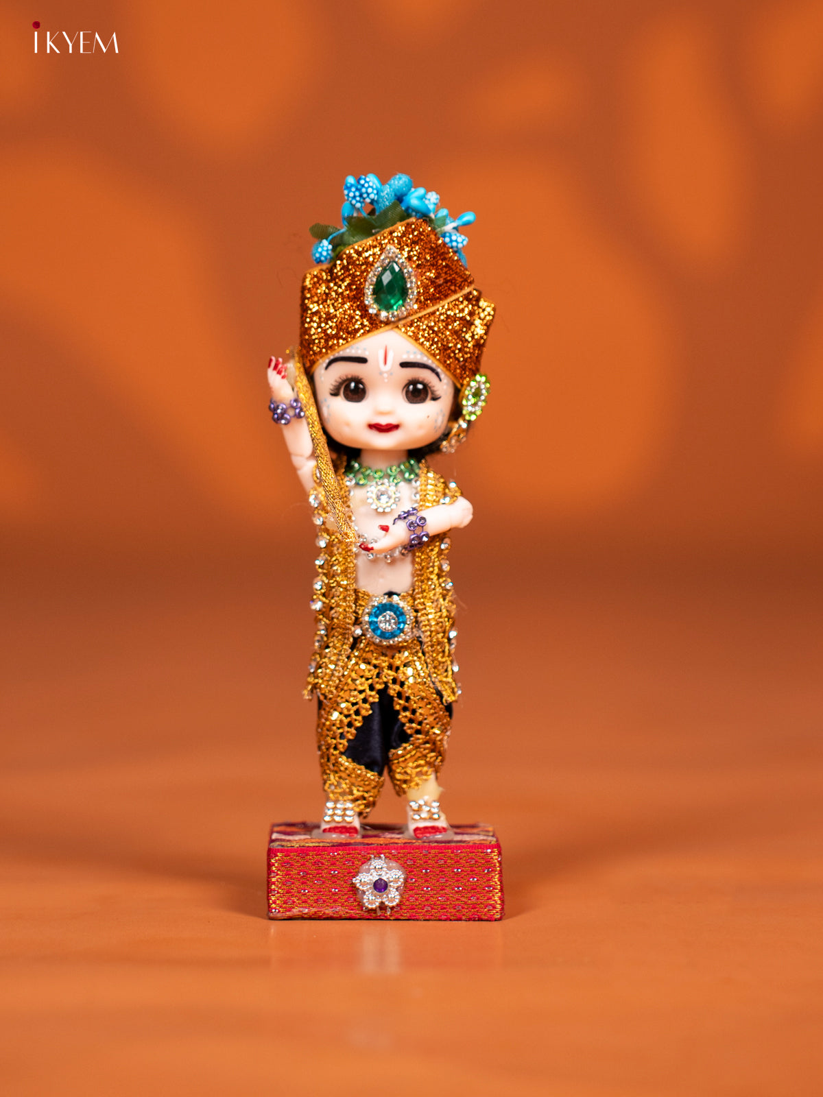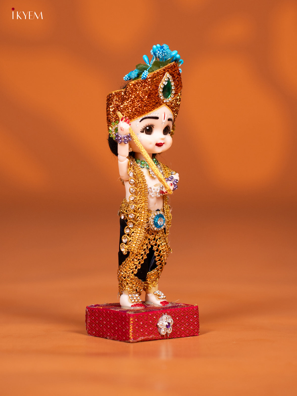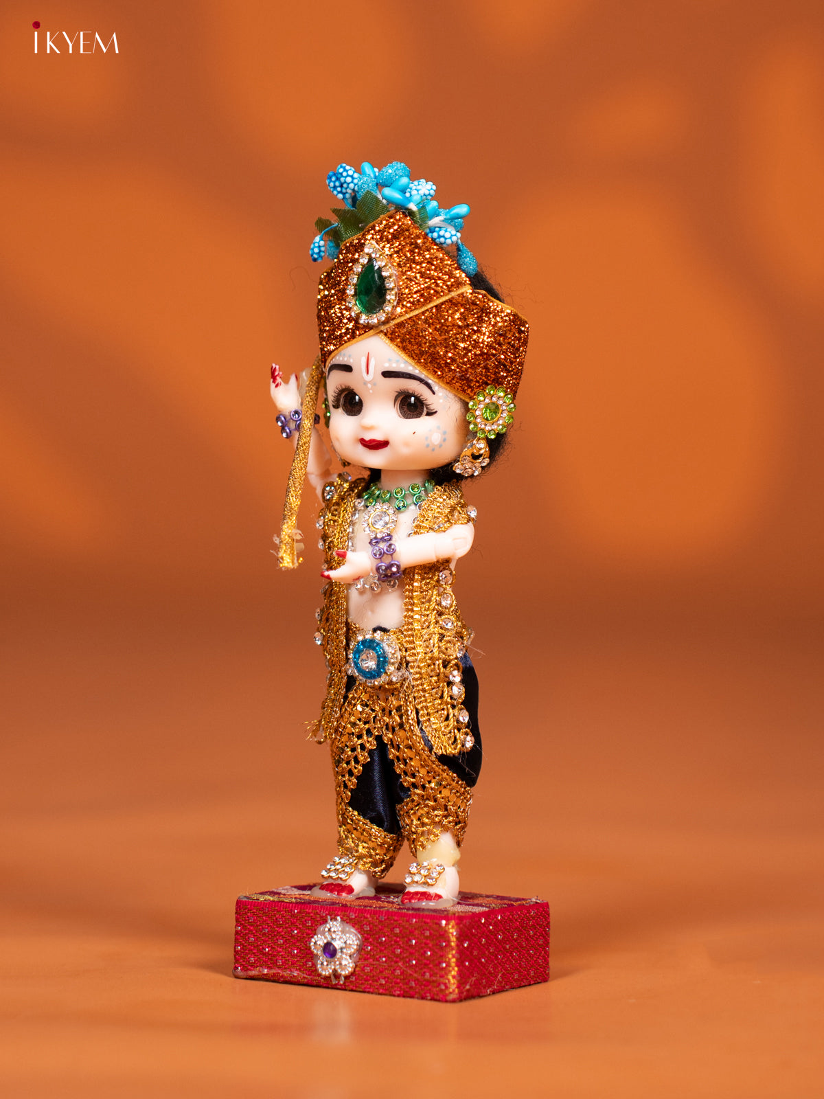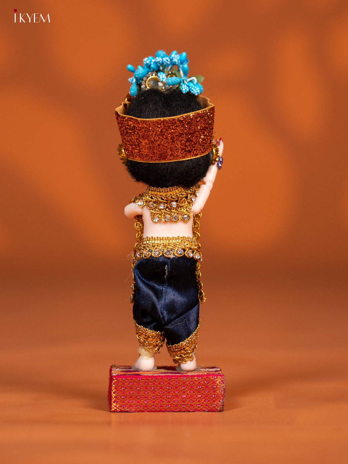 - Celebrate tradition with the Baby Krishna with Flute Golu Display Doll, featuring vibrant navy blue and gold attire.