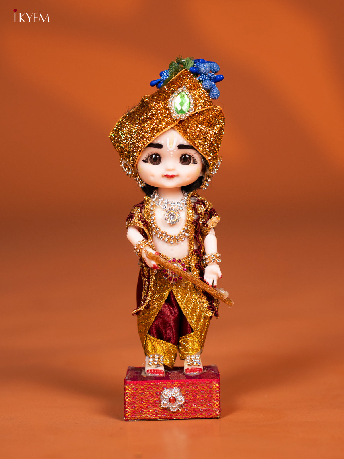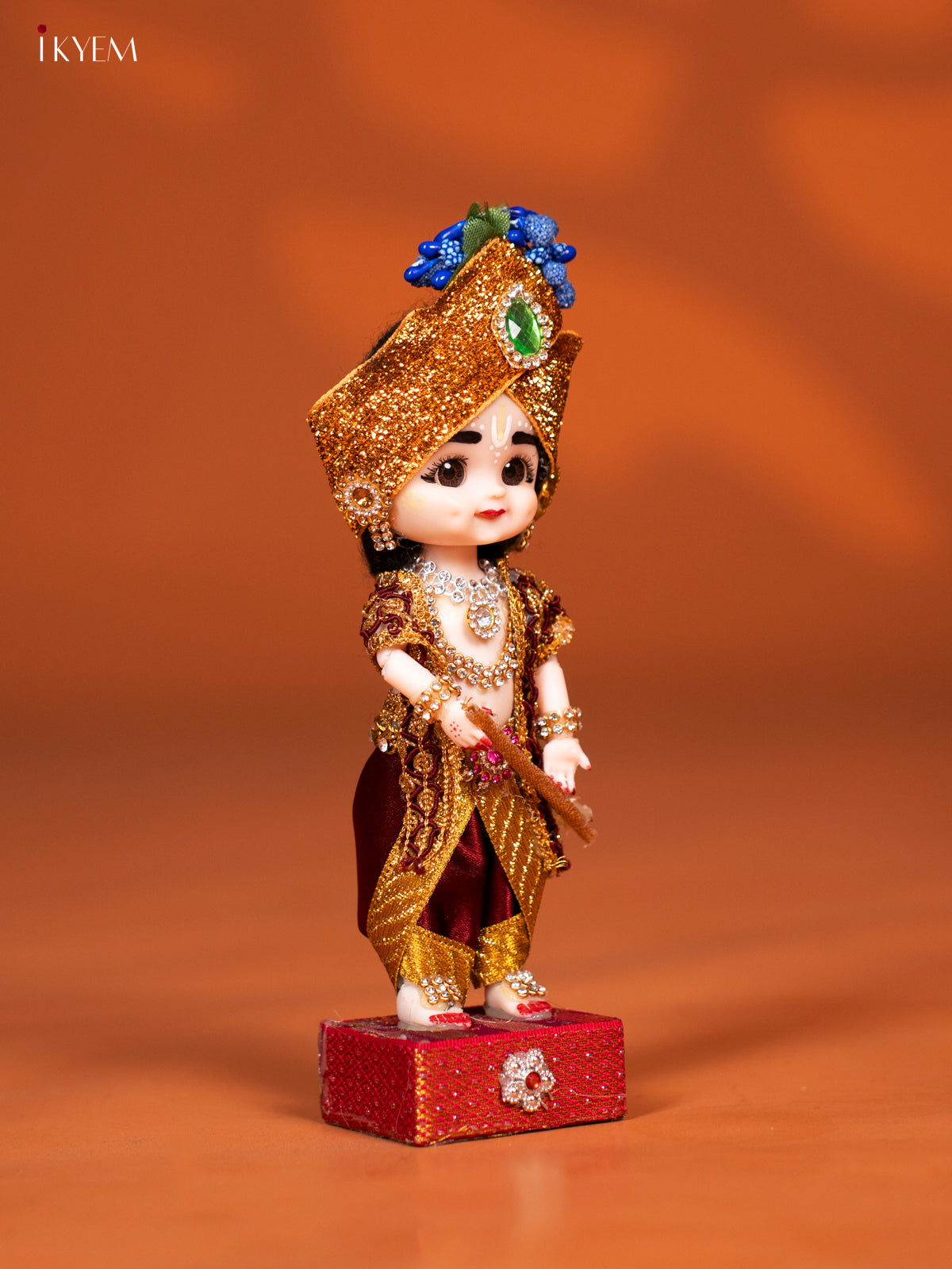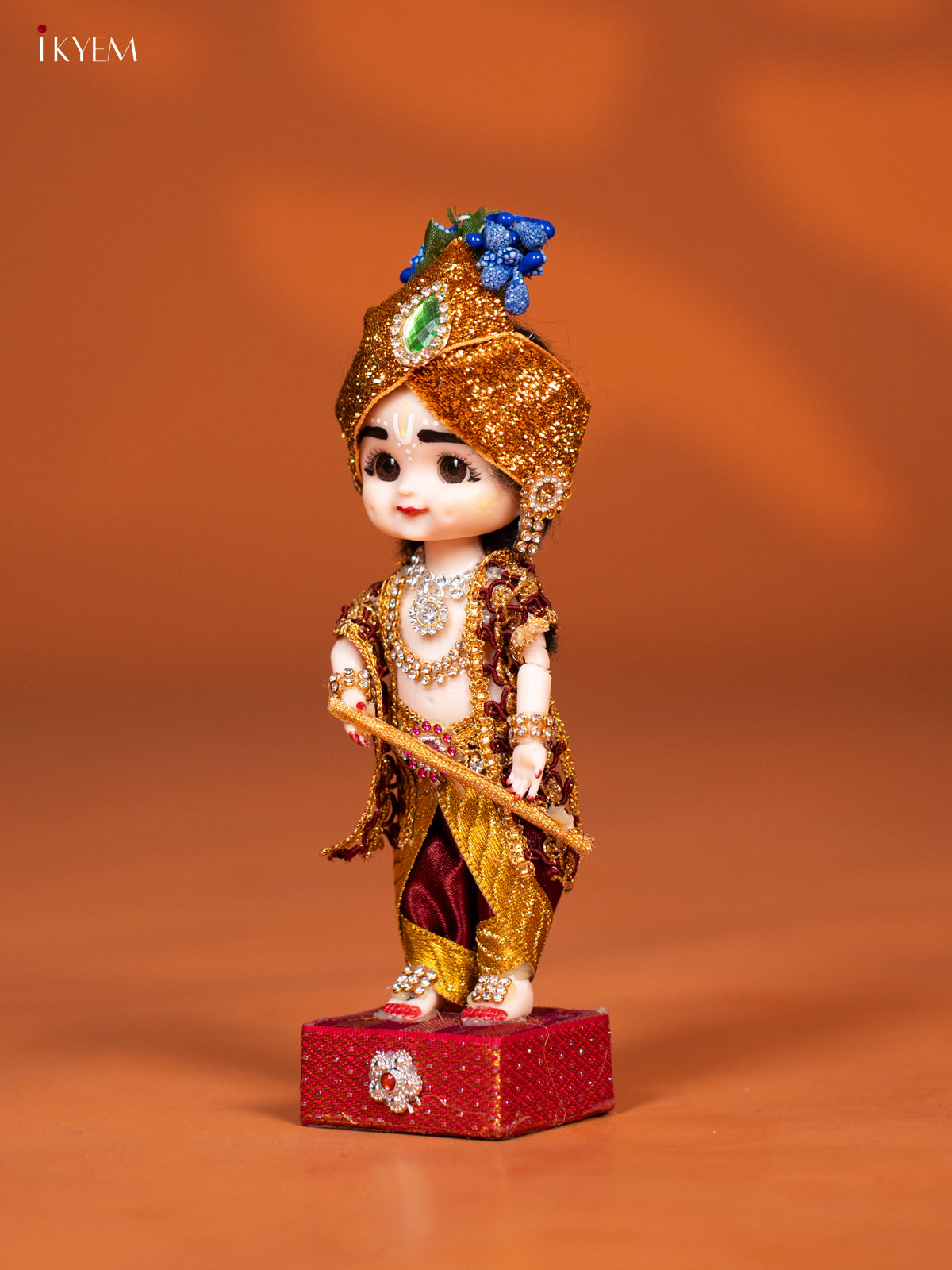 - Celebrate tradition with the Baby Krishna with Flute Golu Display Doll, featuring vibrant maroon and gold attire.