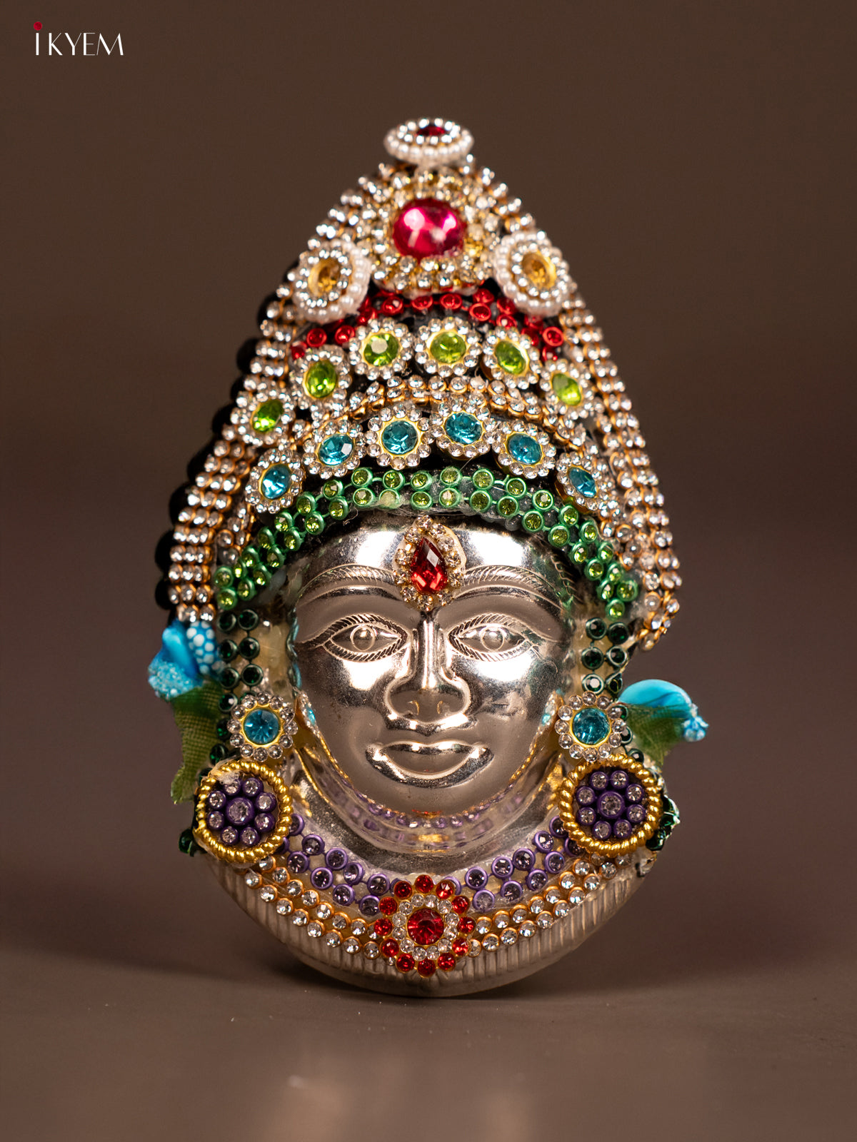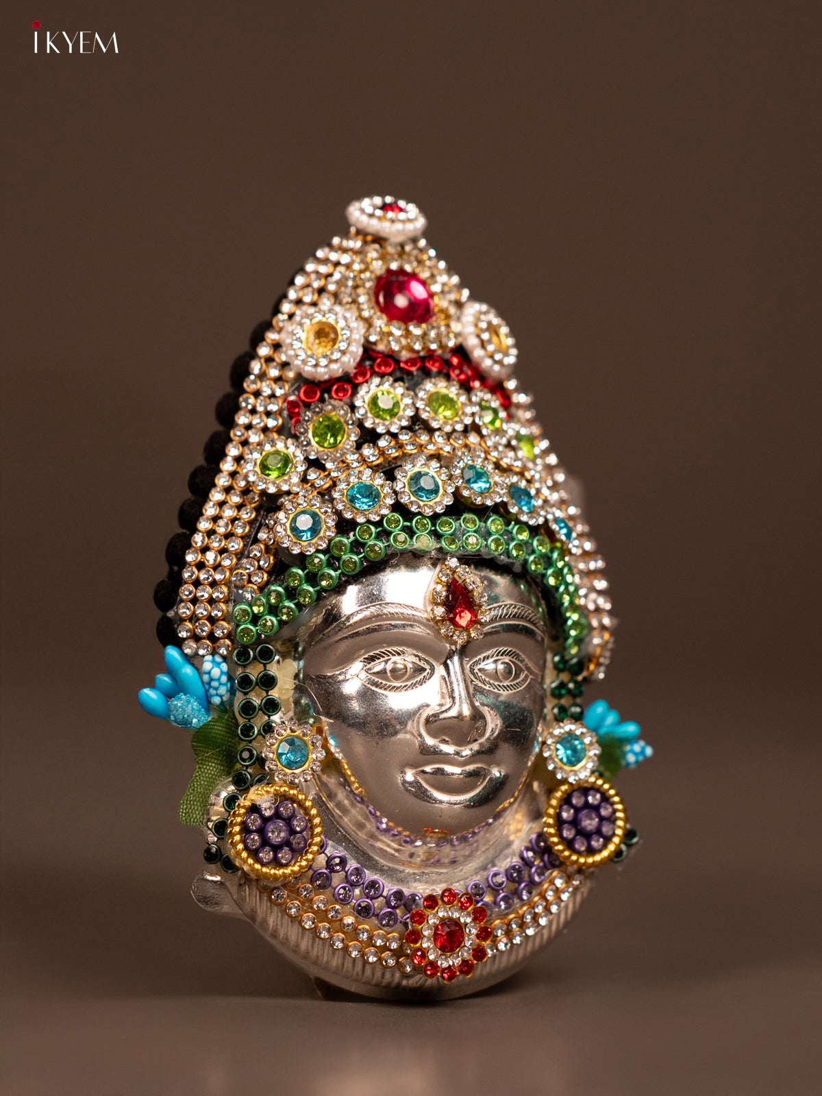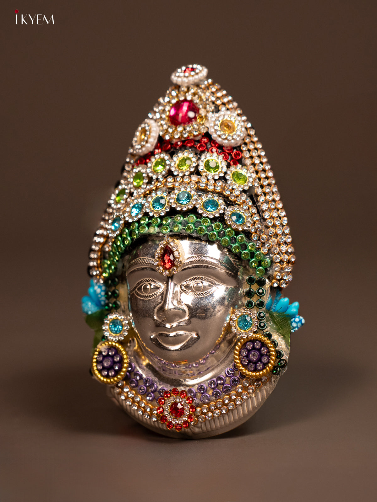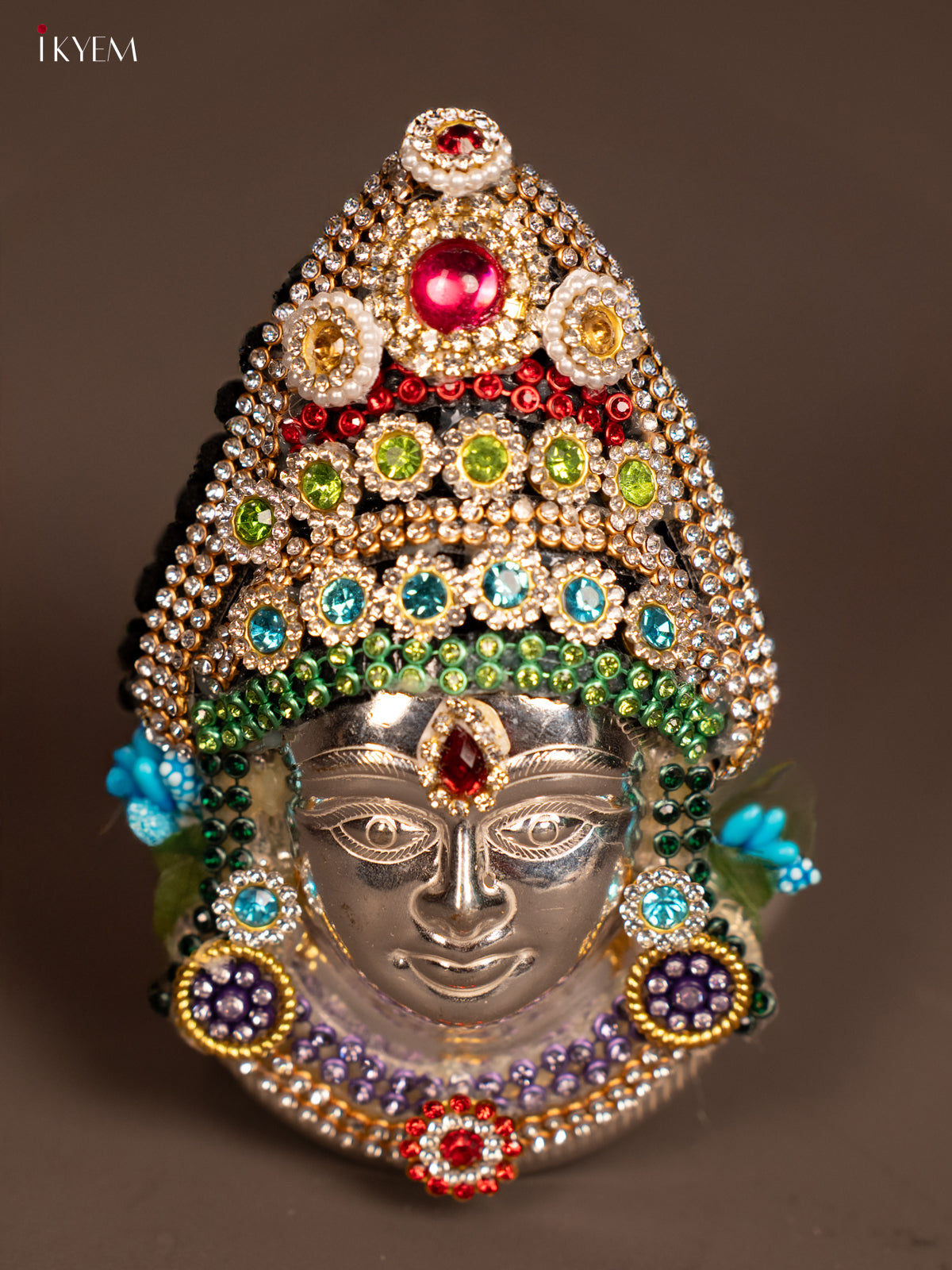 - The German Silver Ambal Face is an elegant and durable piece designed for use in Navaratri and Varalakshmi Vratham poojas.
