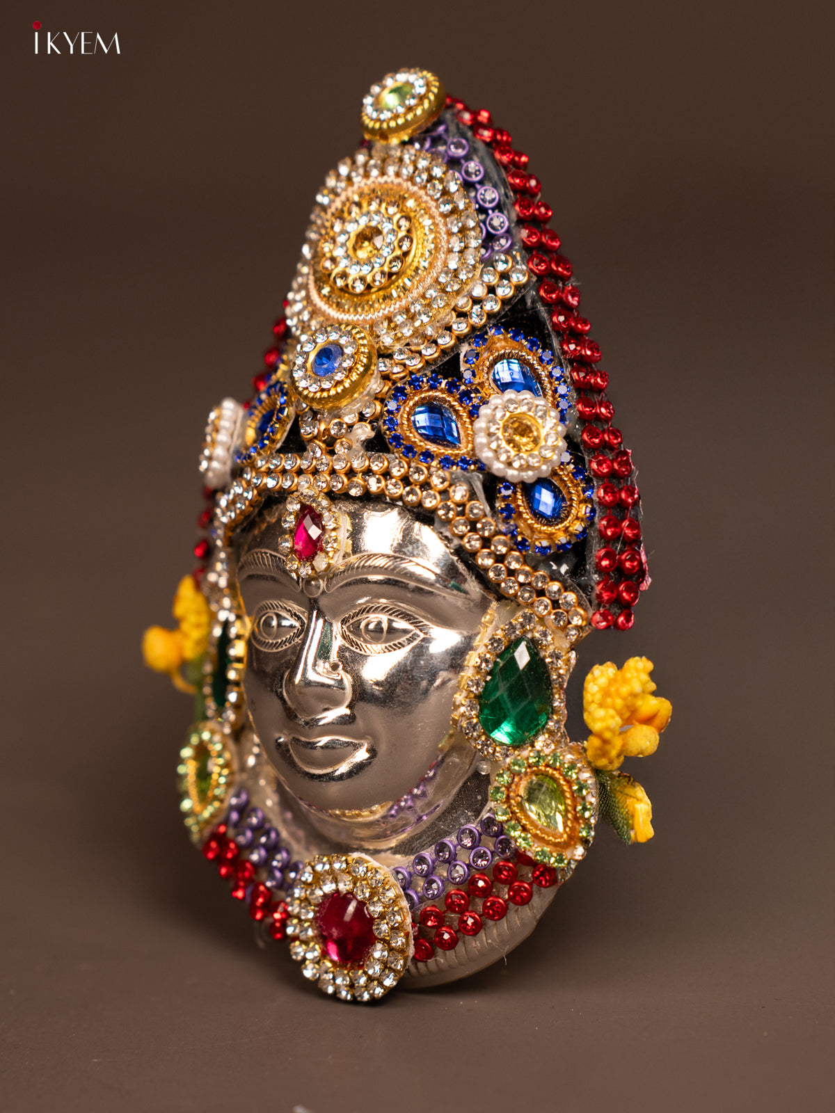 - The German Silver Ambal Face is an elegant and durable piece designed for use in Navaratri and Varalakshmi Vratham poojas.