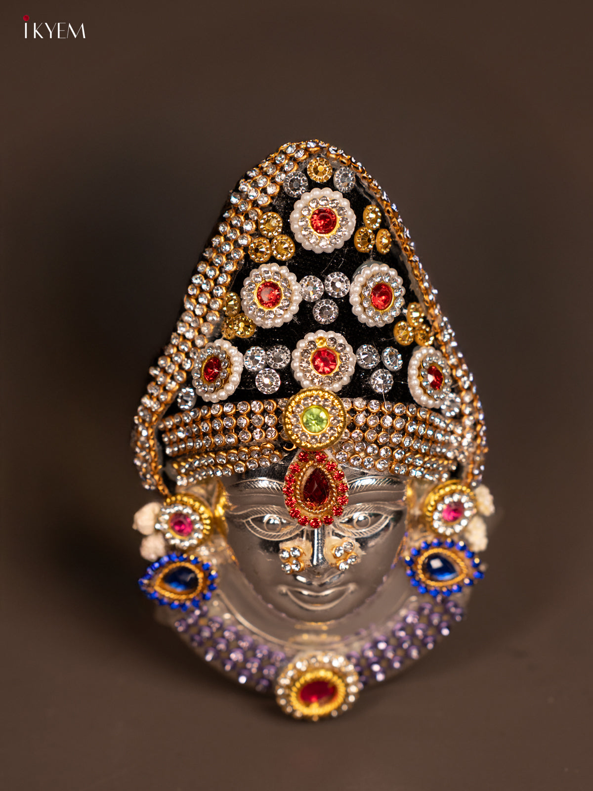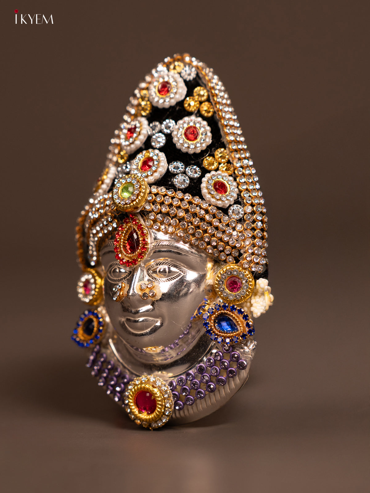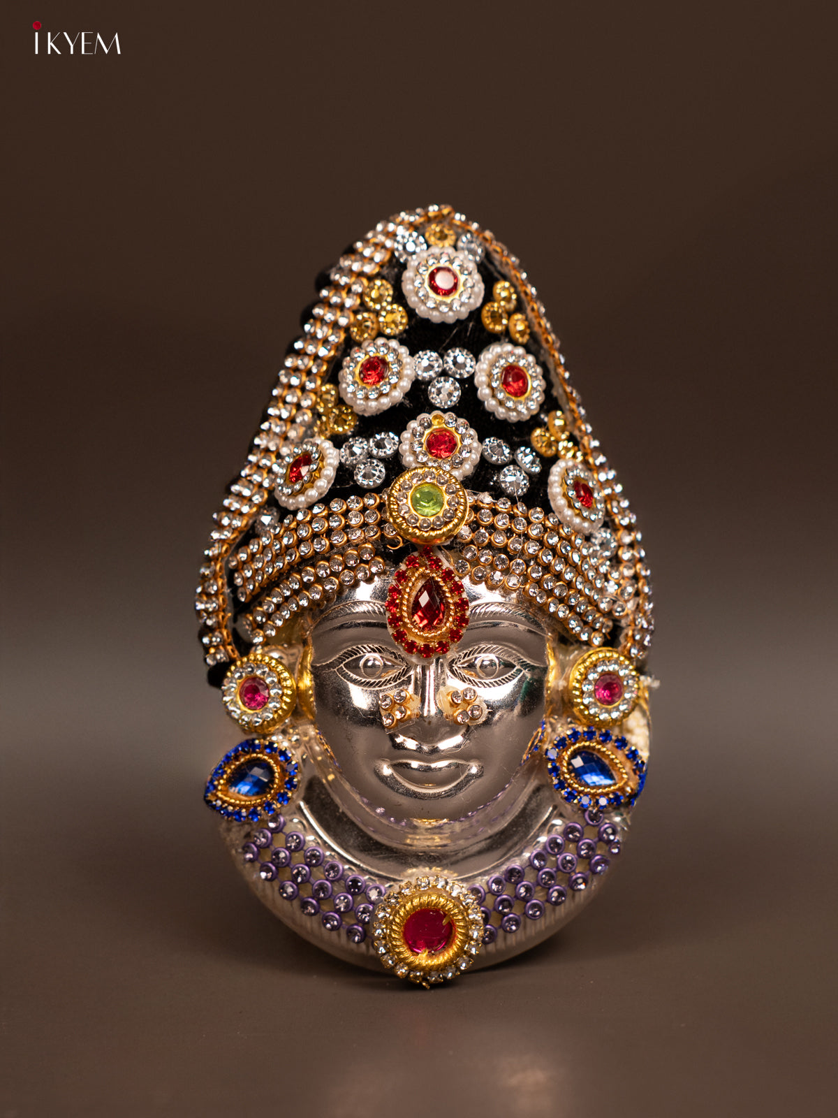 - The German Silver Ambal Face is an elegant and durable piece designed for use in Navaratri and Varalakshmi Vratham poojas.