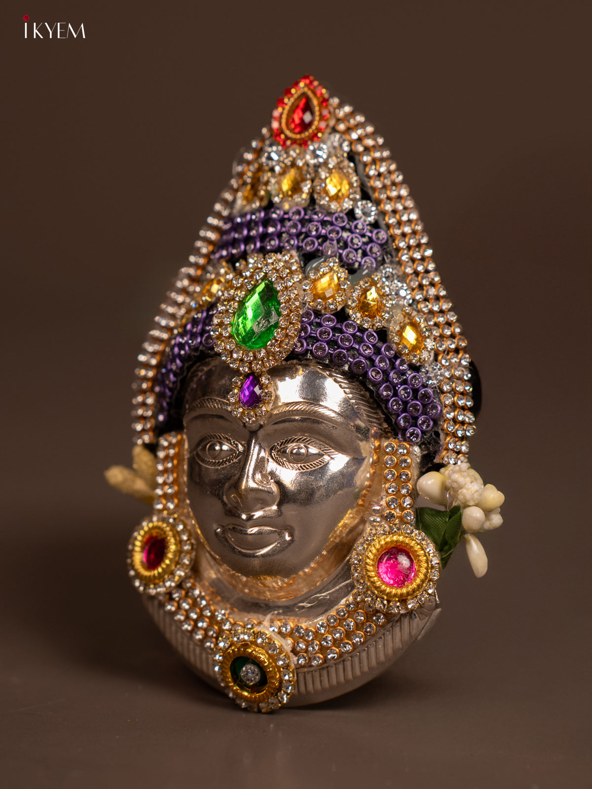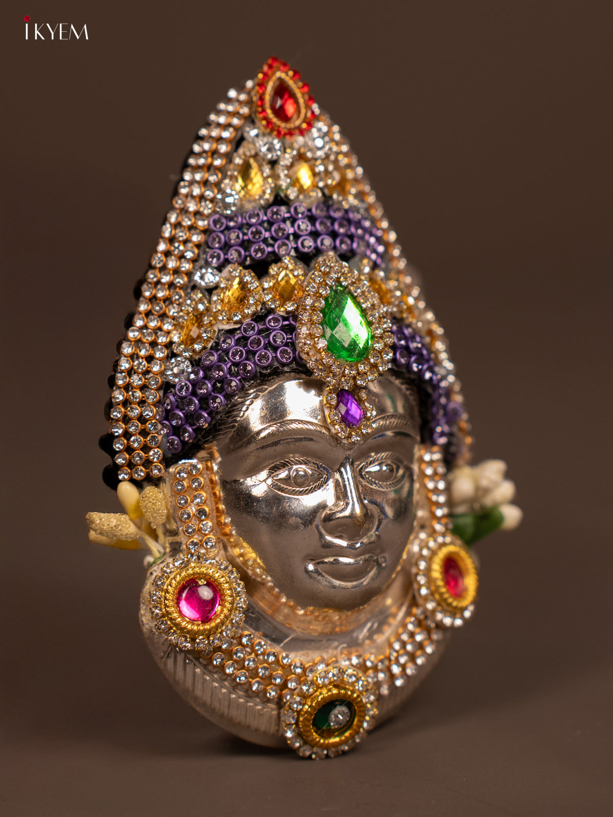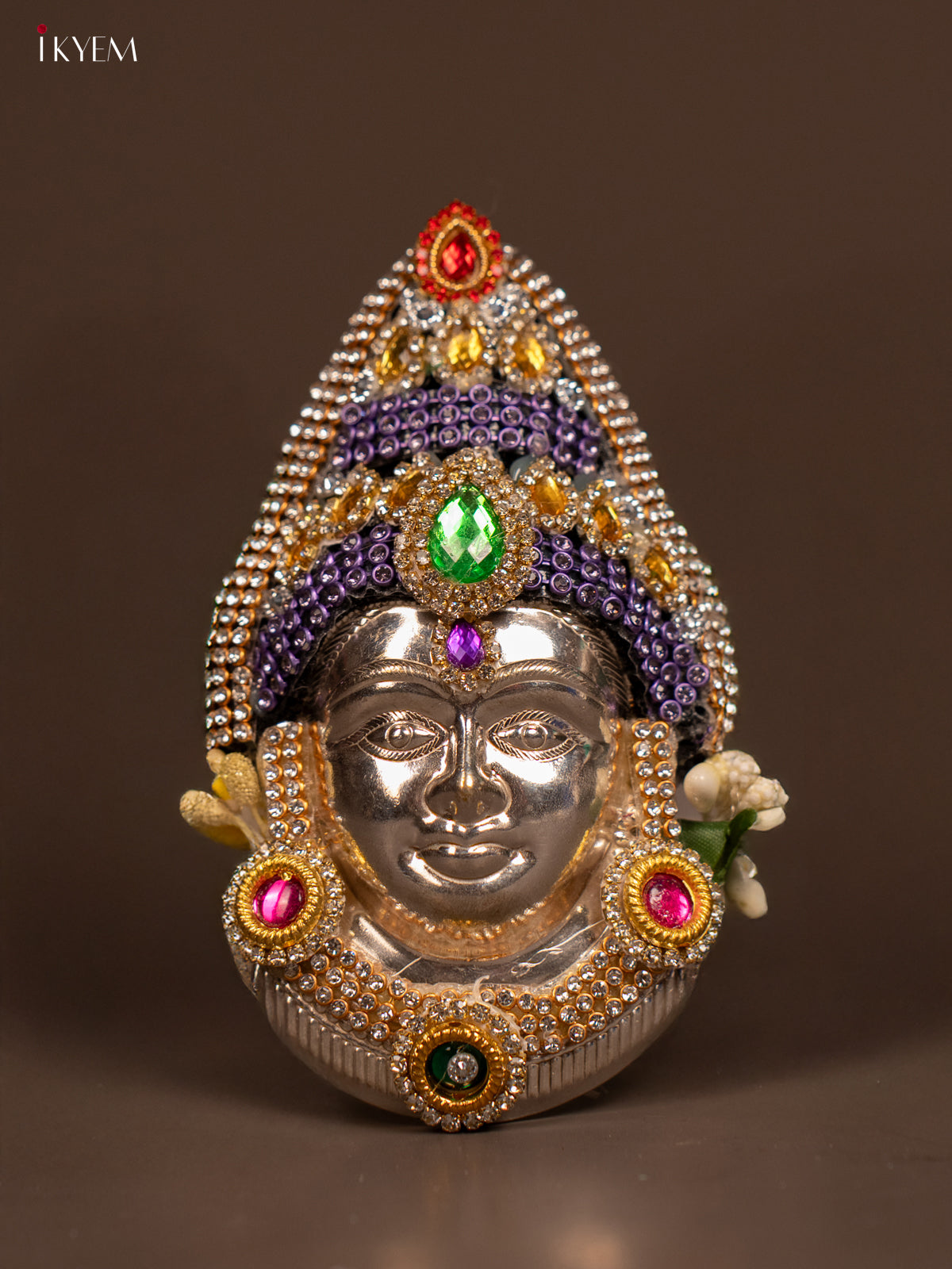 - The German Silver Ambal Face is an elegant and durable piece designed for use in Navaratri and Varalakshmi Vratham poojas.