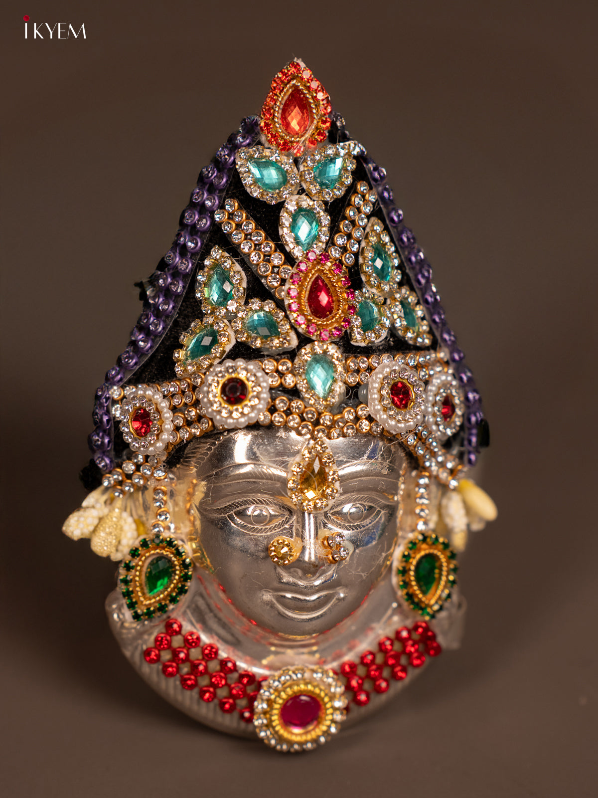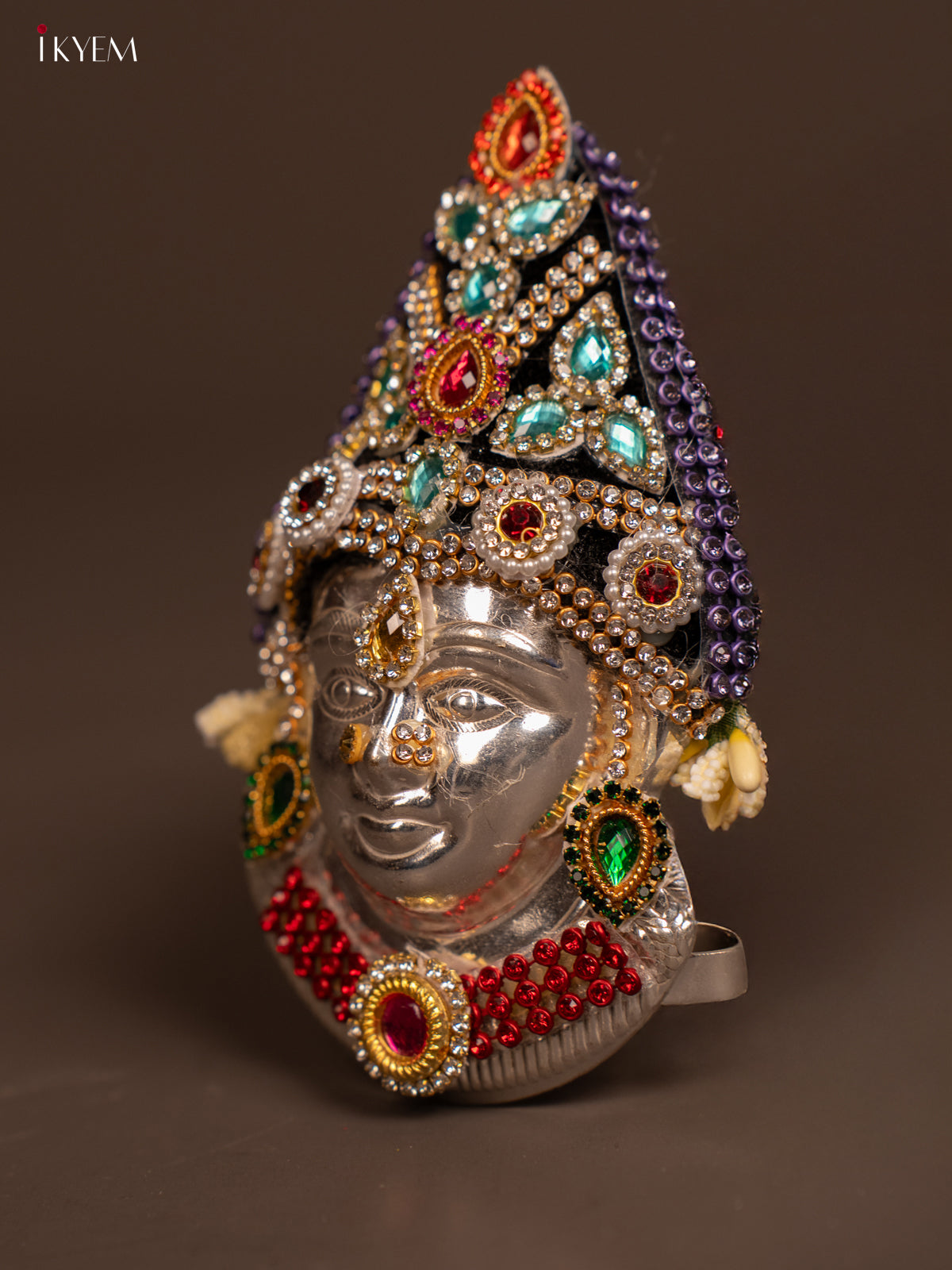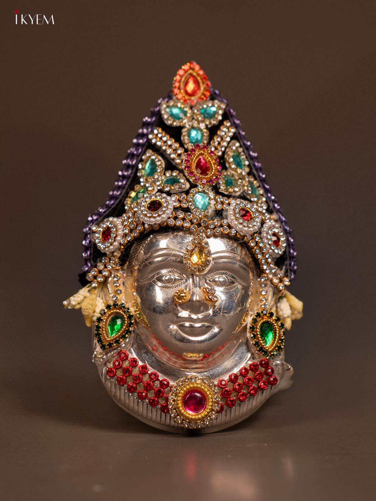 - The German Silver Ambal Face is an elegant and durable piece designed for use in Navaratri and Varalakshmi Vratham poojas.