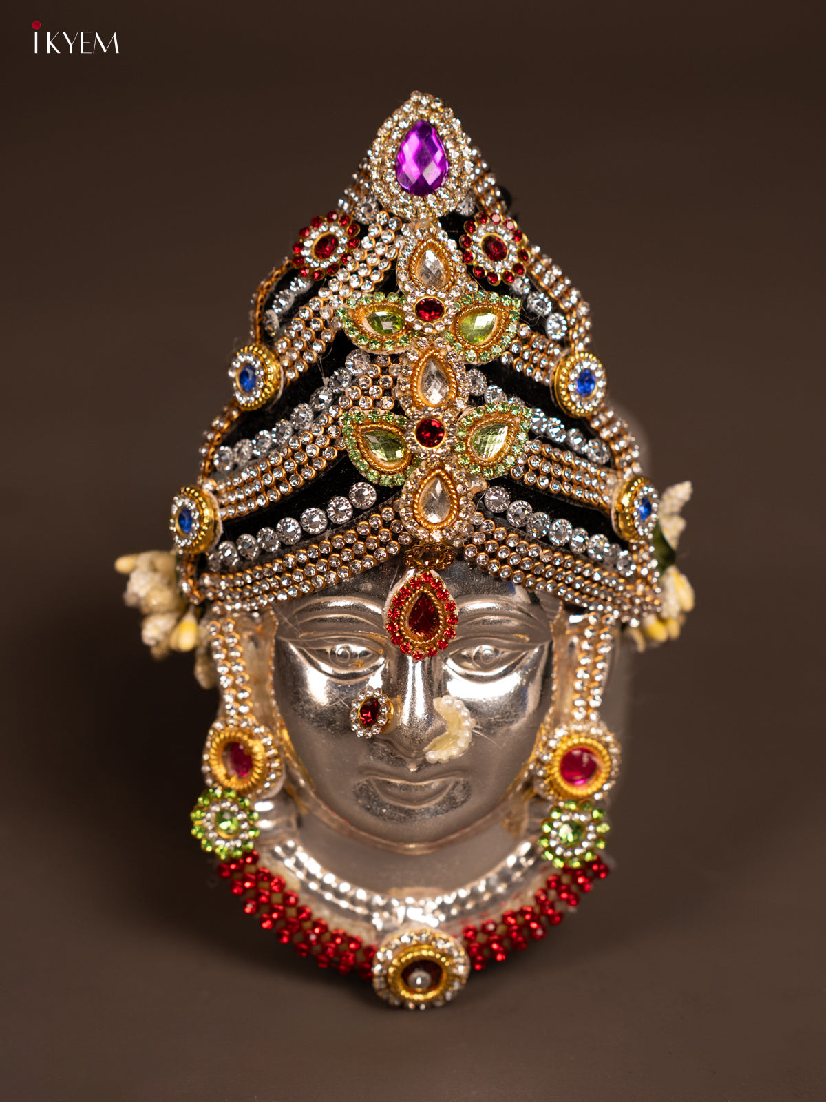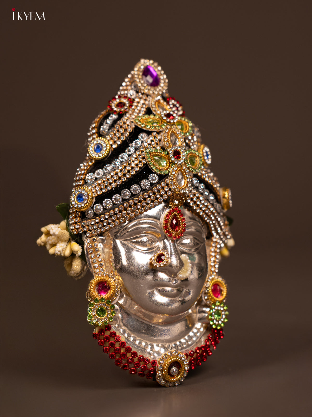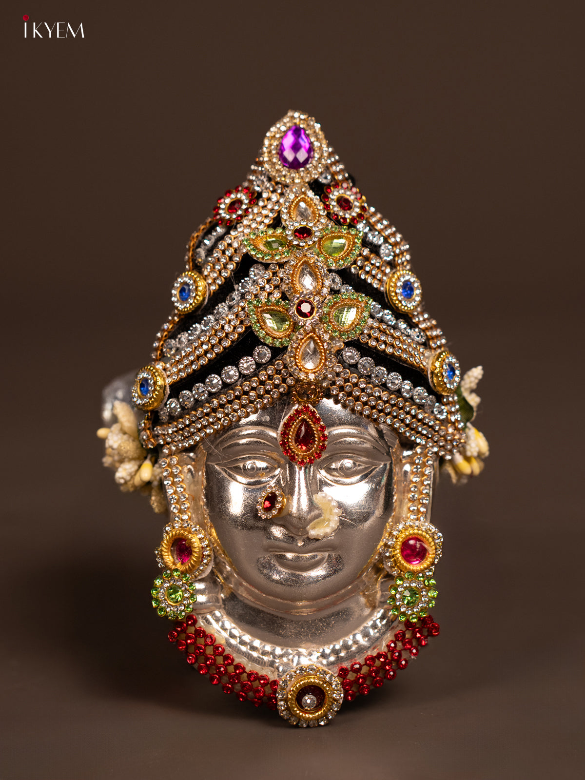 - The German Silver Ambal Face is an elegant and durable piece designed for use in Navaratri and Varalakshmi Vratham poojas.