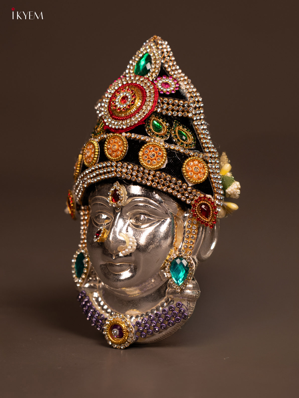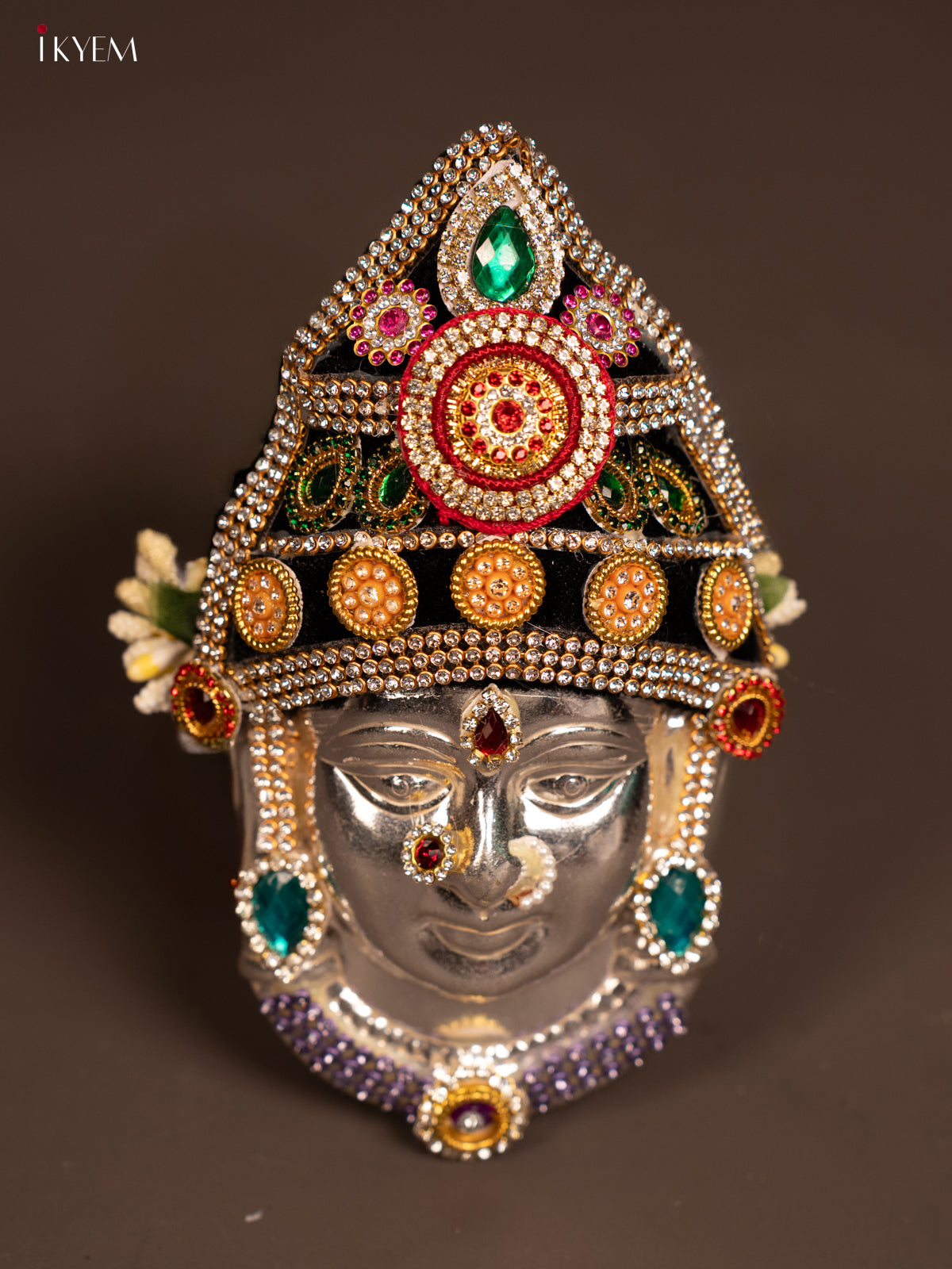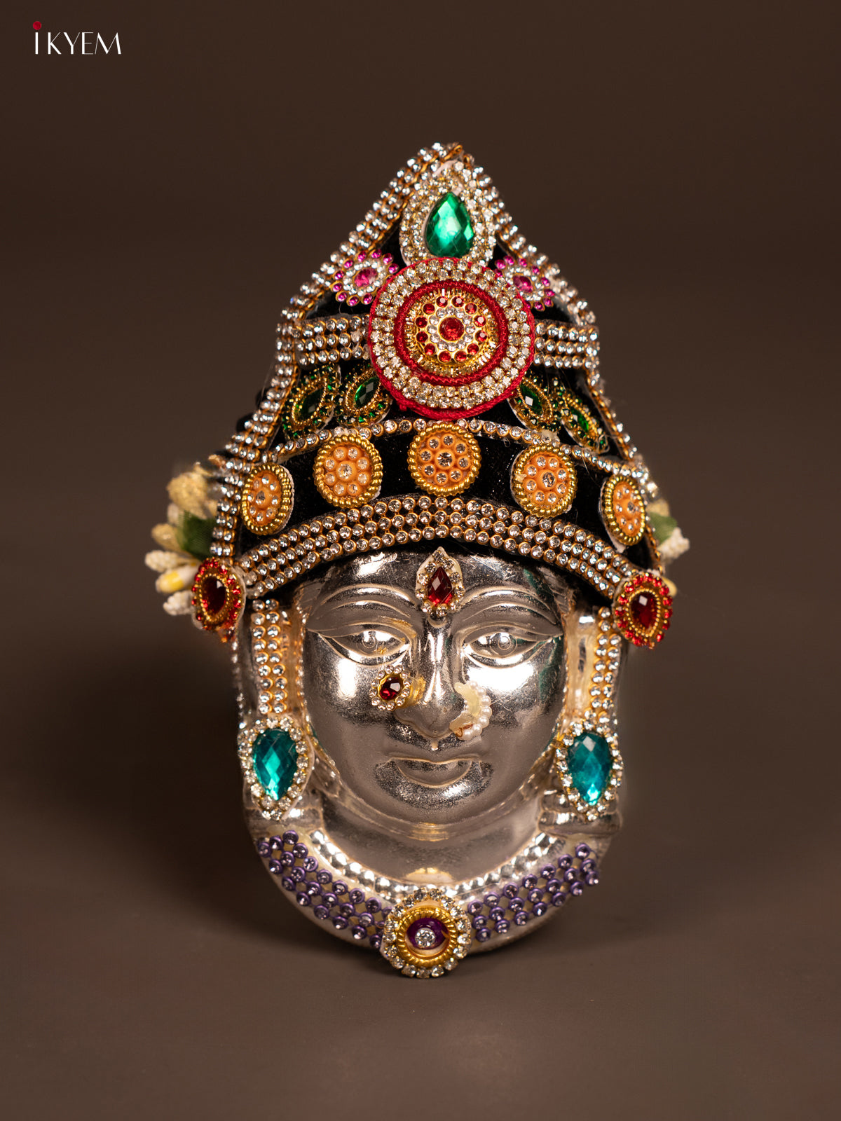 - The German Silver Ambal Face is an elegant and durable piece designed for use in Navaratri and Varalakshmi Vratham poojas.
