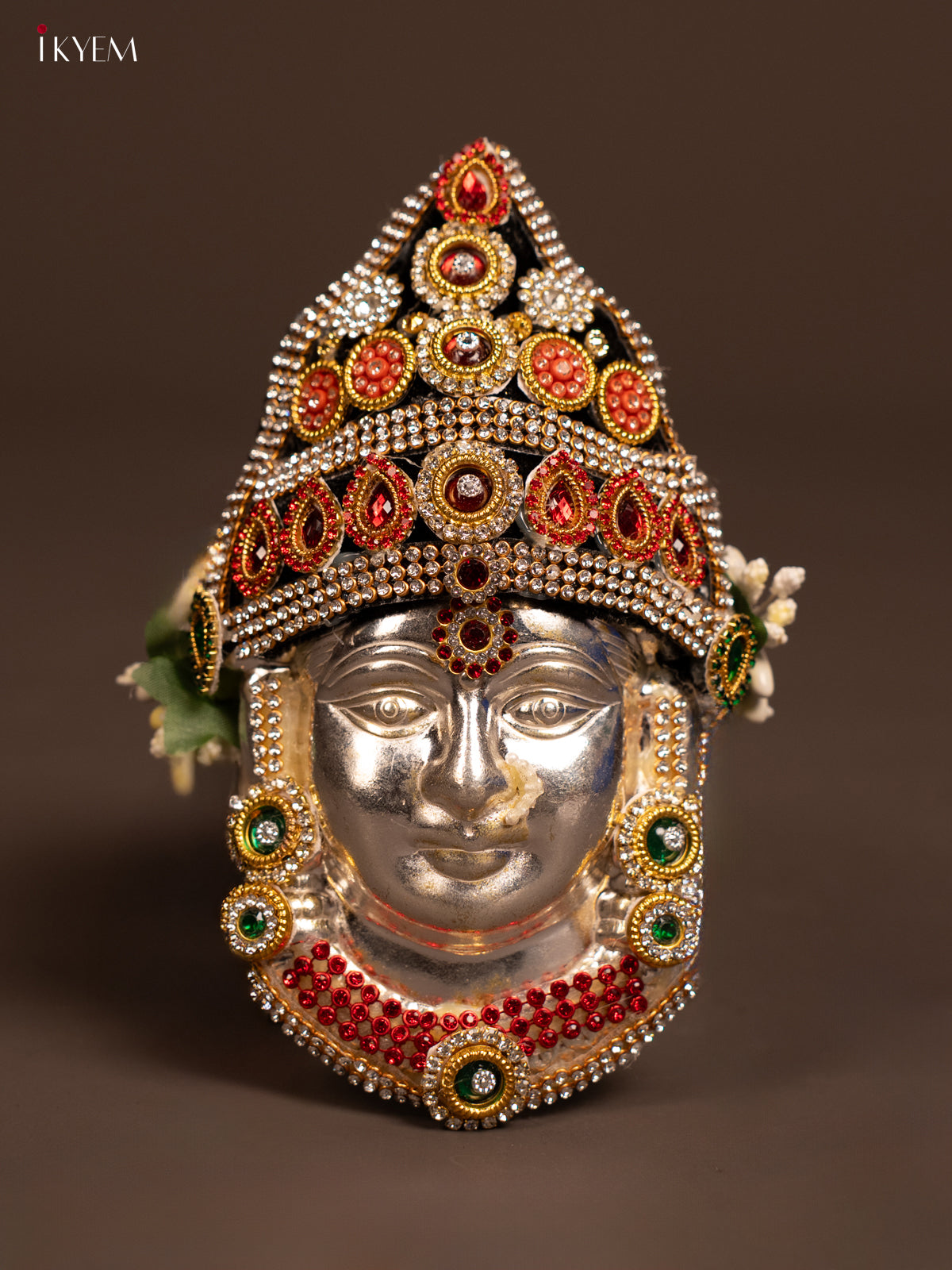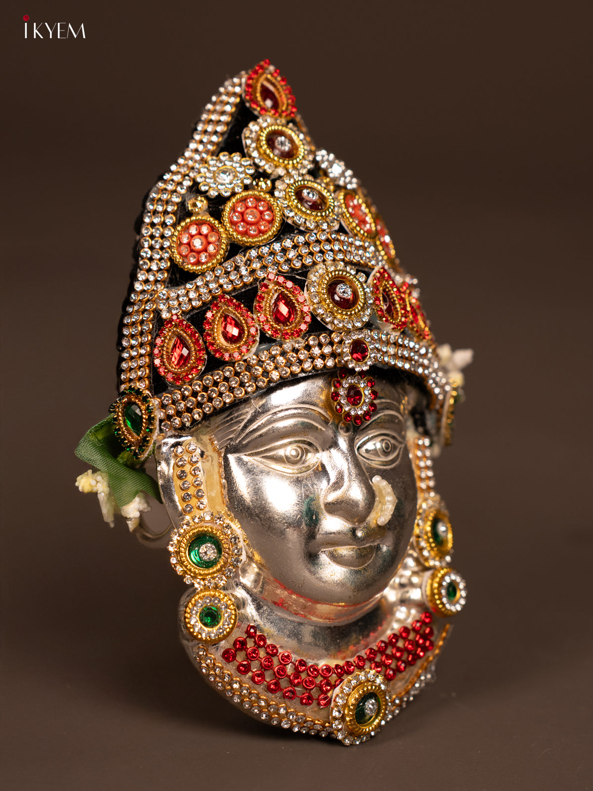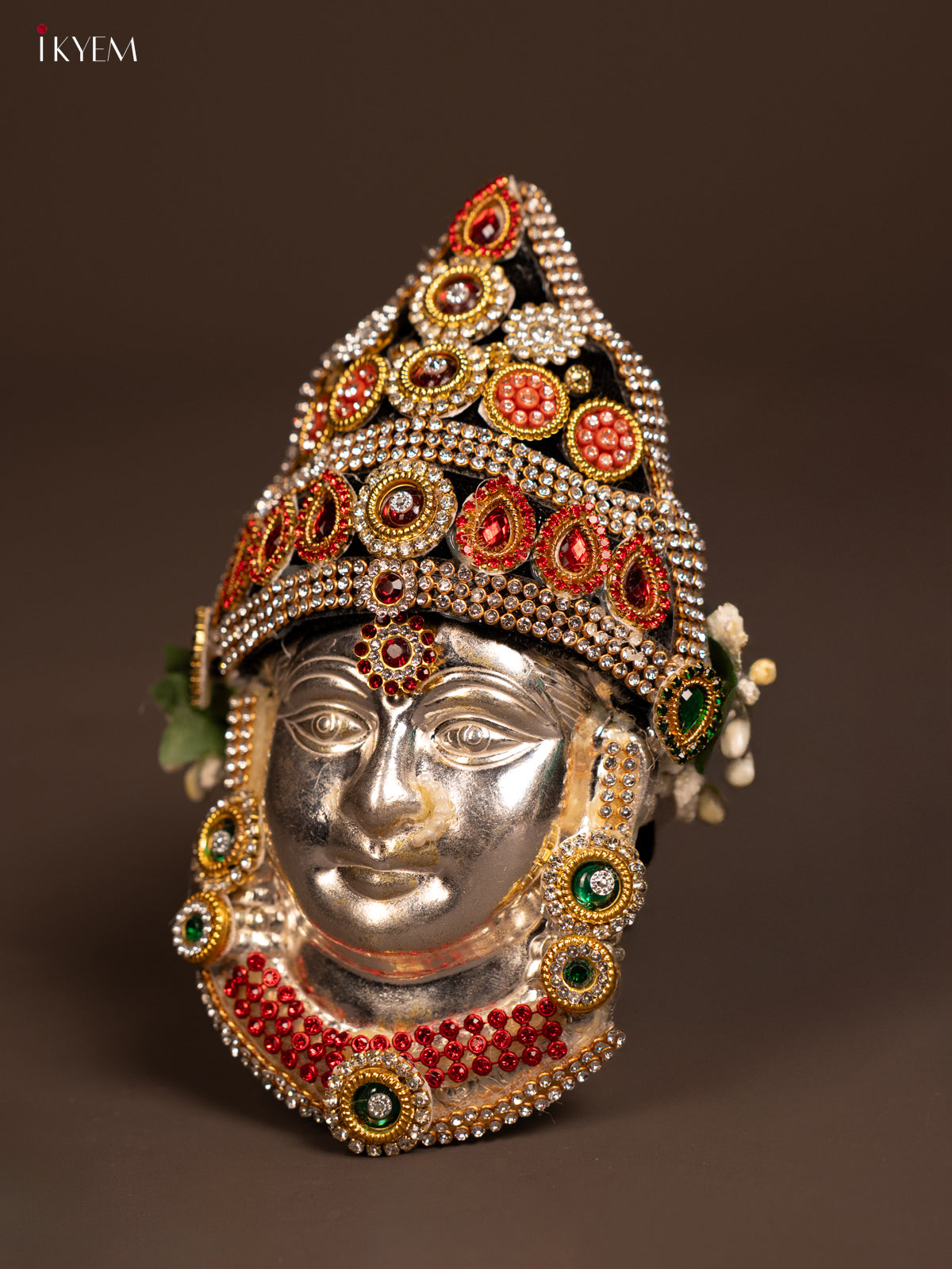 - The German Silver Ambal Face is an elegant and durable piece designed for use in Navaratri and Varalakshmi Vratham poojas.