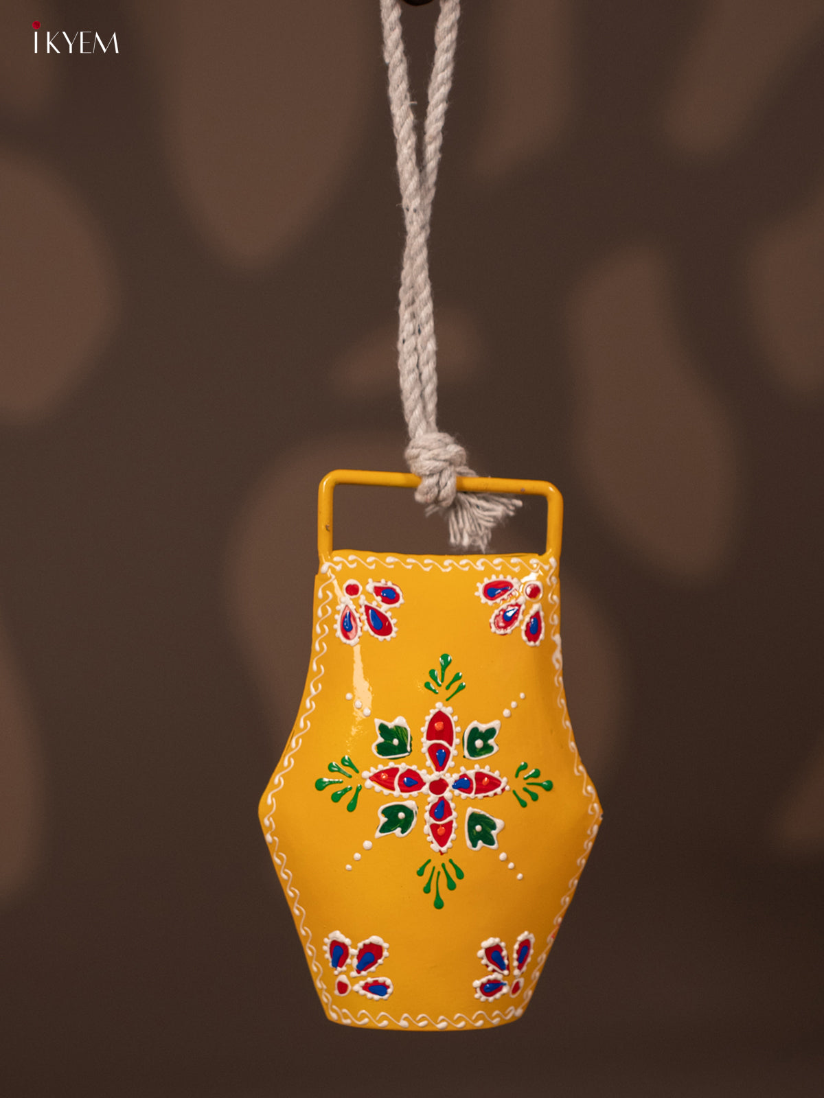 Hand Painted Cow Bell with Rope Handle - Yellow - KF07142