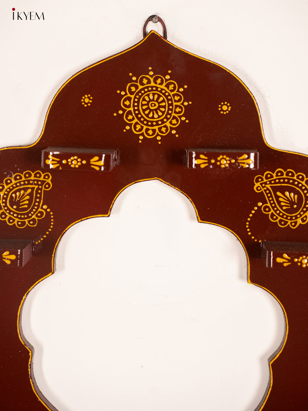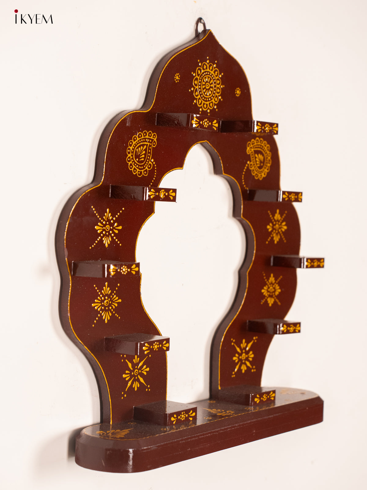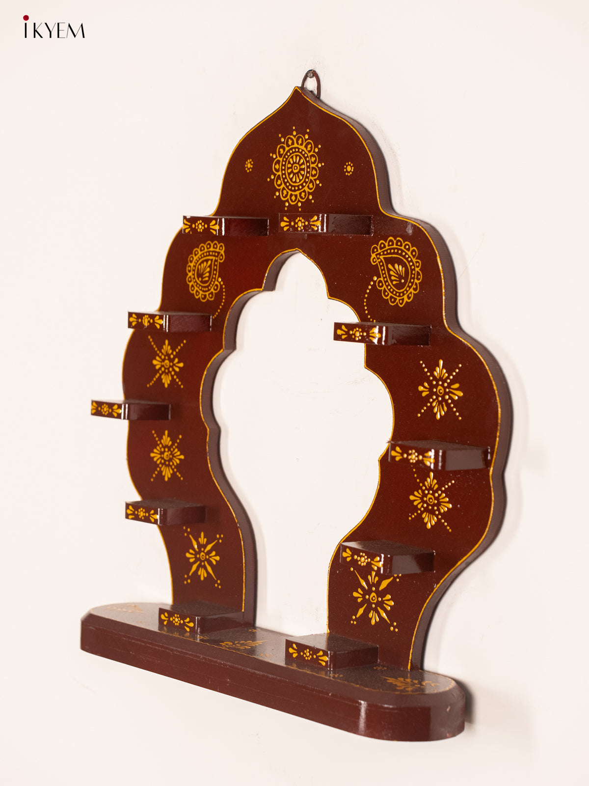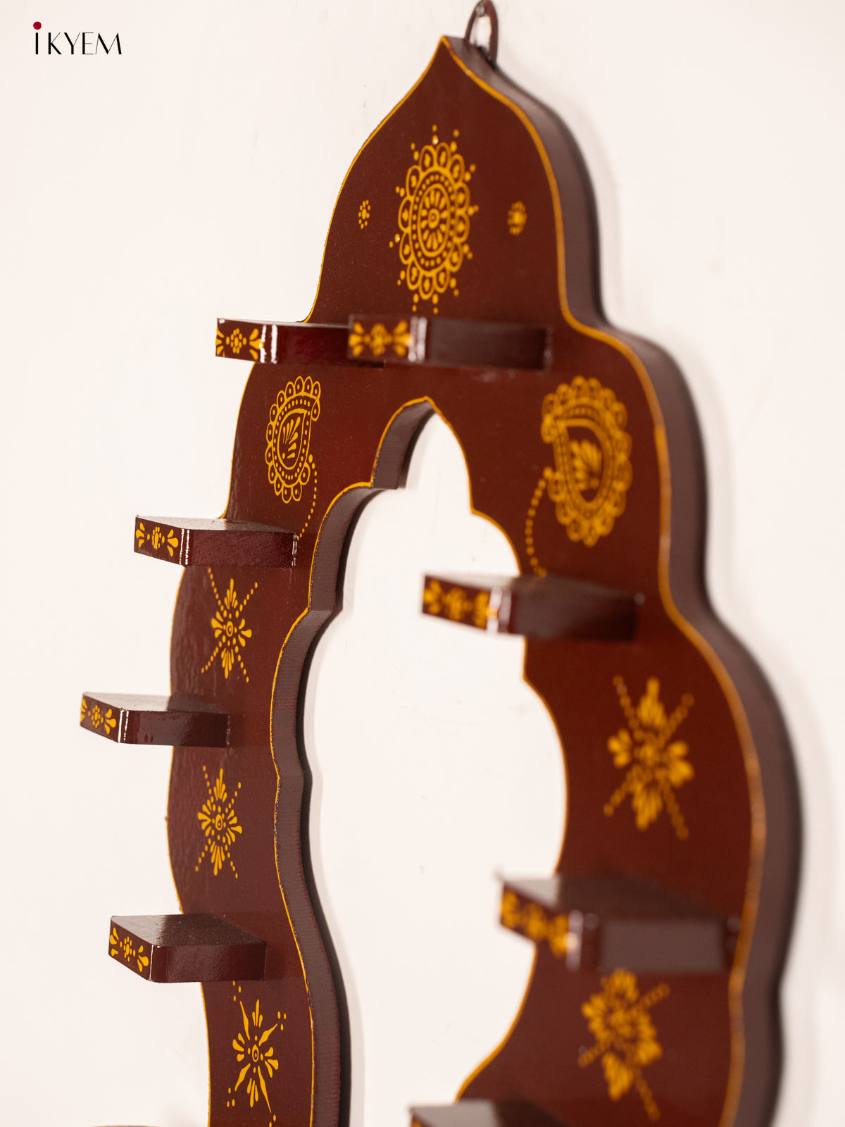 - This 20-inch Arch Wooden Hand Painted Wall Shelf in brown is crafted to enhance your Navaratri and Golu decor.