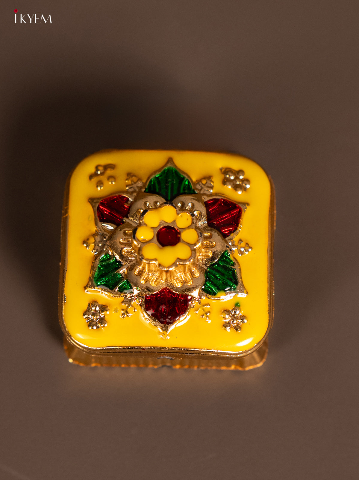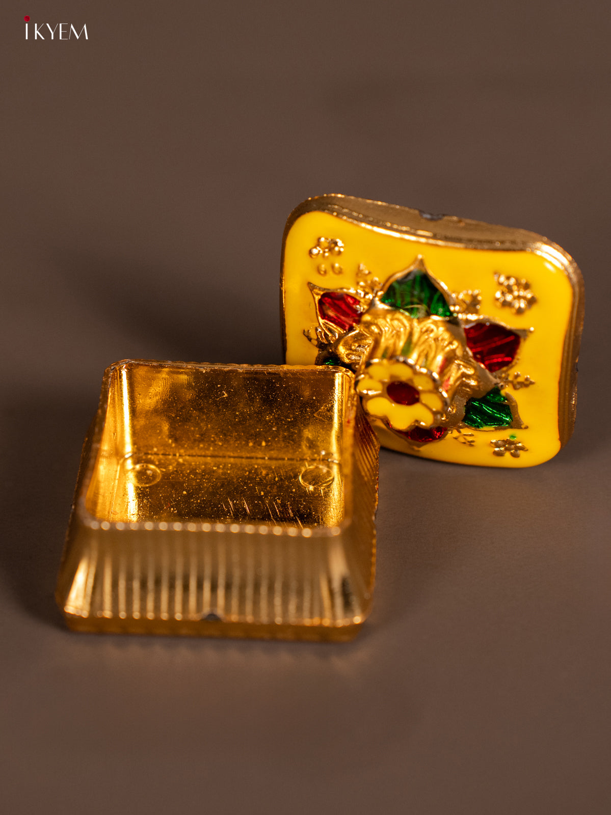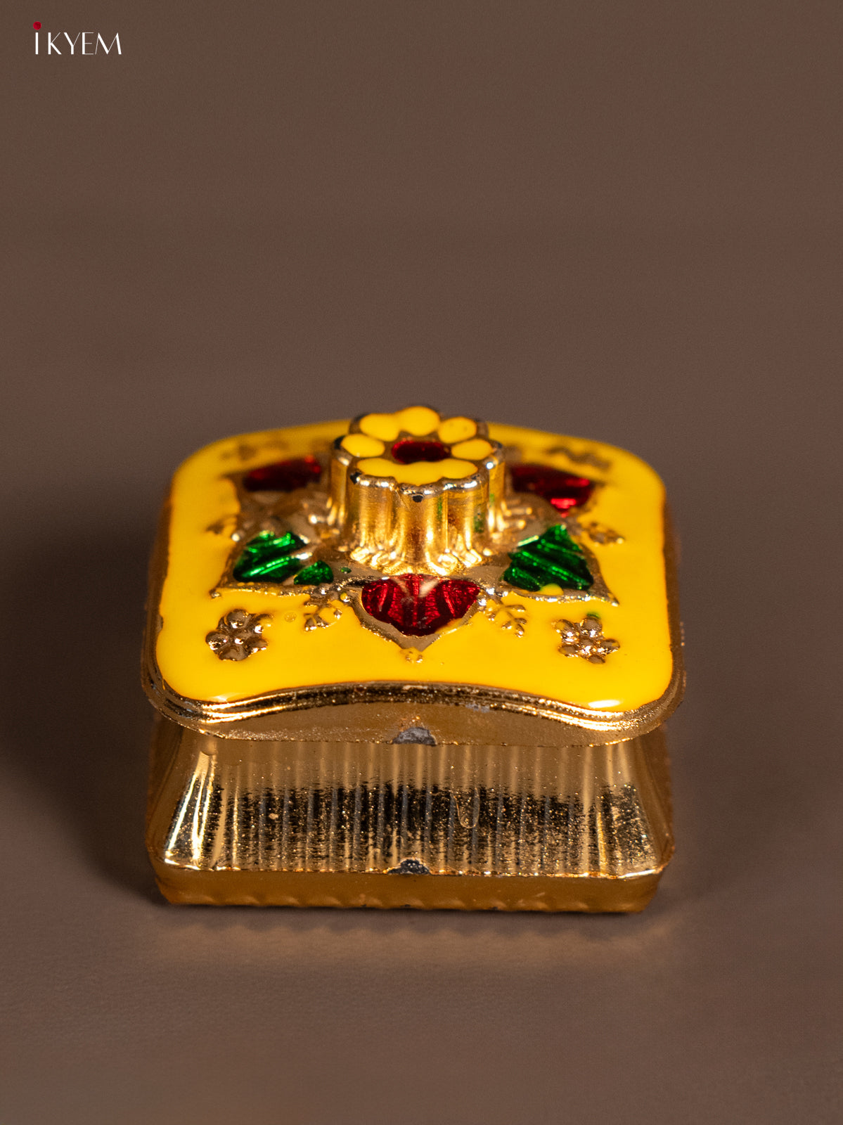 - This yellow Haldi & Kum Kum holder offers a traditional and elegant way to present essential items for religious rituals.