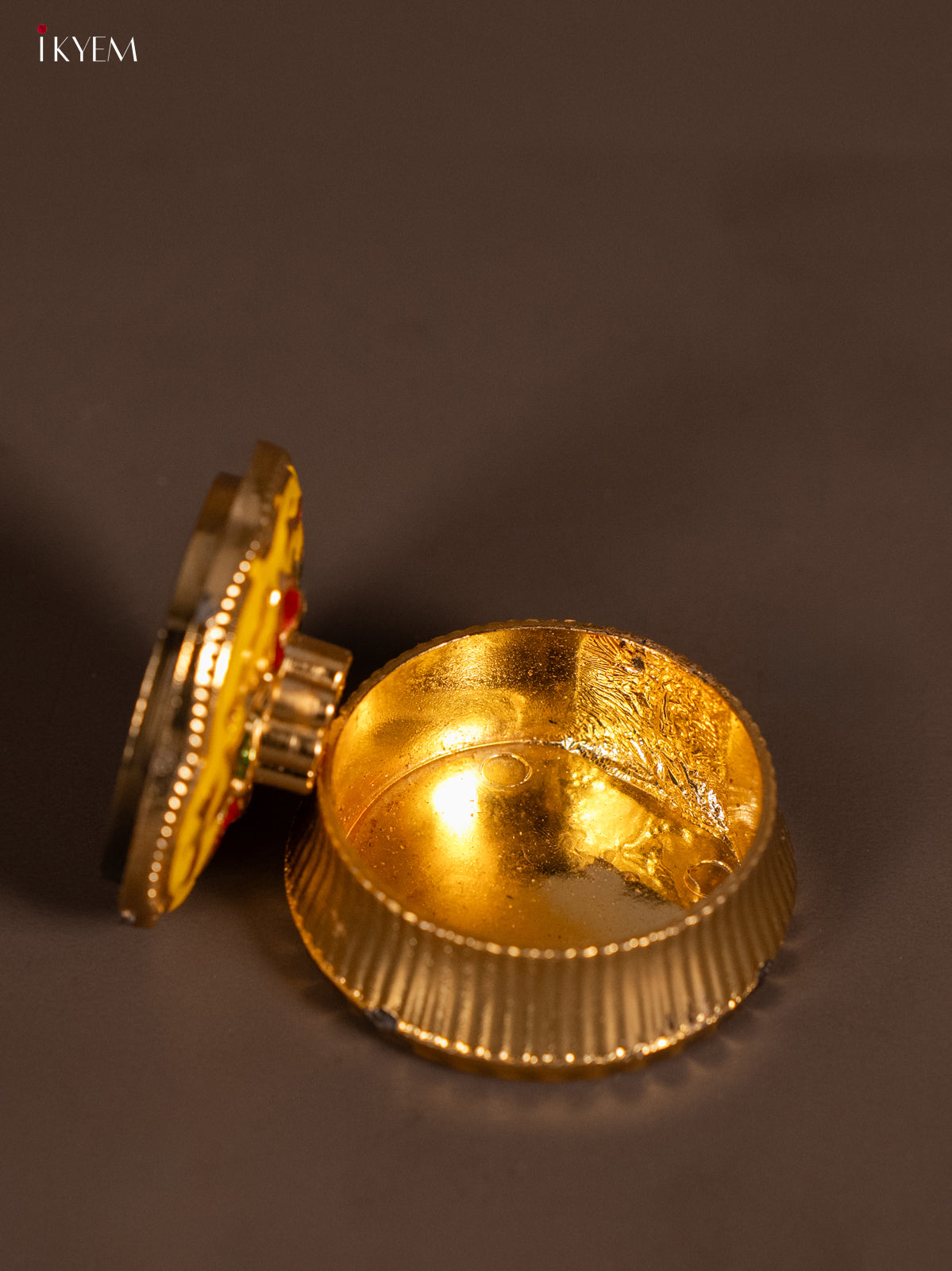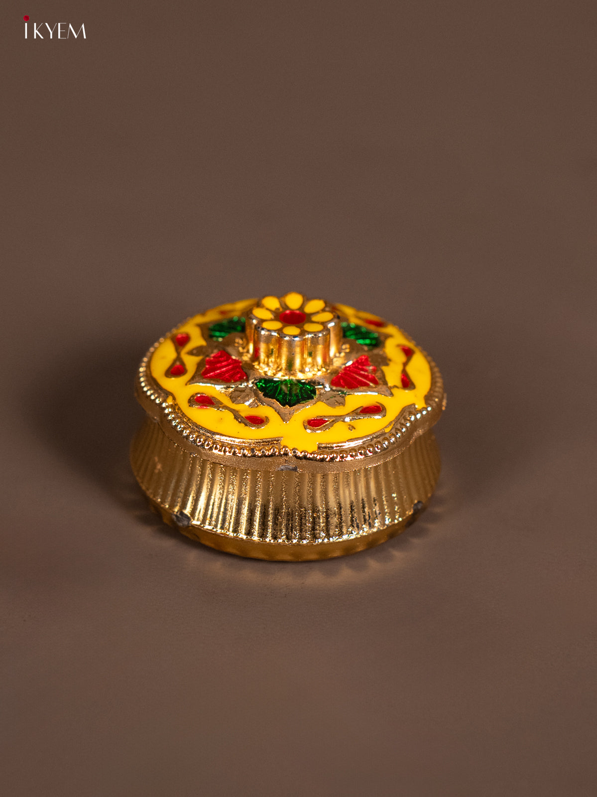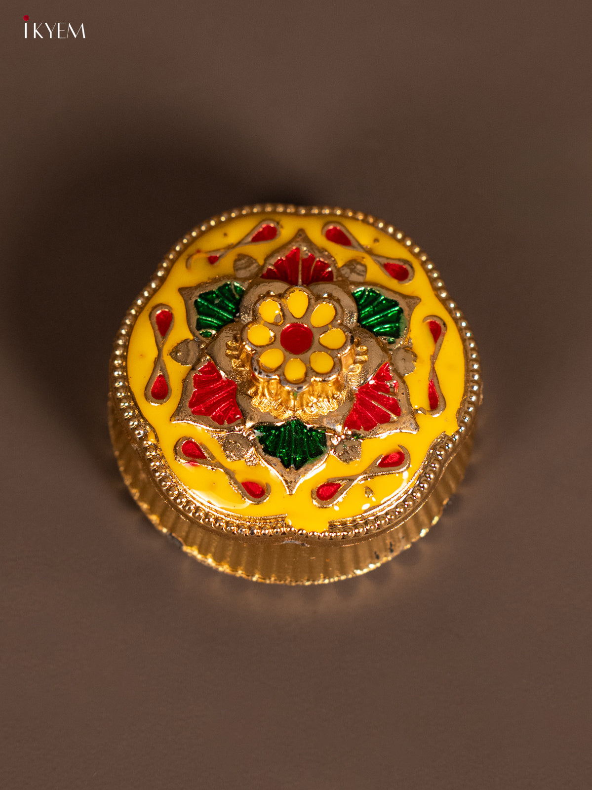 - This yellow Haldi & Kum Kum holder offers a traditional and elegant way to present essential items for religious rituals.