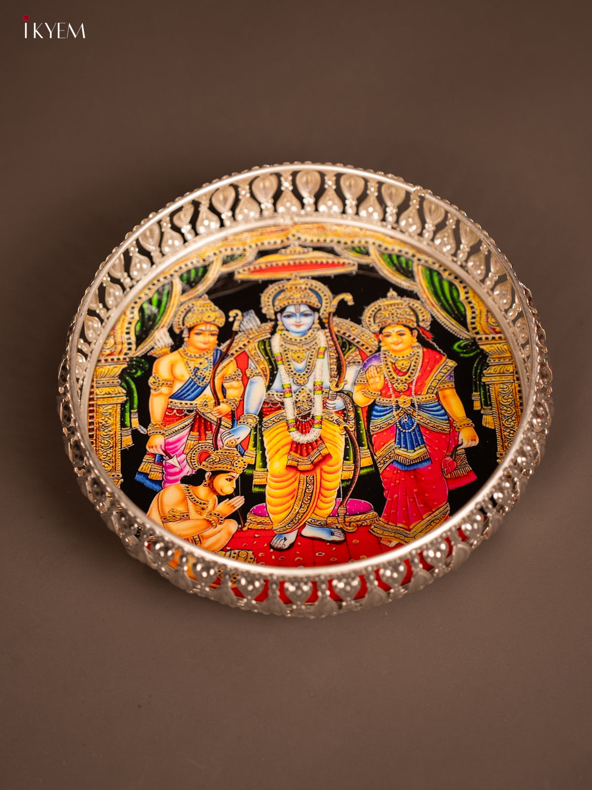 Digital Printed German Silver Tray - Rama Pattabishegam - 8 inch -KF21184