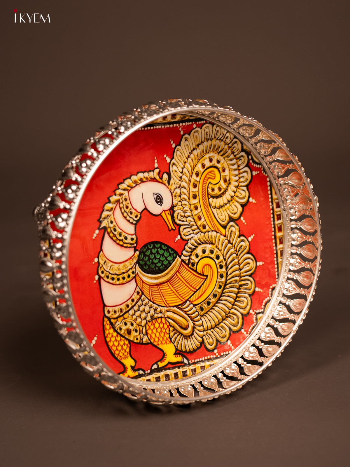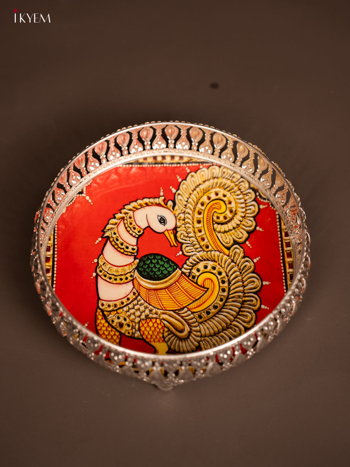 Digital Printed German Silver Tray - Peacock - 8 inch - KF21188