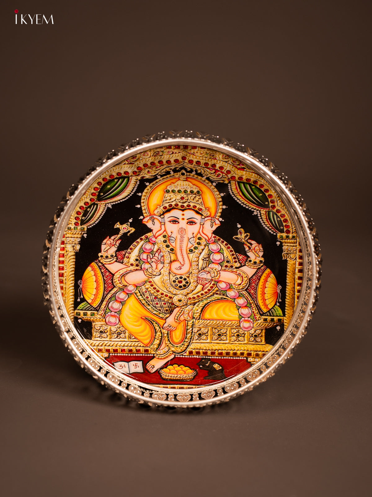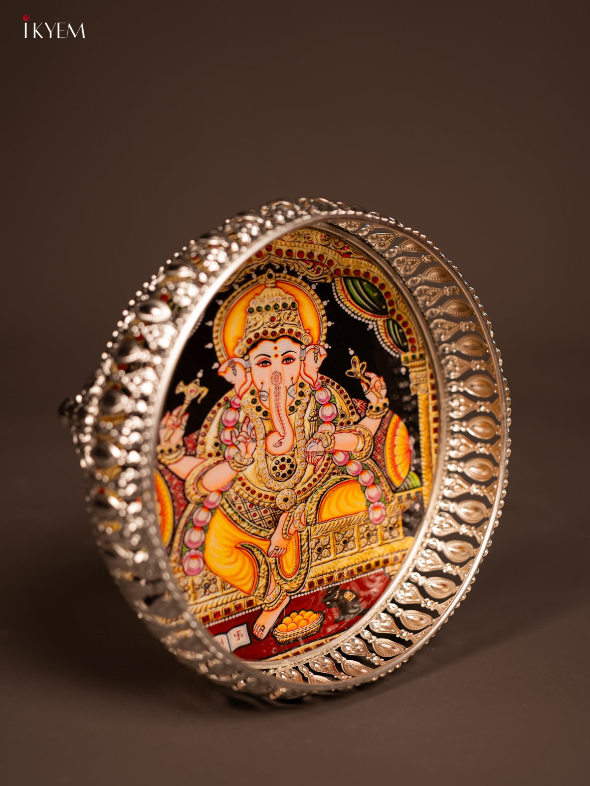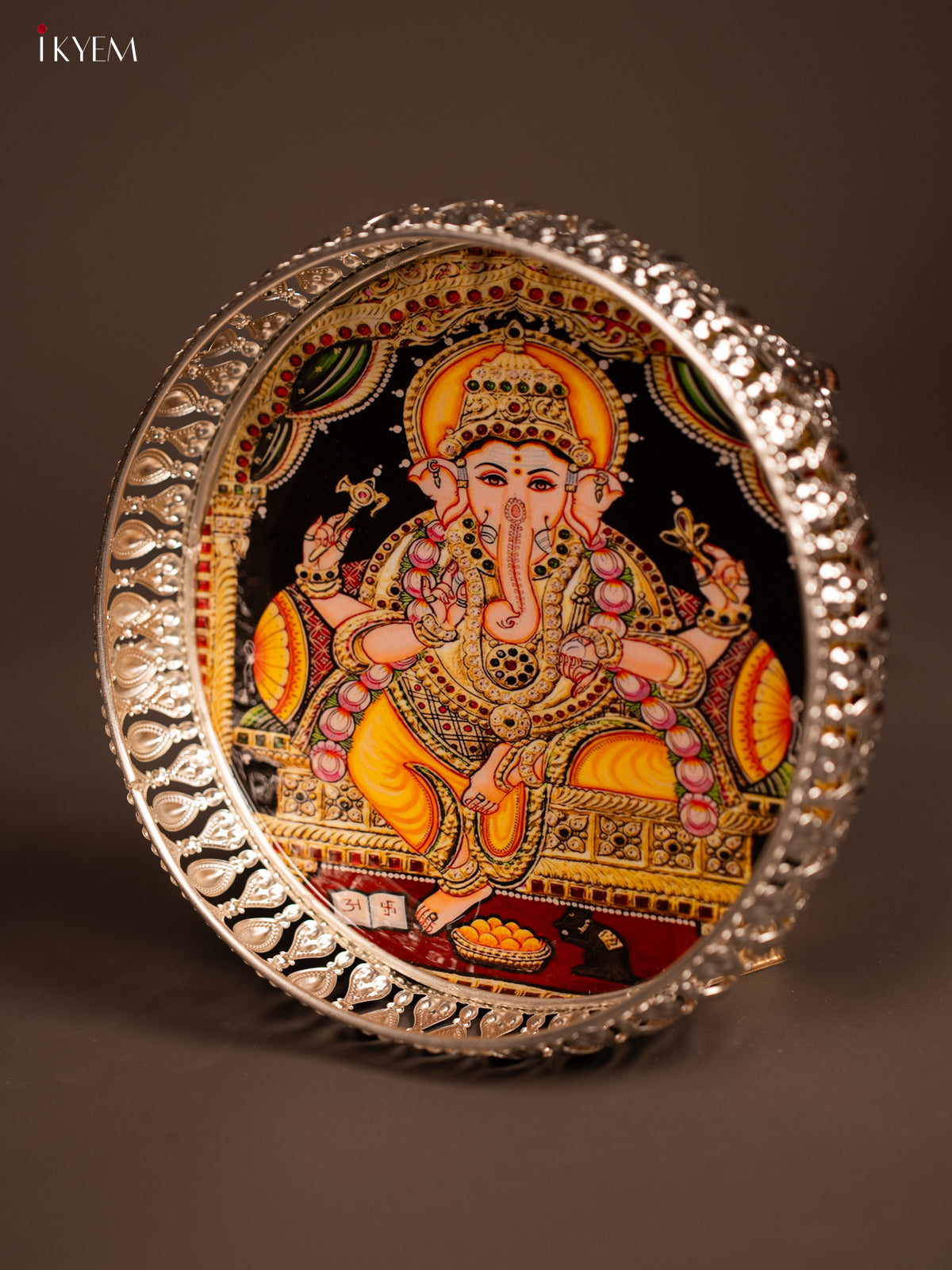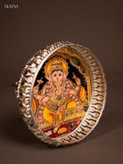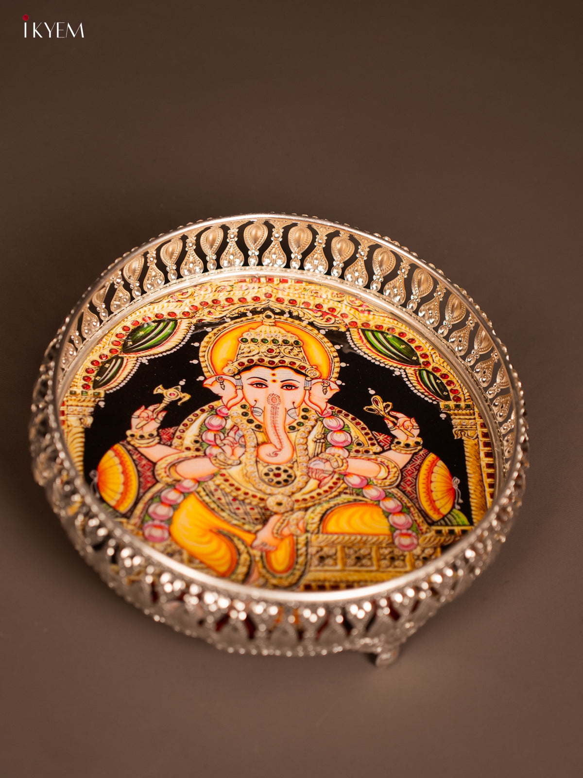 Digital Printed German Silver Tray - Ganesha - 8 inch - KF21193