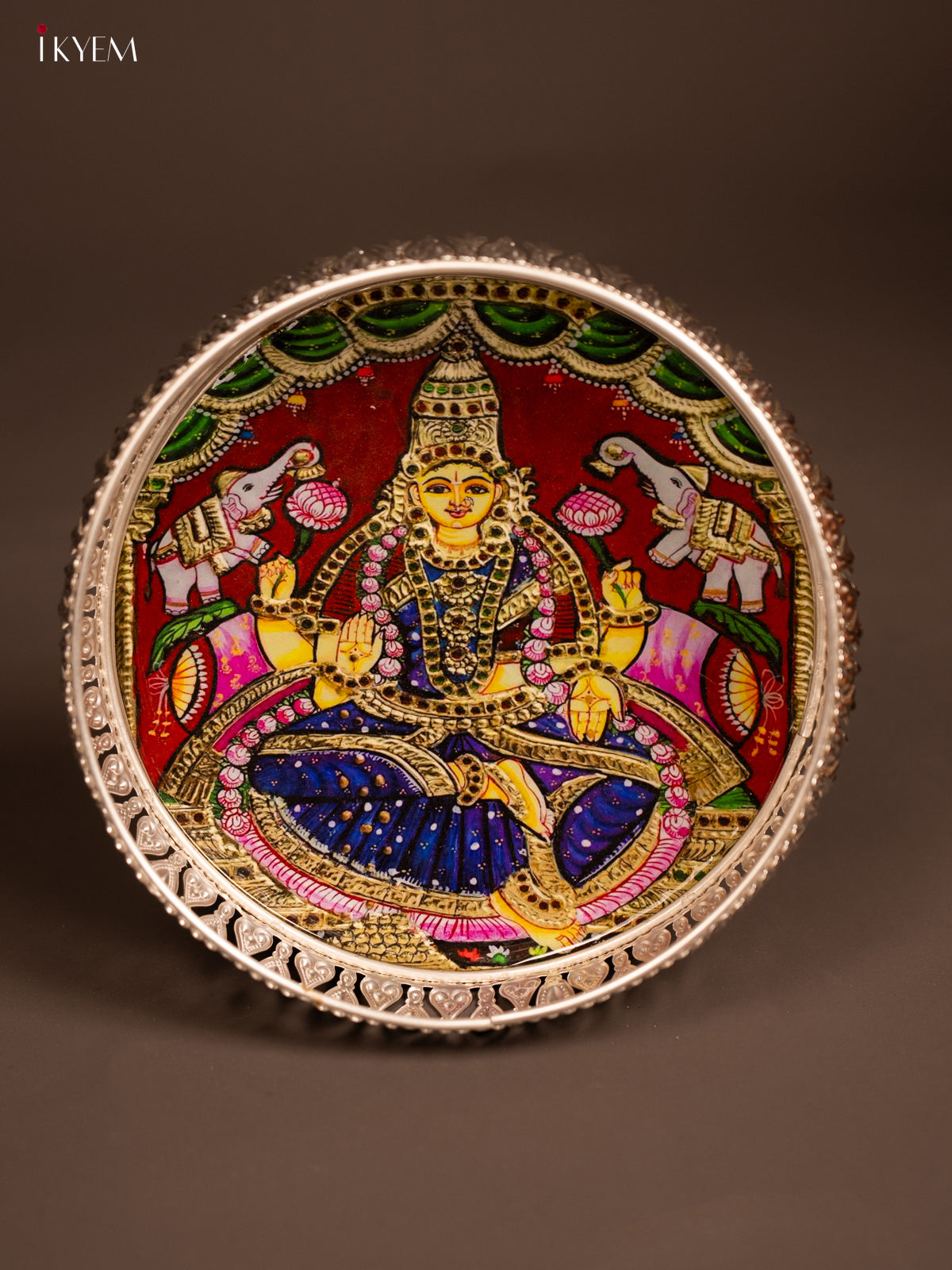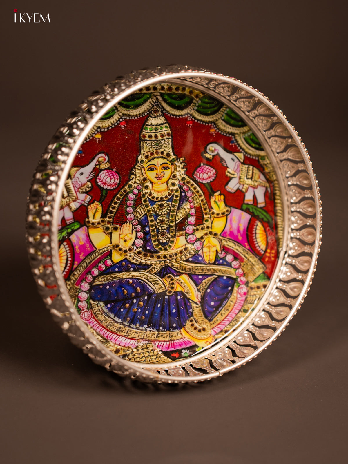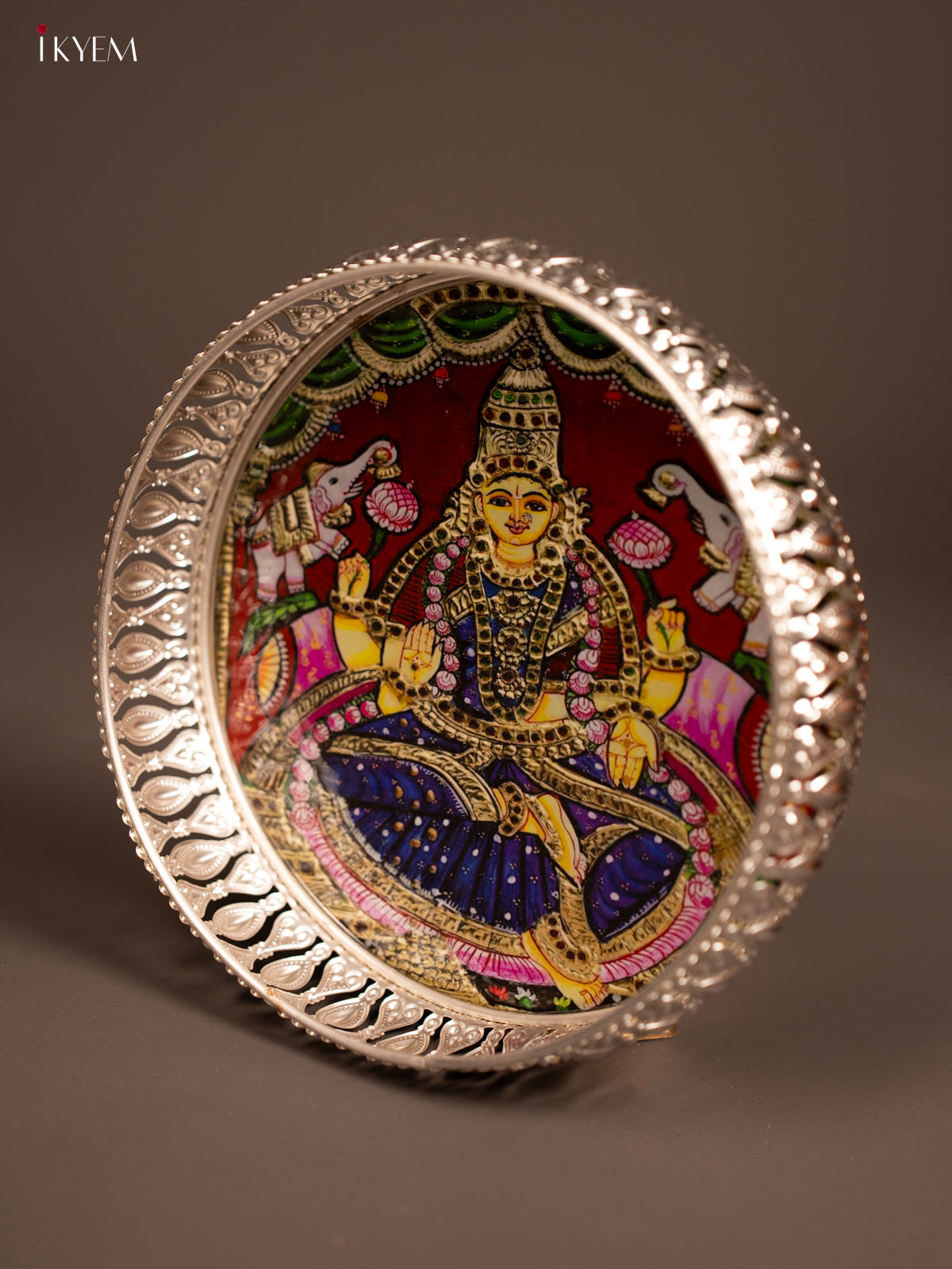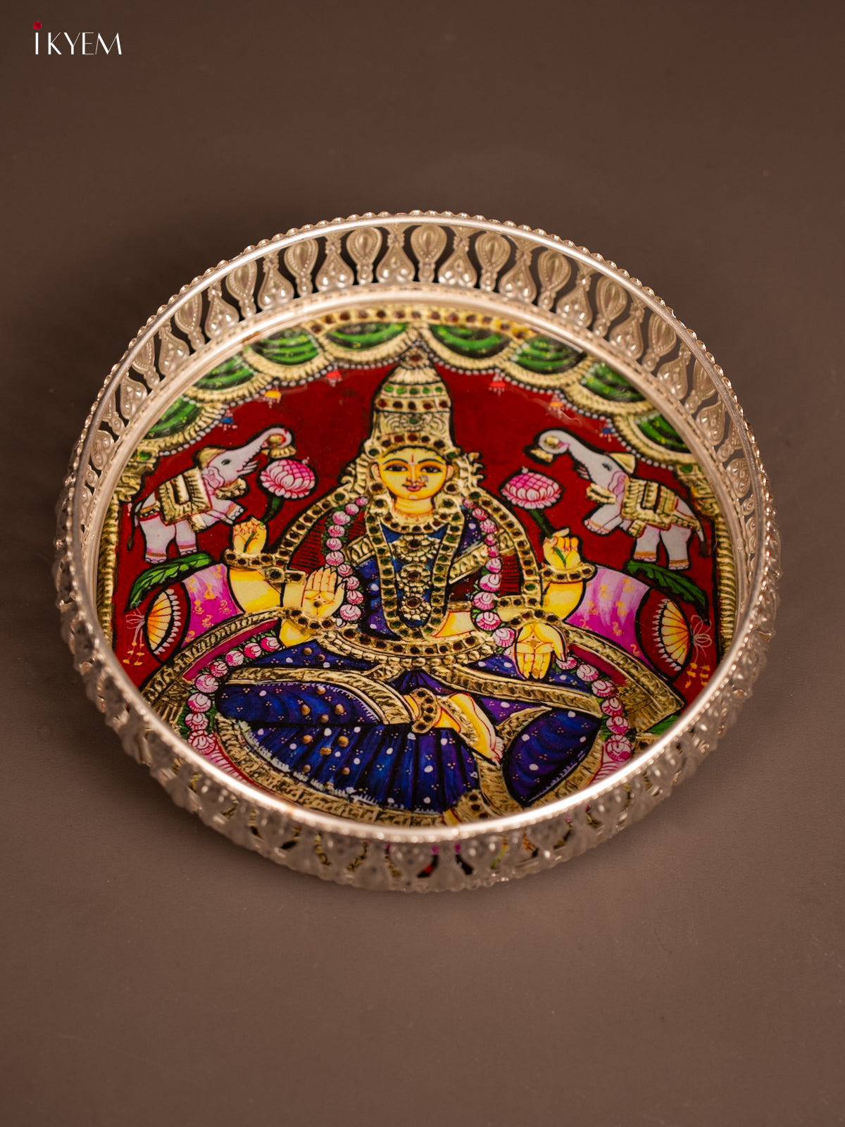 Digital Printed German Silver Tray - Gajalakshmi - 8 inch - KF21197