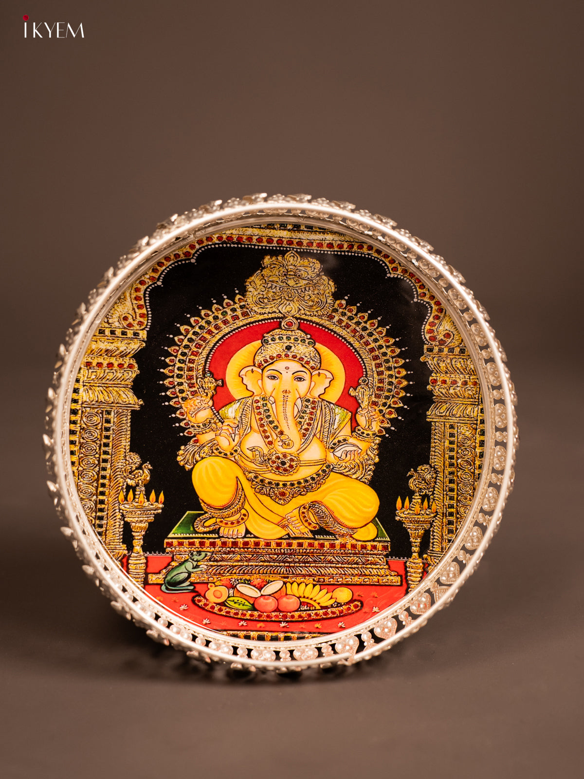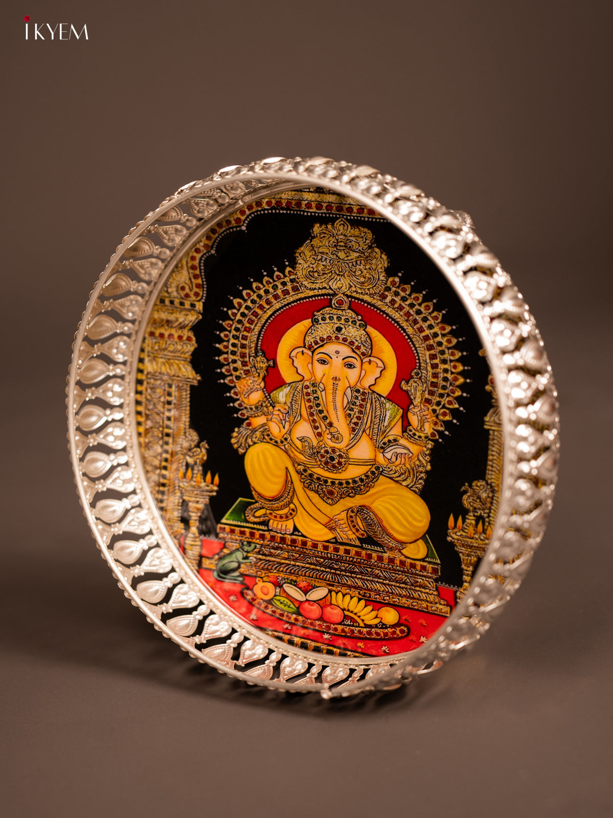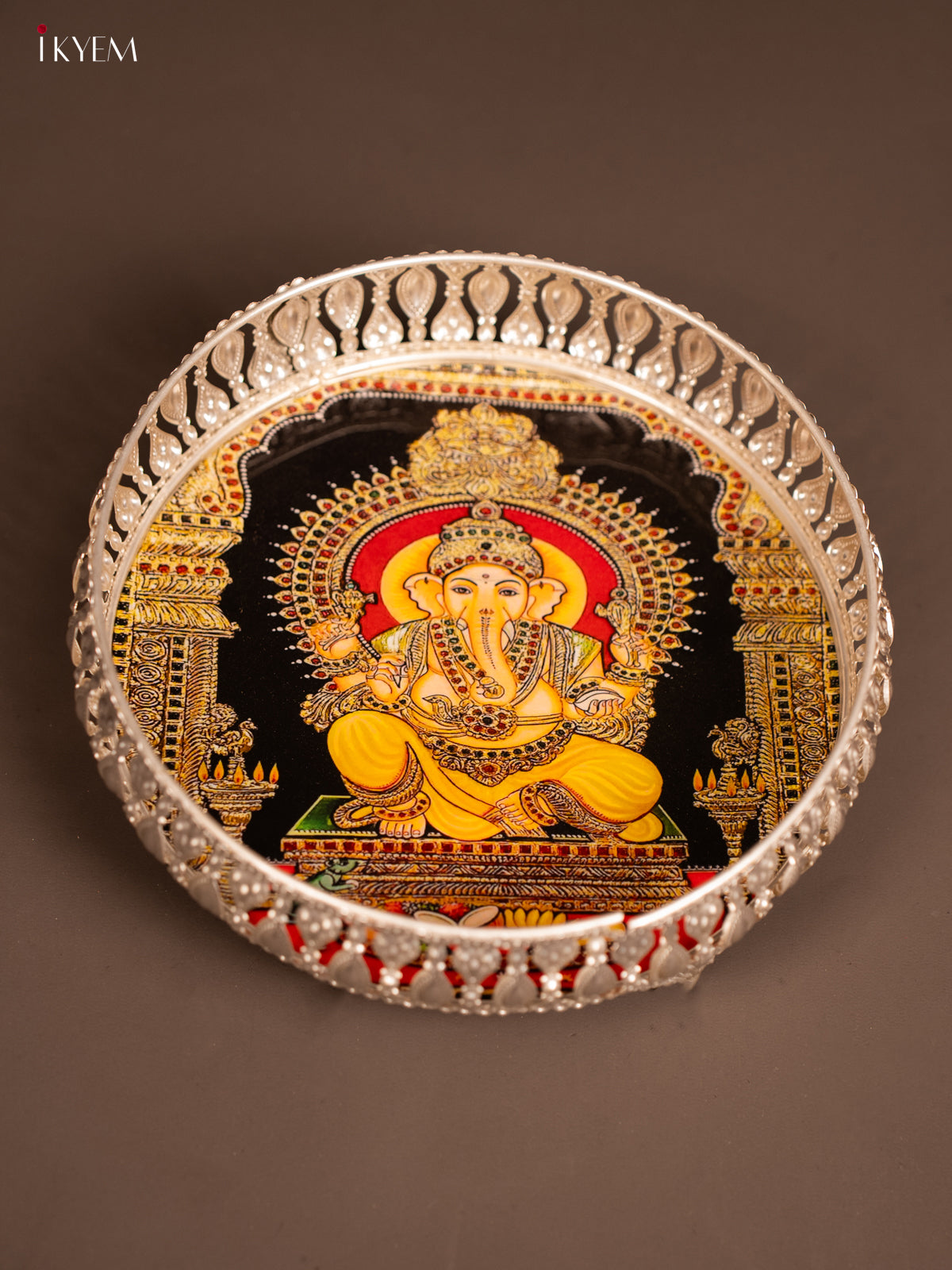 Digital Printed German Silver Tray - Ganesha - 8 inch - KF21203