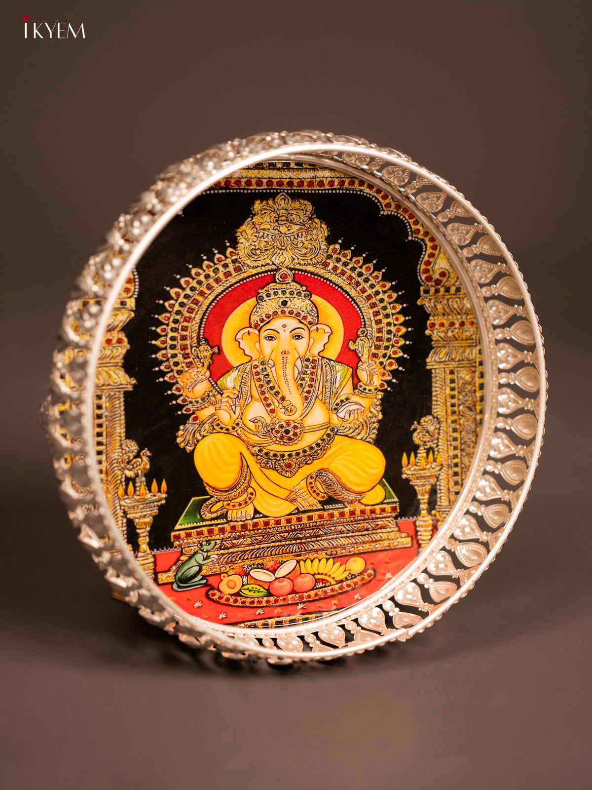 - Expertly crafted, this Digital Printed German Silver Tray boasts a stunning Ganesha design.