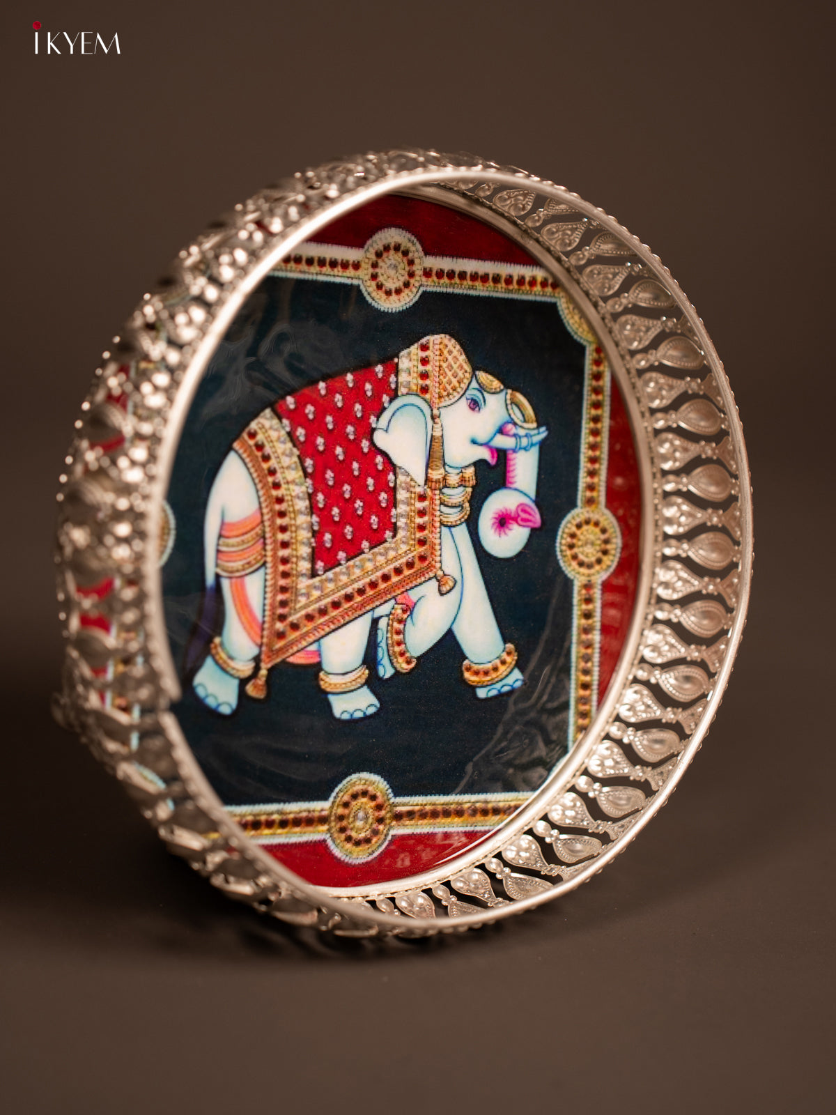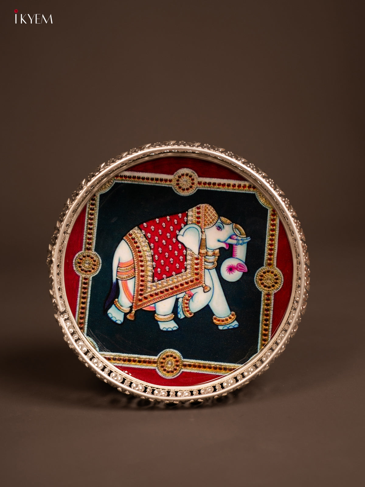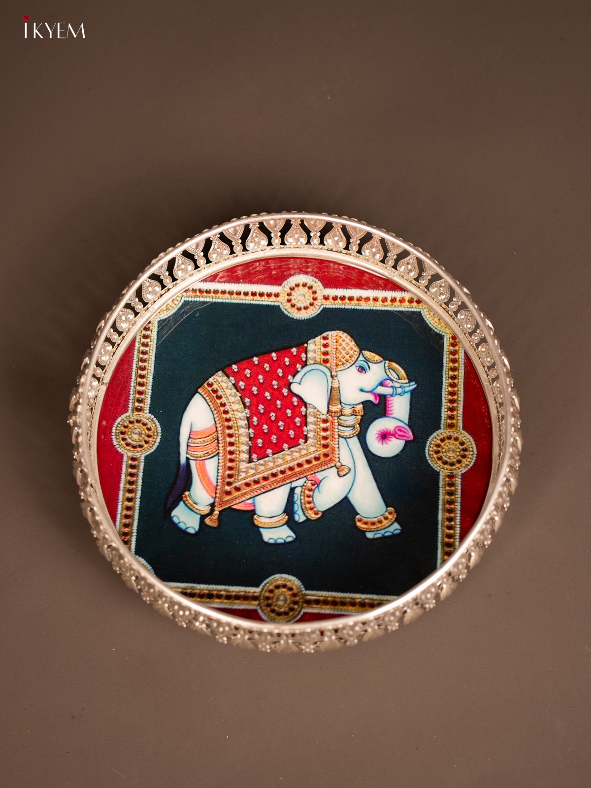 Digital Printed German Silver Tray - Elephant - 8 inch - KF21208