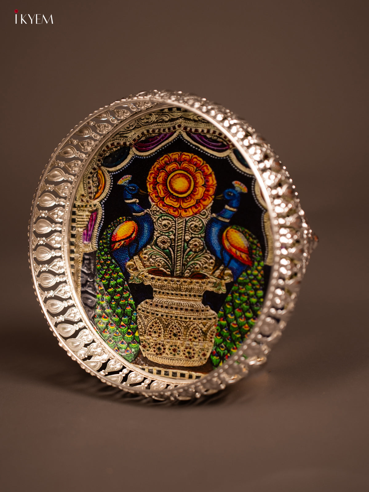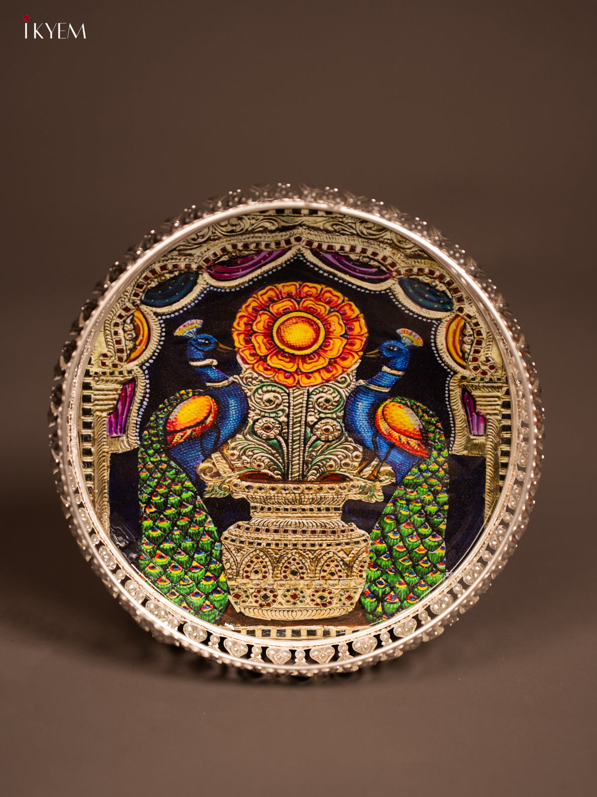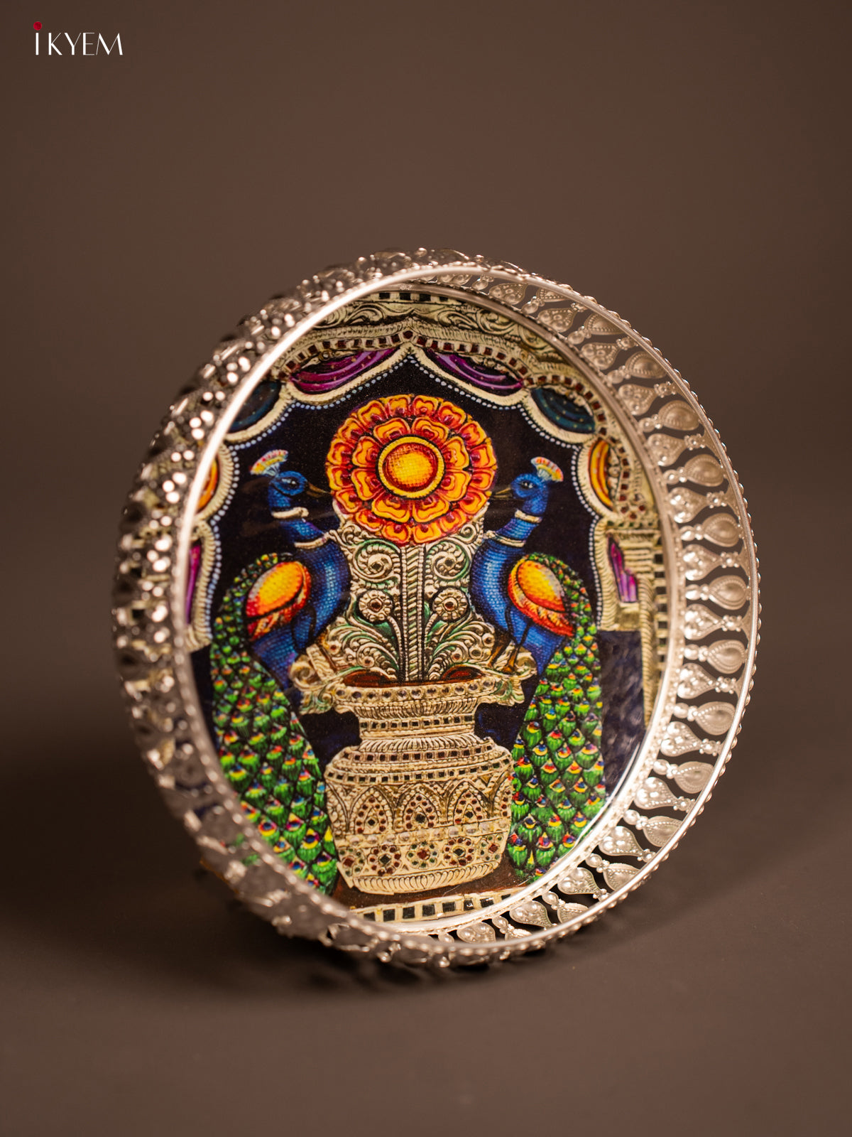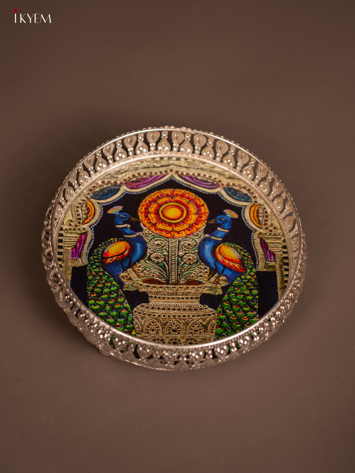 Digital Printed German Silver Tray - Peacock - 8 inch - KF21221