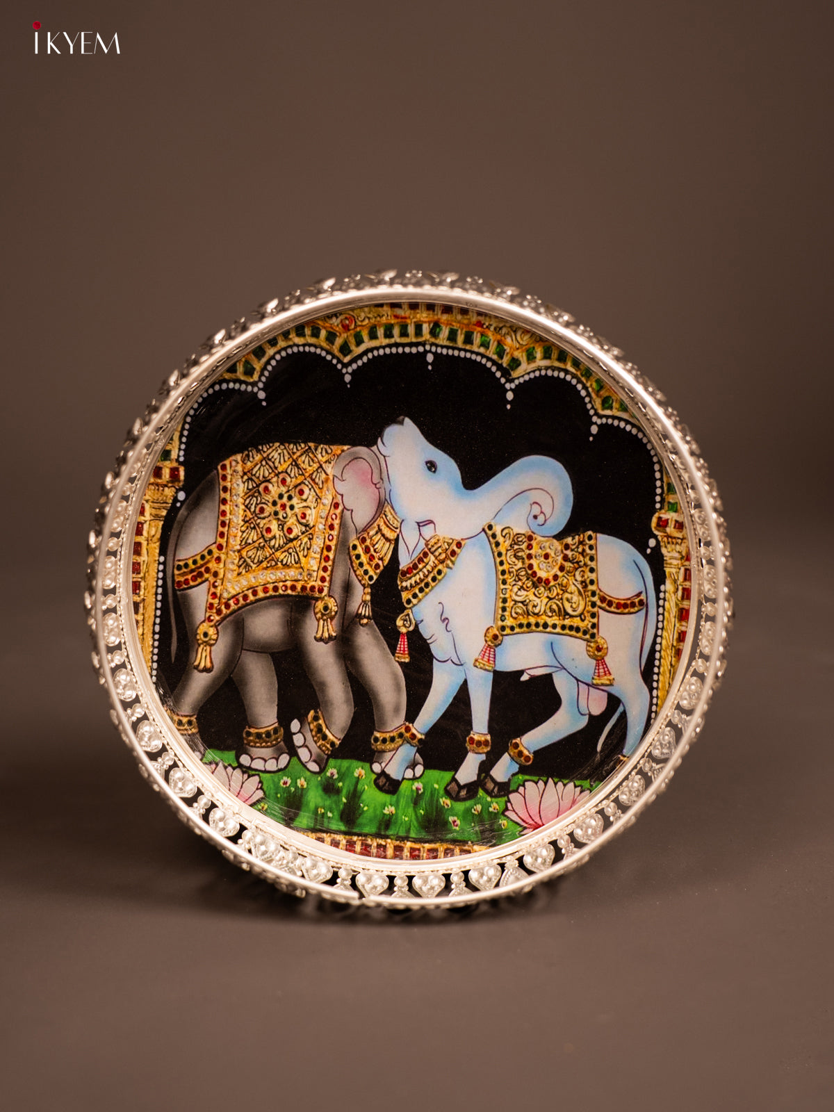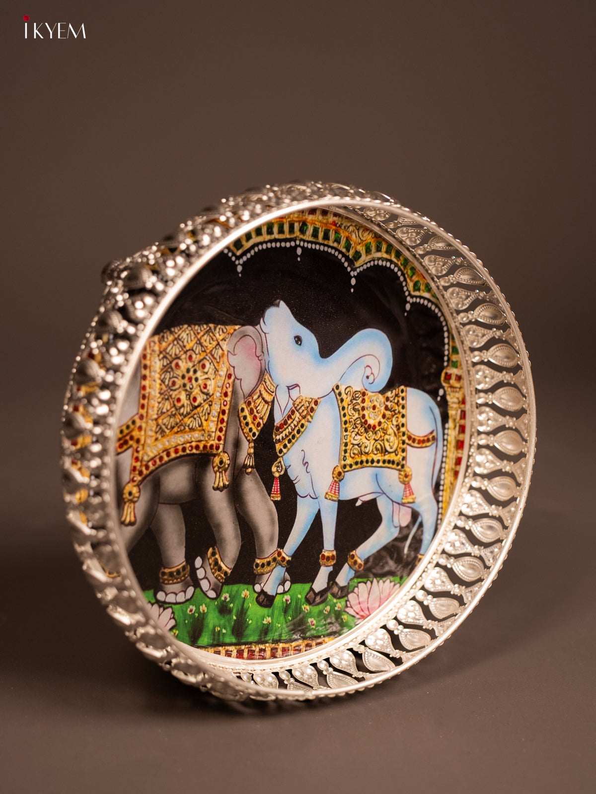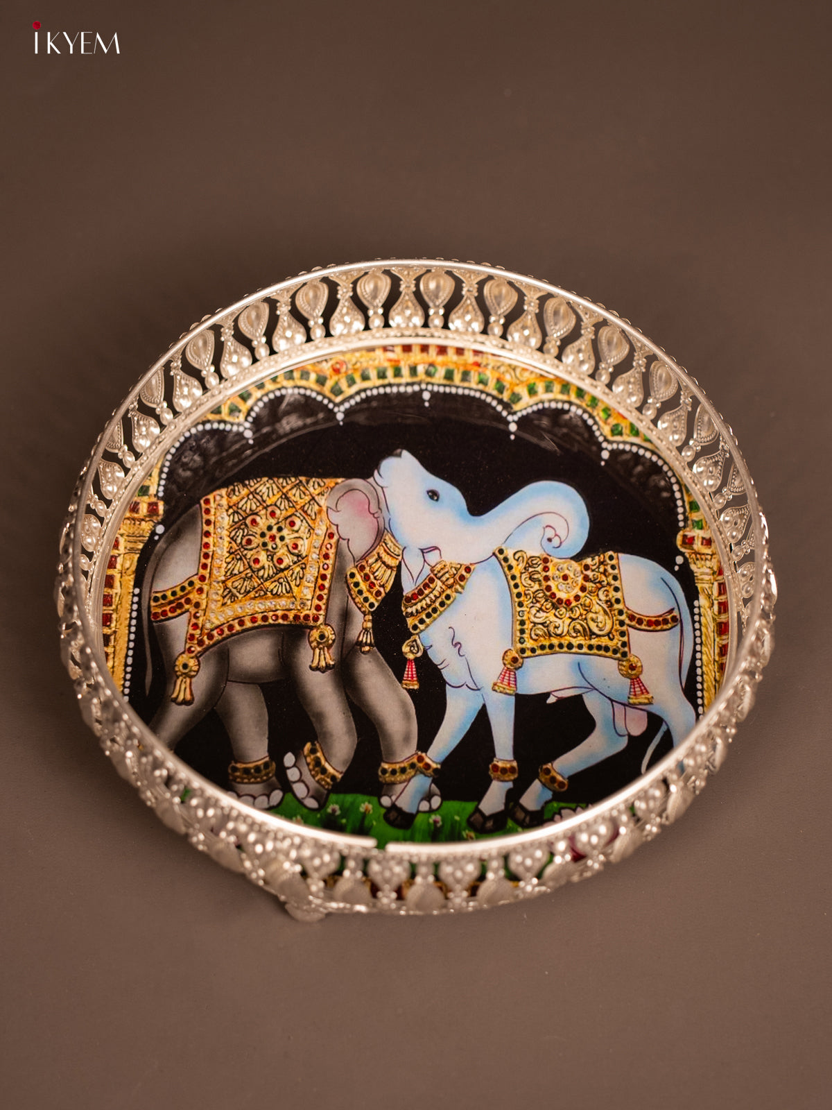 Digital Printed German Silver Tray - Elephant & Cow- 8 inch - KF21223