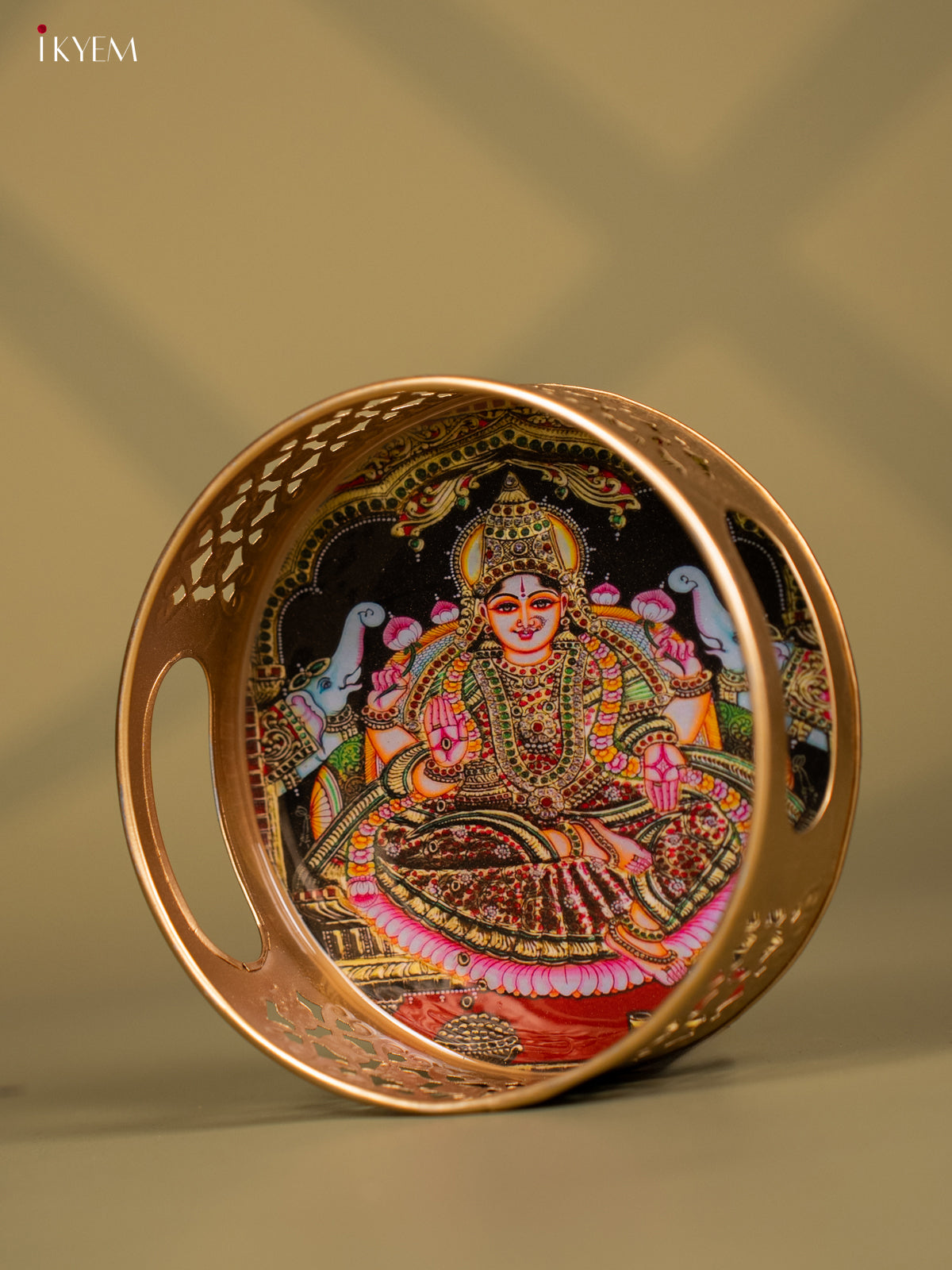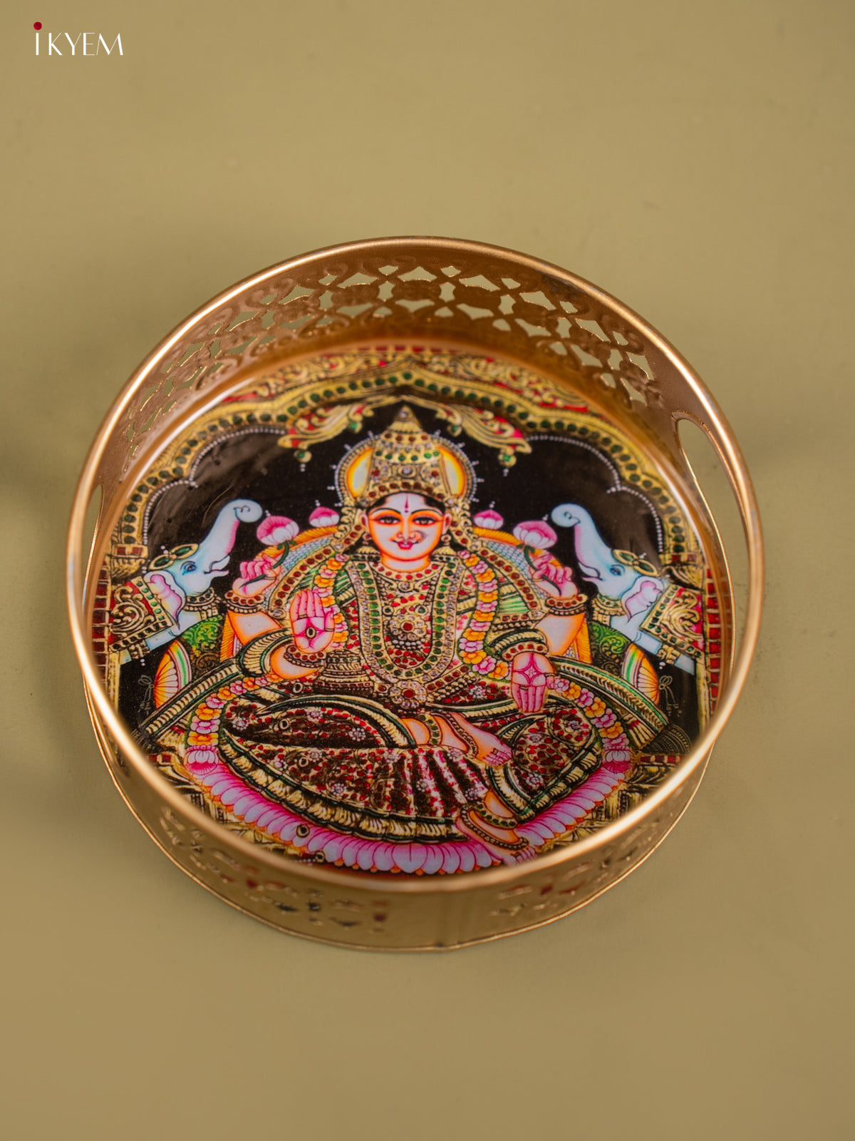 Goddess Gajalakshmi Printed Round Metal Tray - KF24141