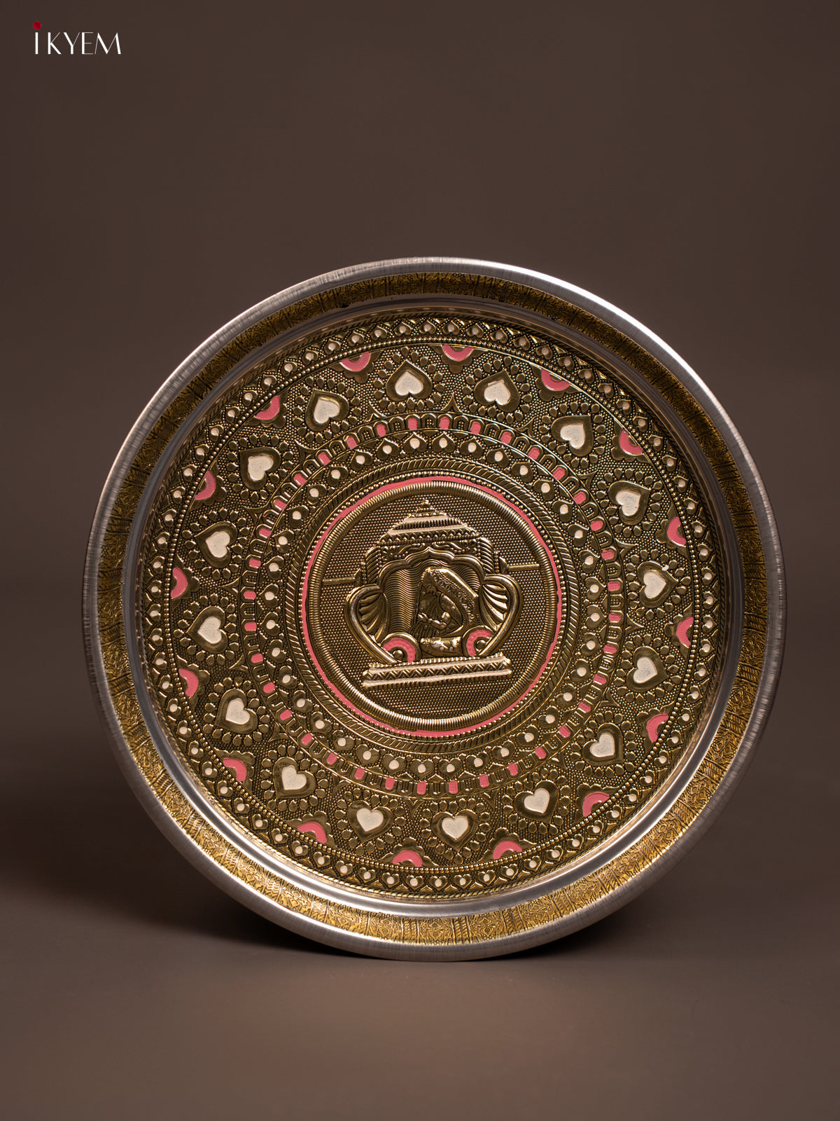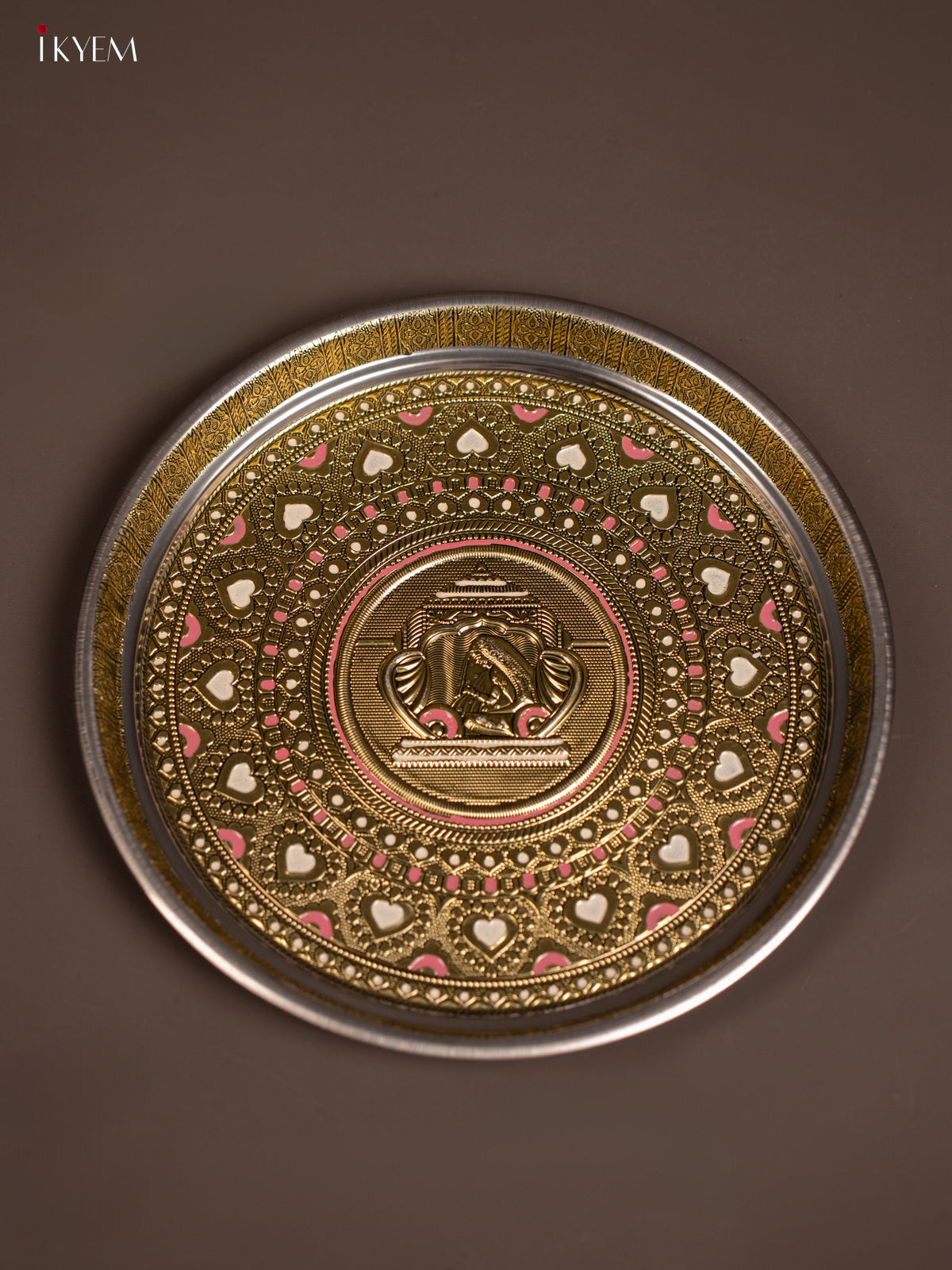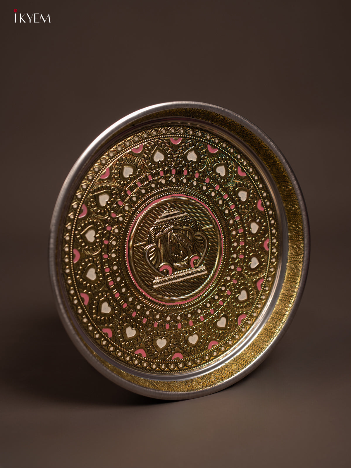 - This 11x11 inch Gold Oxidized Meenakari Plate features intricate Palaku designs, making it an elegant choice for pooja rituals or as a traditional return gift.