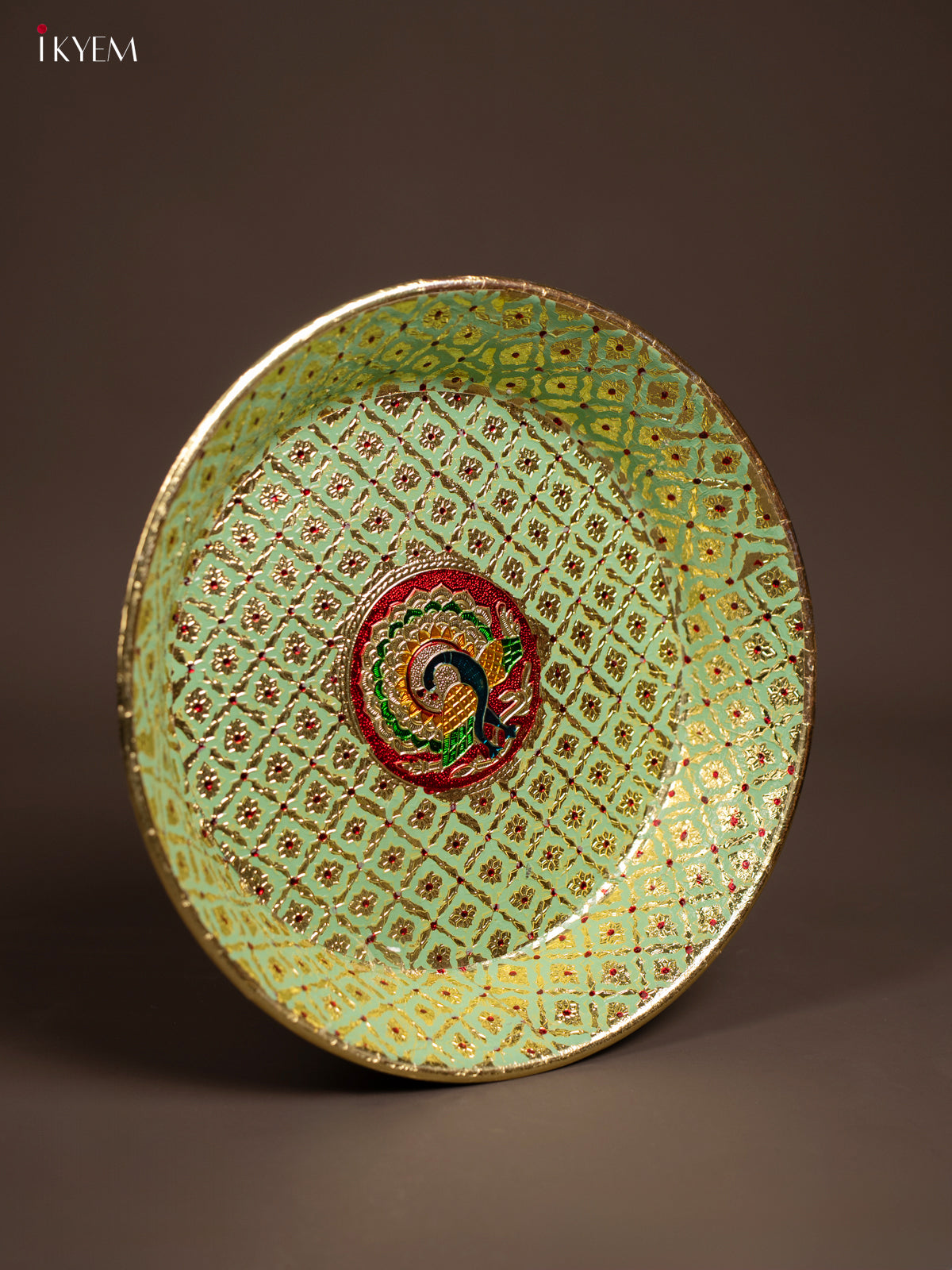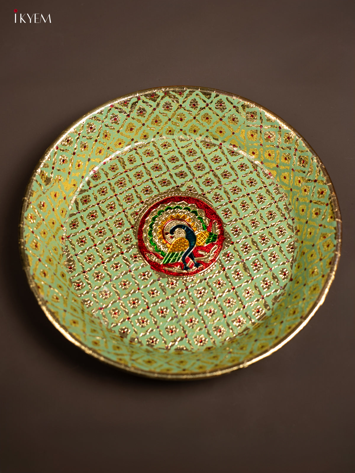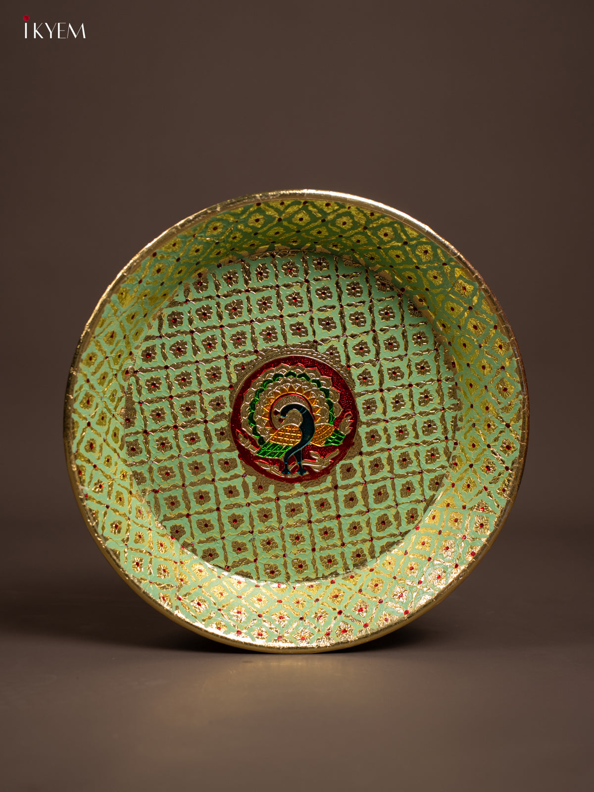- This Meenakari Plate Round in Green is a perfect addition to your table settings and decor.