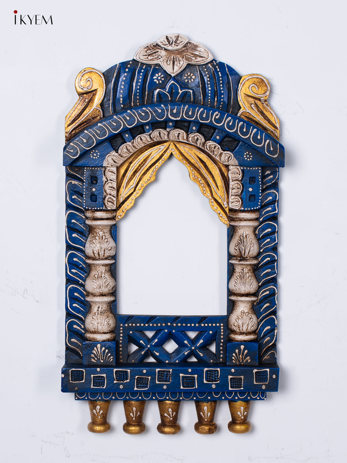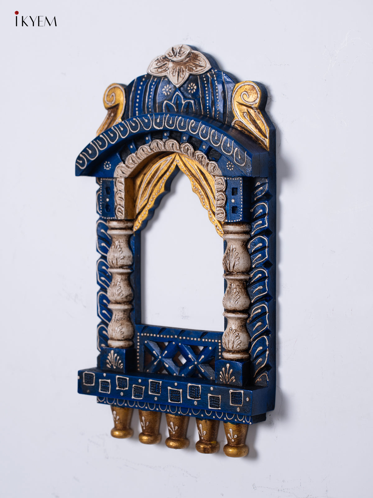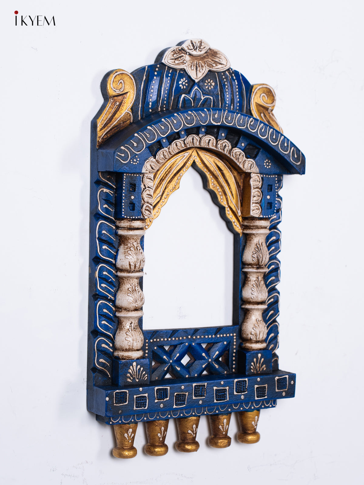 - This hand-painted wooden jharokha in blue combines traditional design with stylish craftsmanship, making it a distinctive wall decor piece.