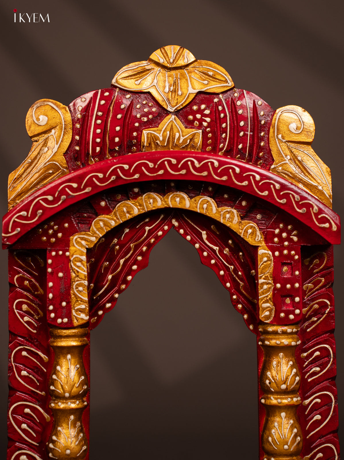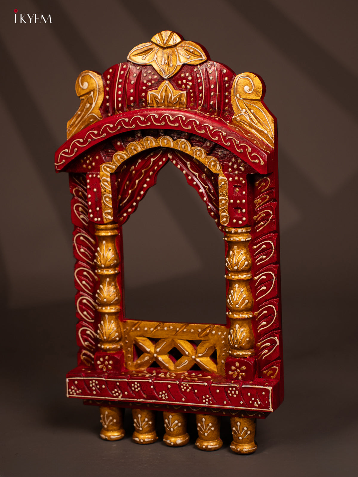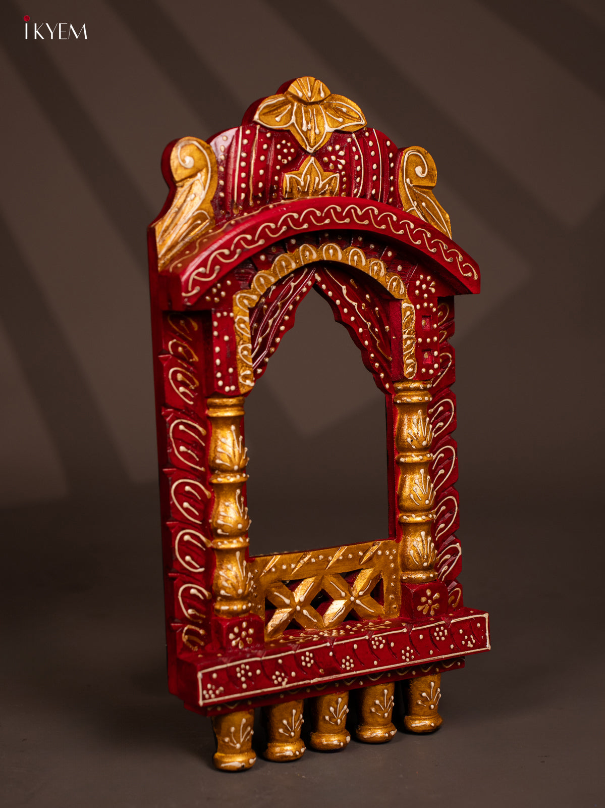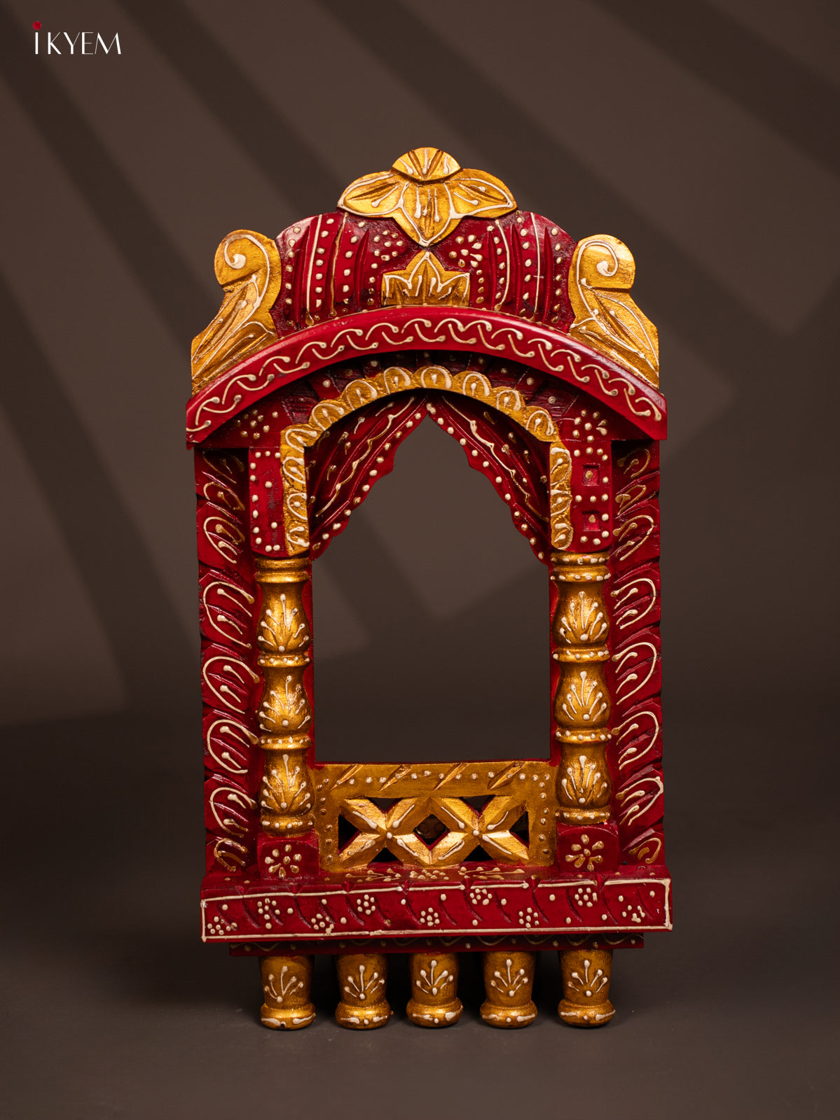 - This hand-painted wooden jharokha in maroon combines traditional design with stylish craftsmanship, making it a distinctive wall decor piece.
