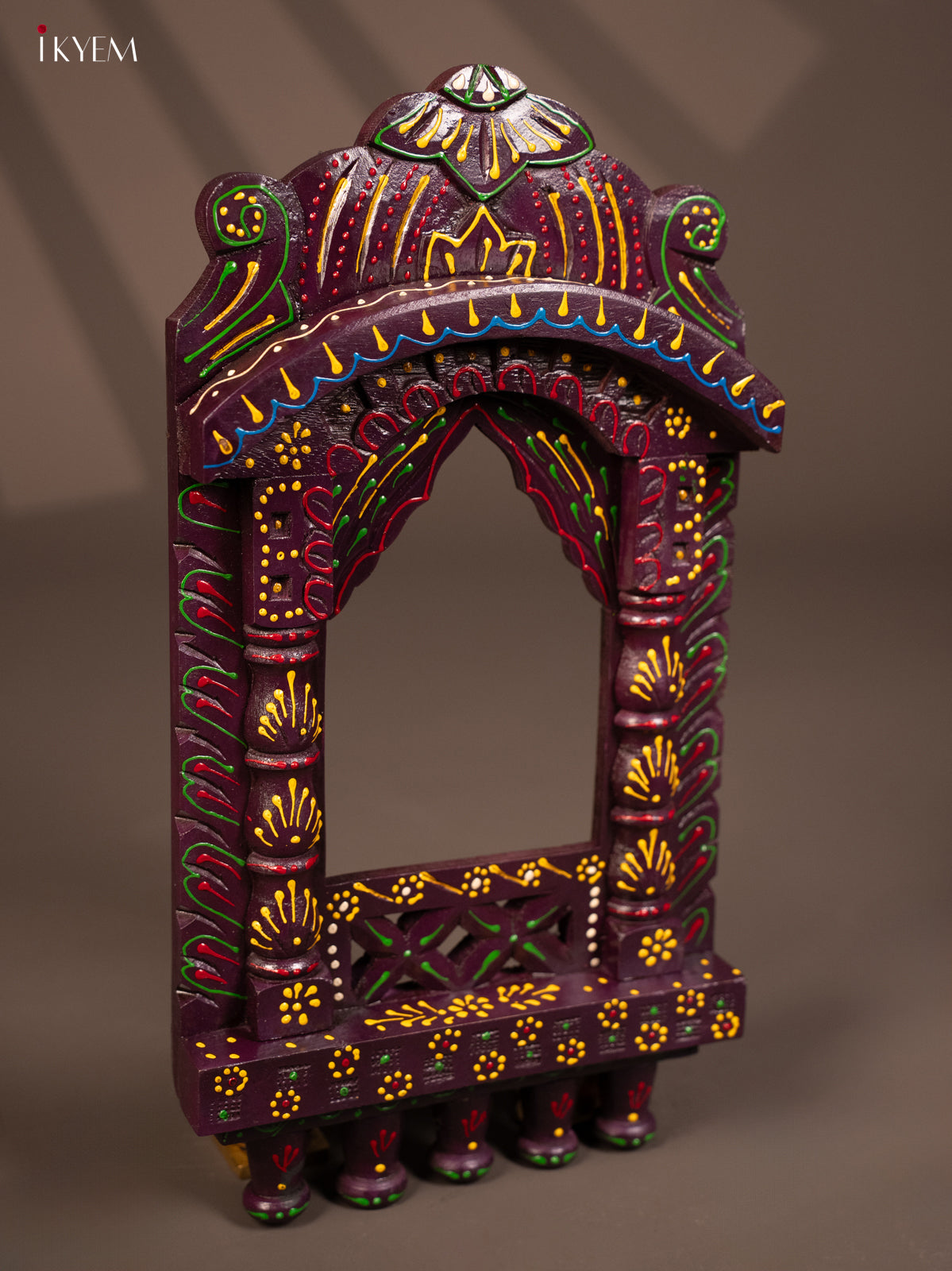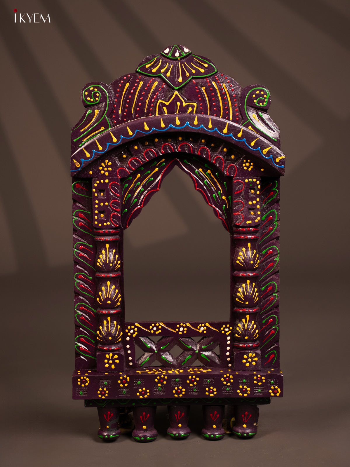 - This hand-painted wooden jharokha in purple combines traditional design with stylish craftsmanship, making it a distinctive wall decor piece.