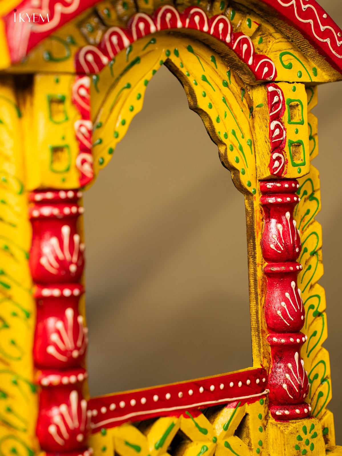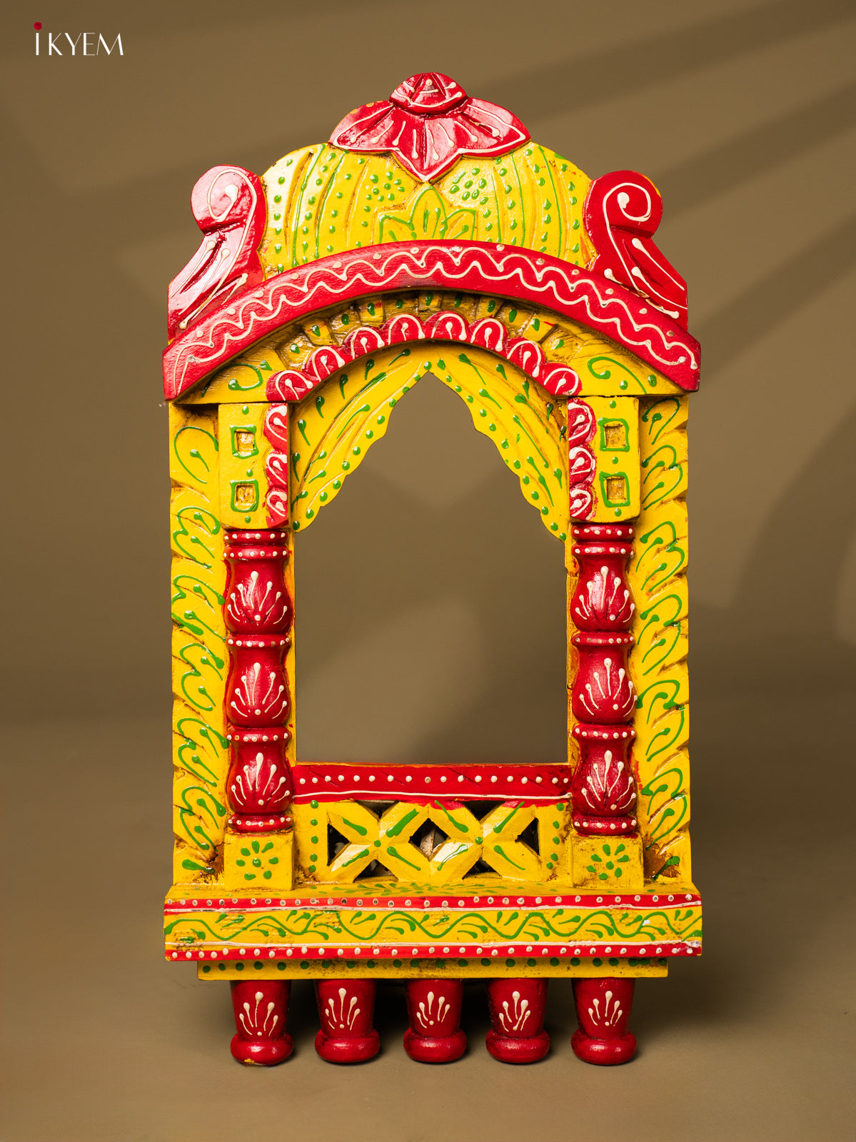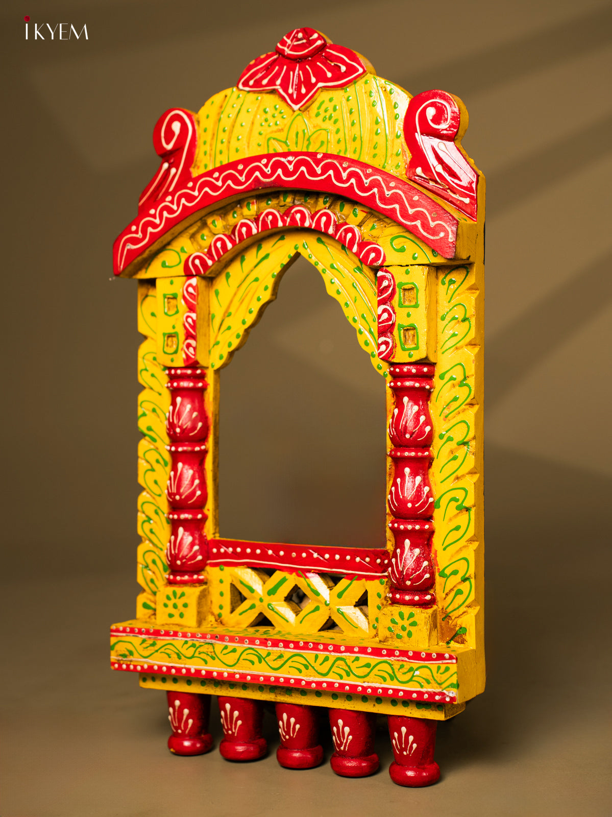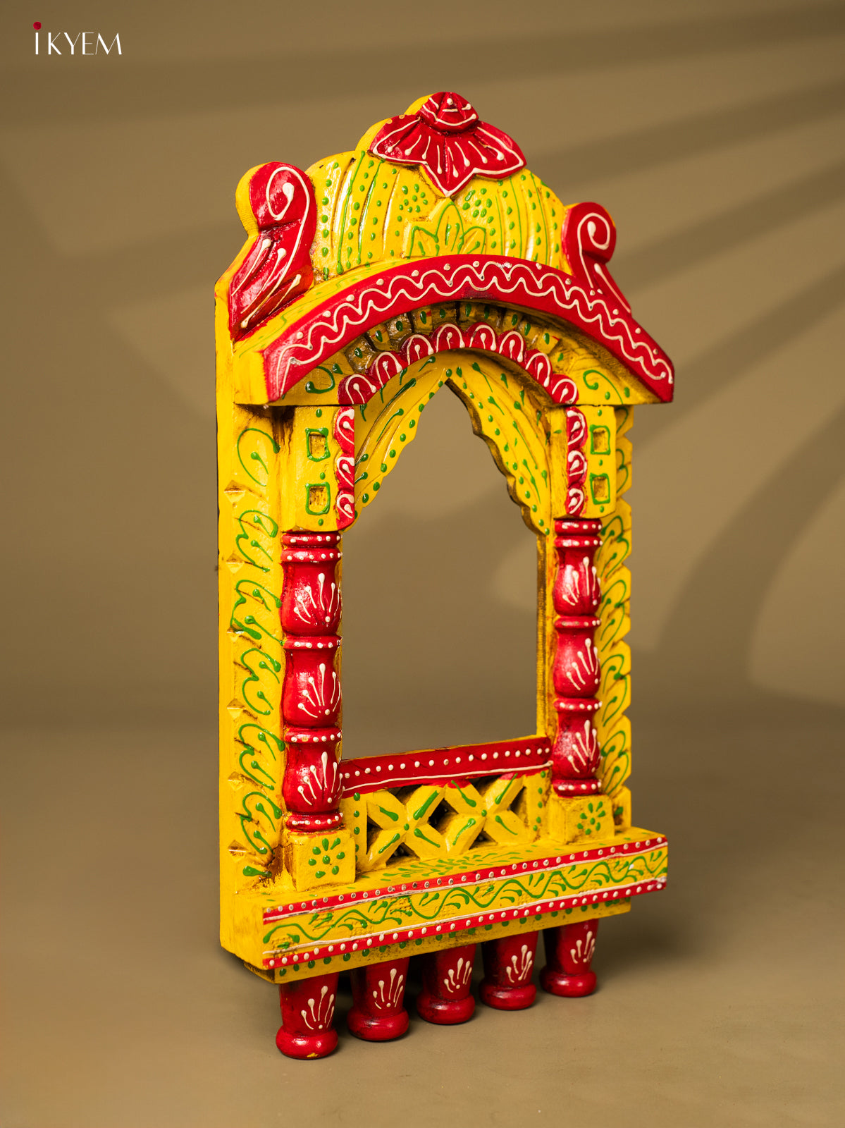 - This 16.5-inch hand-painted wooden Jarokha in vibrant yellow adds a touch of traditional elegance to any home decor.