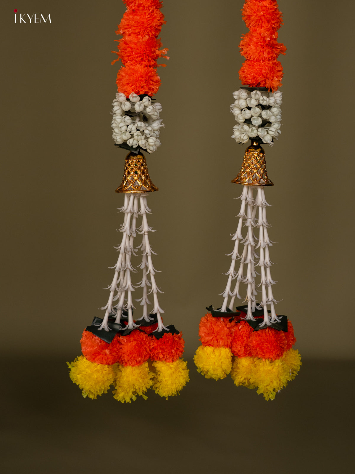 - Enhance your festive and ceremonial spaces with this Artificial Flowers Toran in orange and yellow.