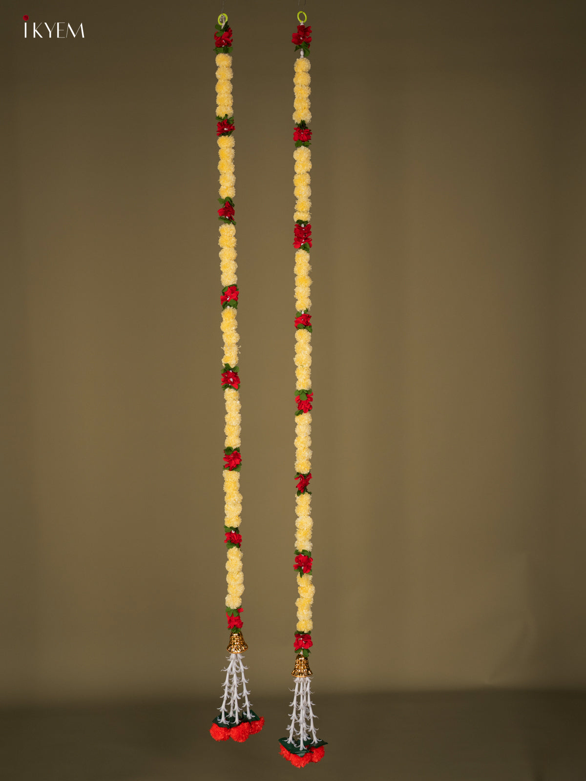 - Enhance your festive and ceremonial spaces with this Artificial Flowers Toran in red and off white.