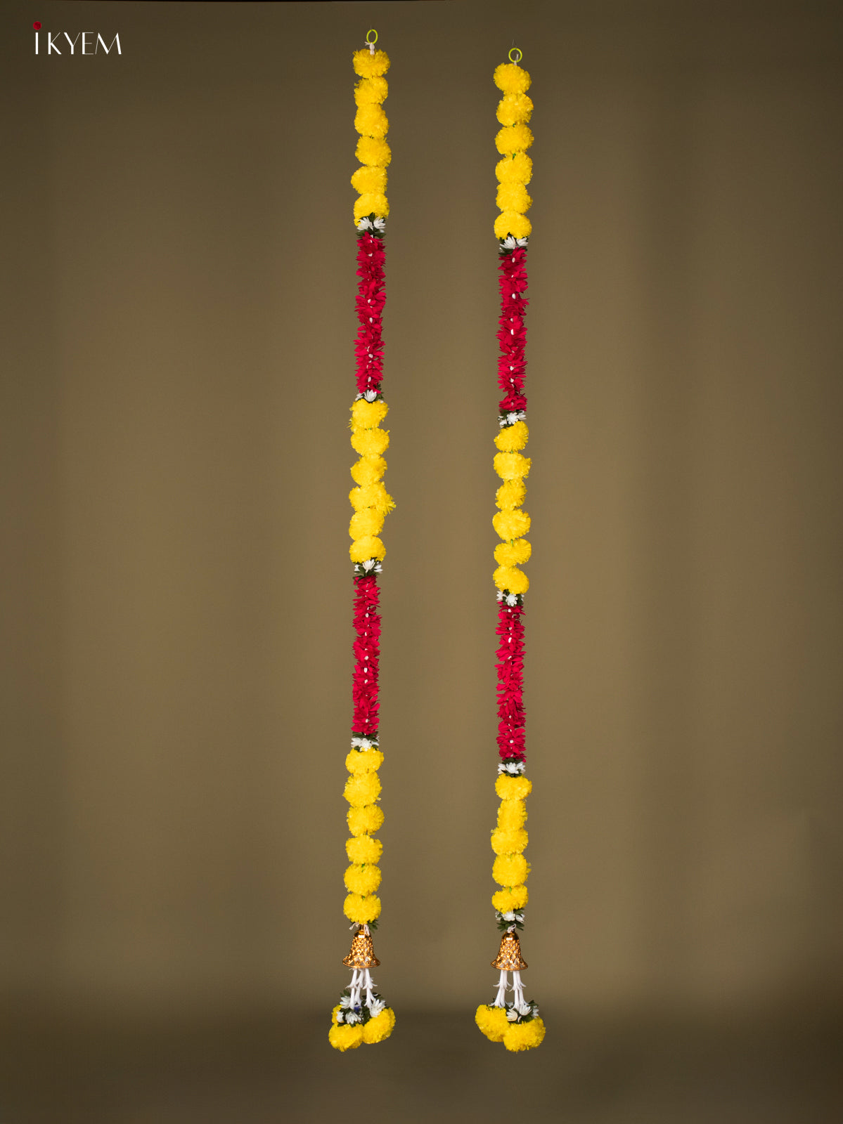 - Enhance your festive and ceremonial spaces with this Artificial Flowers Toran in yellow and Dark pink.