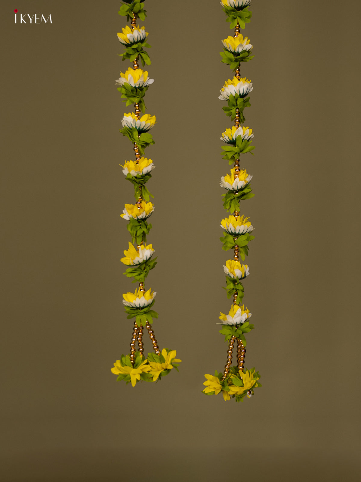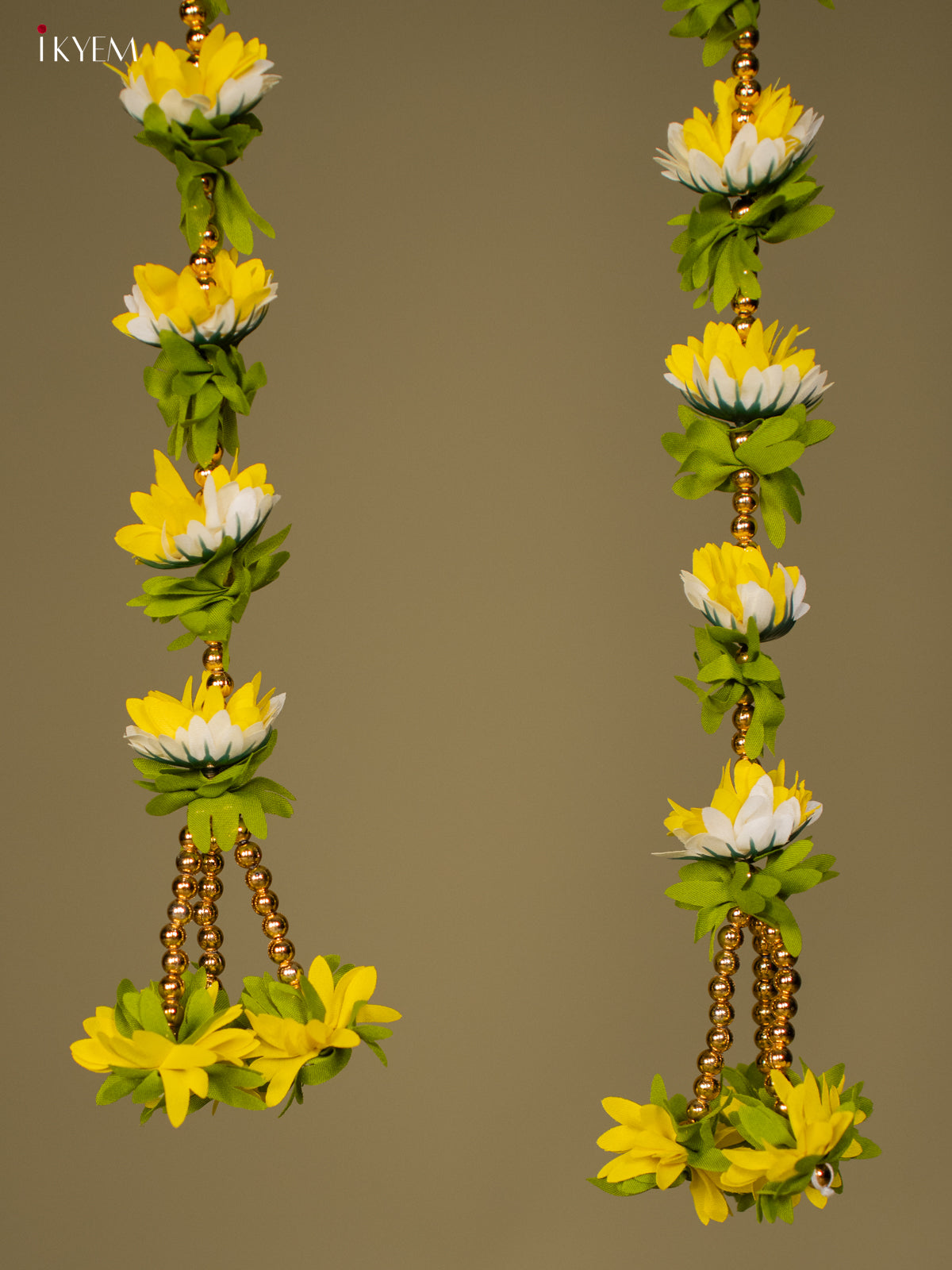 - Enhance your festive and ceremonial spaces with this Artificial Flowers Toran in yellow and white.