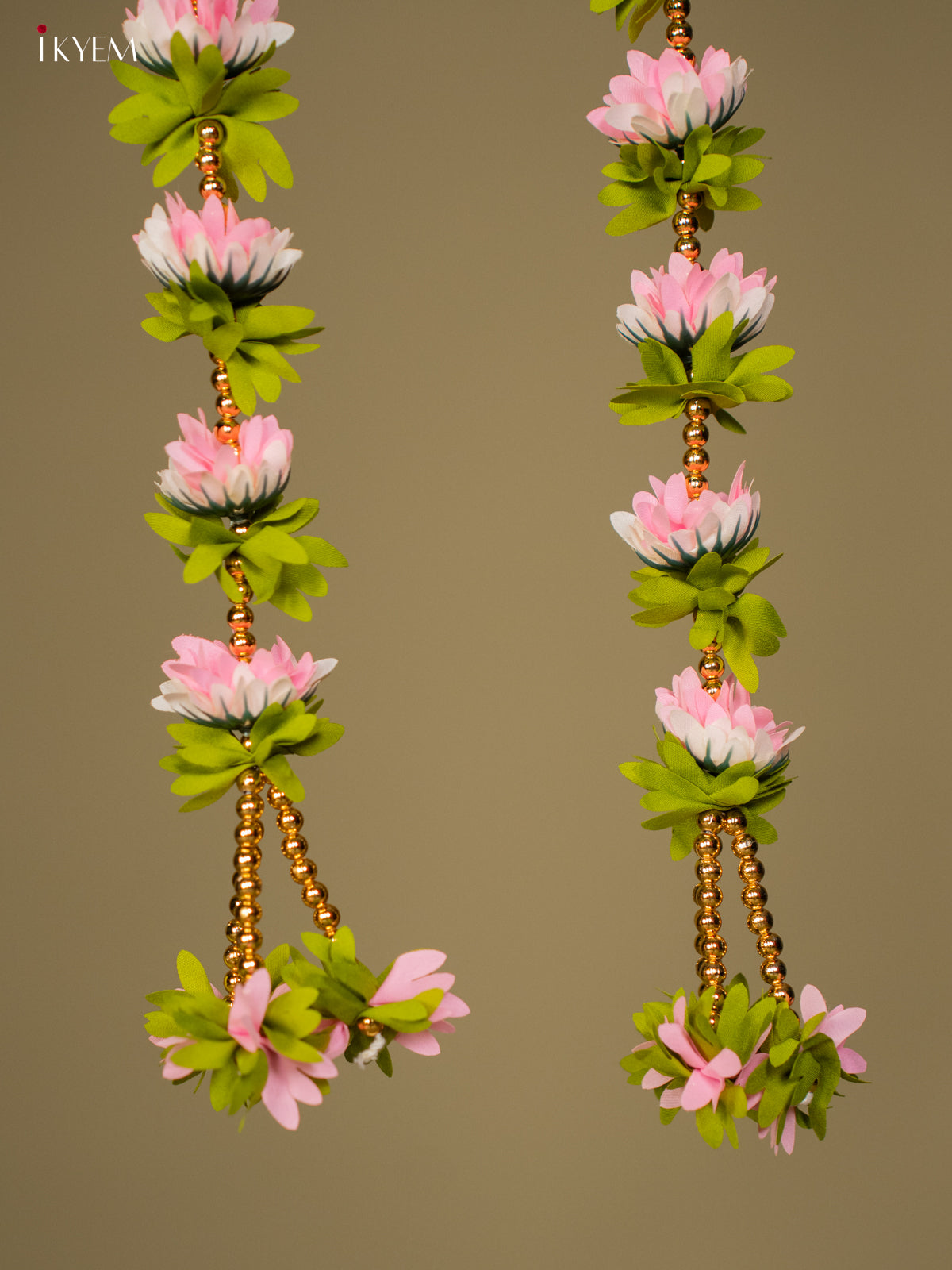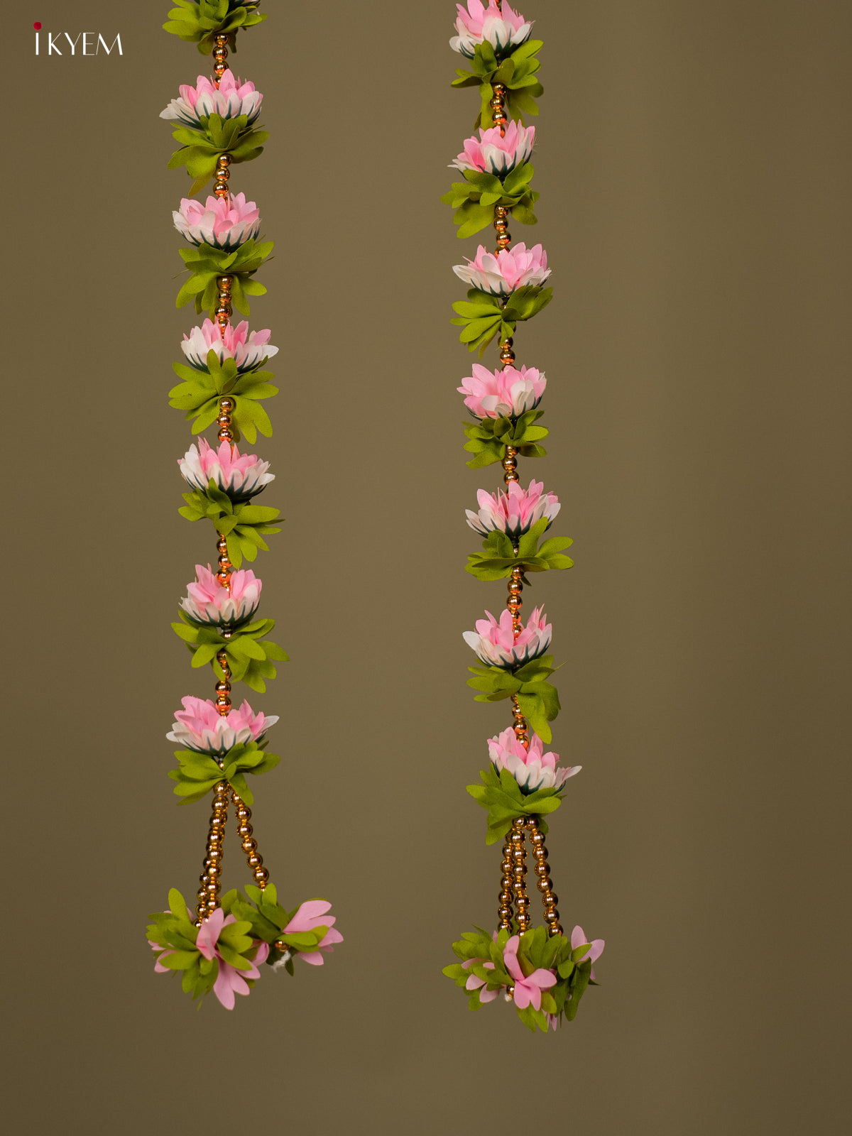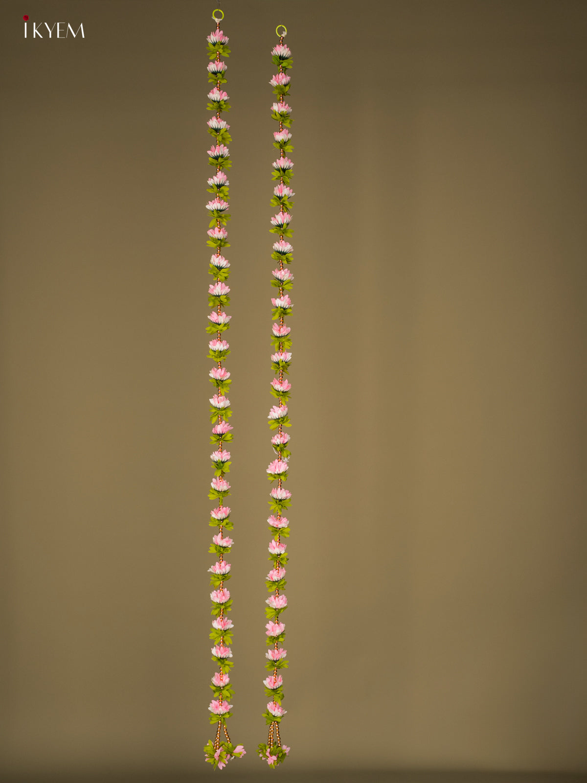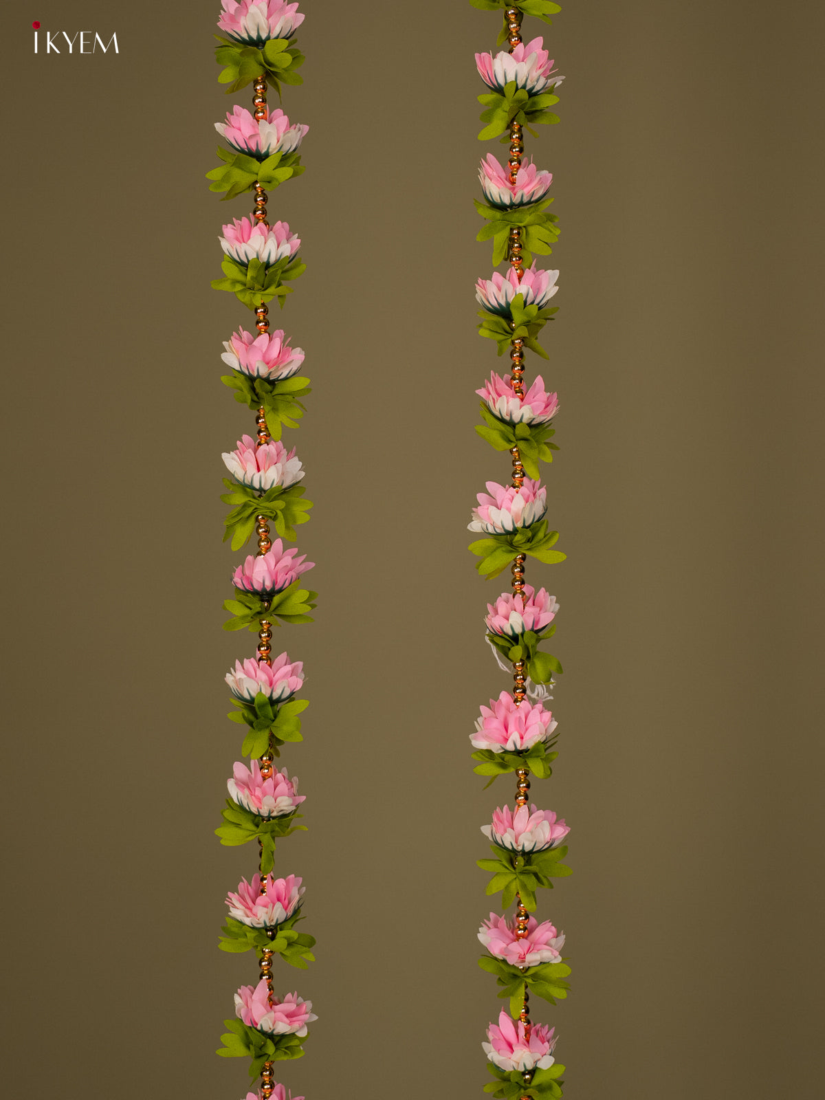 - Enhance your festive and ceremonial spaces with this Artificial Flowers Toran in white and Light pink.