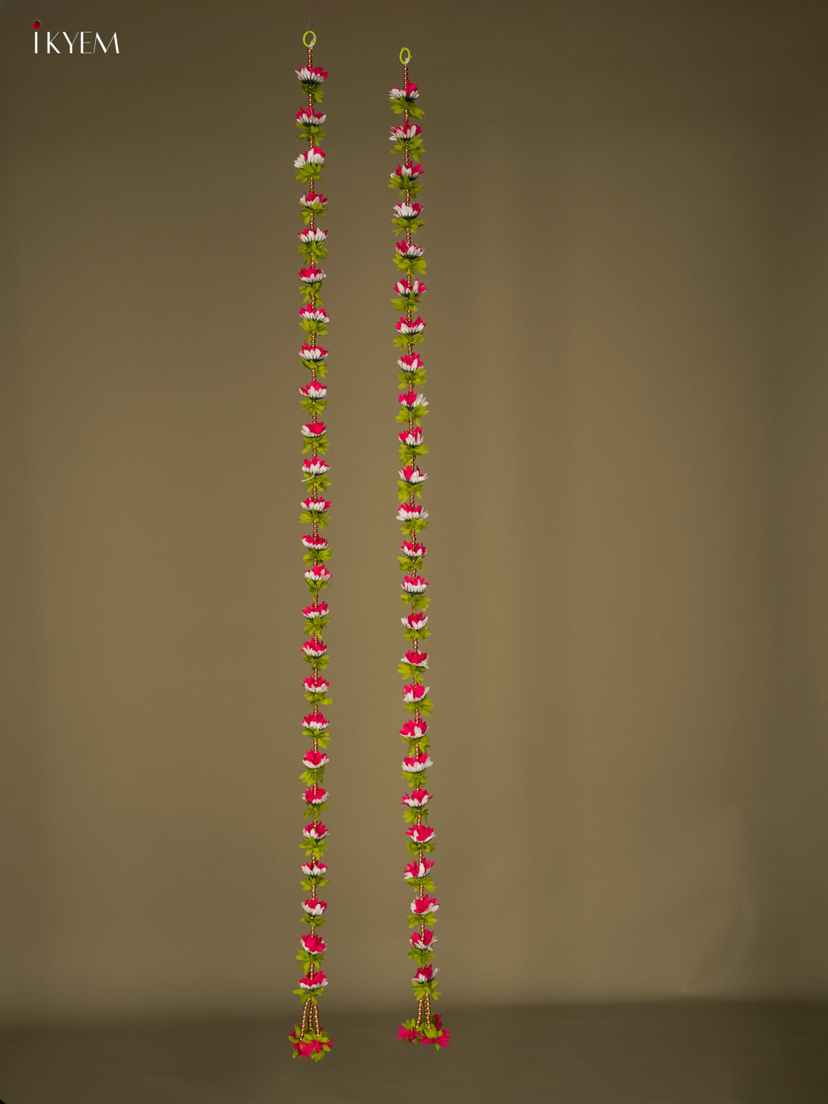 - Enhance your festive and ceremonial spaces with this Artificial Flowers Toran in green and Dark pink.