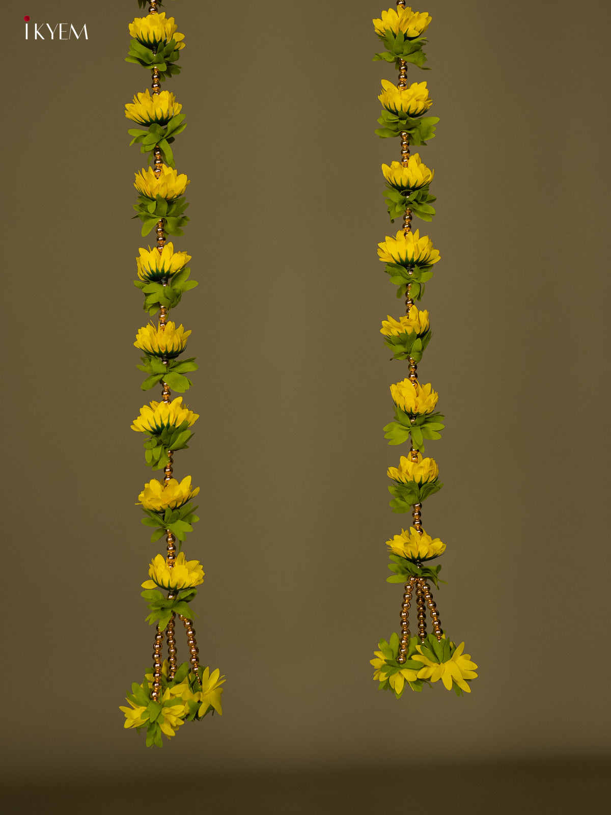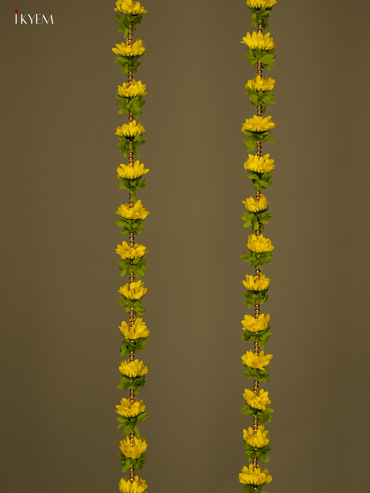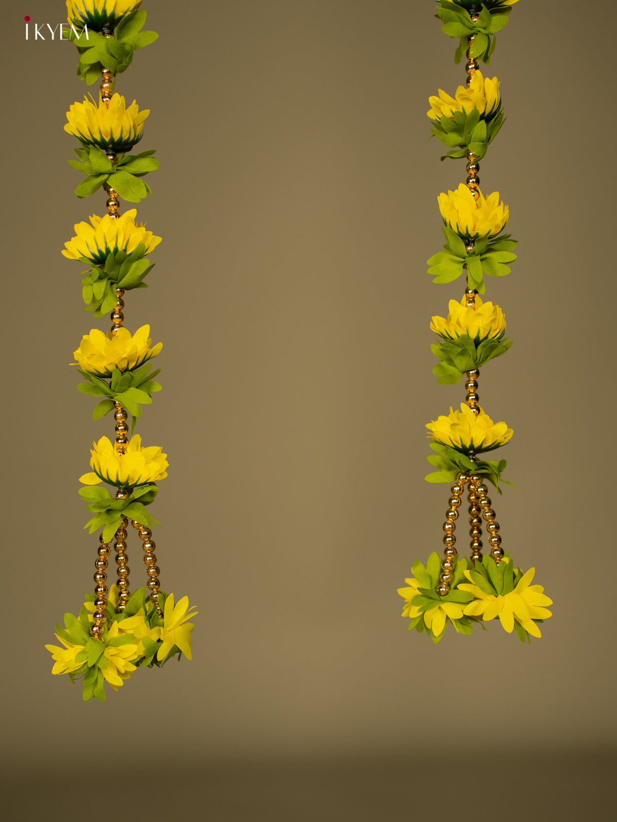 - Enhance your festive and ceremonial spaces with this Artificial Flowers Toran in green and yellow.