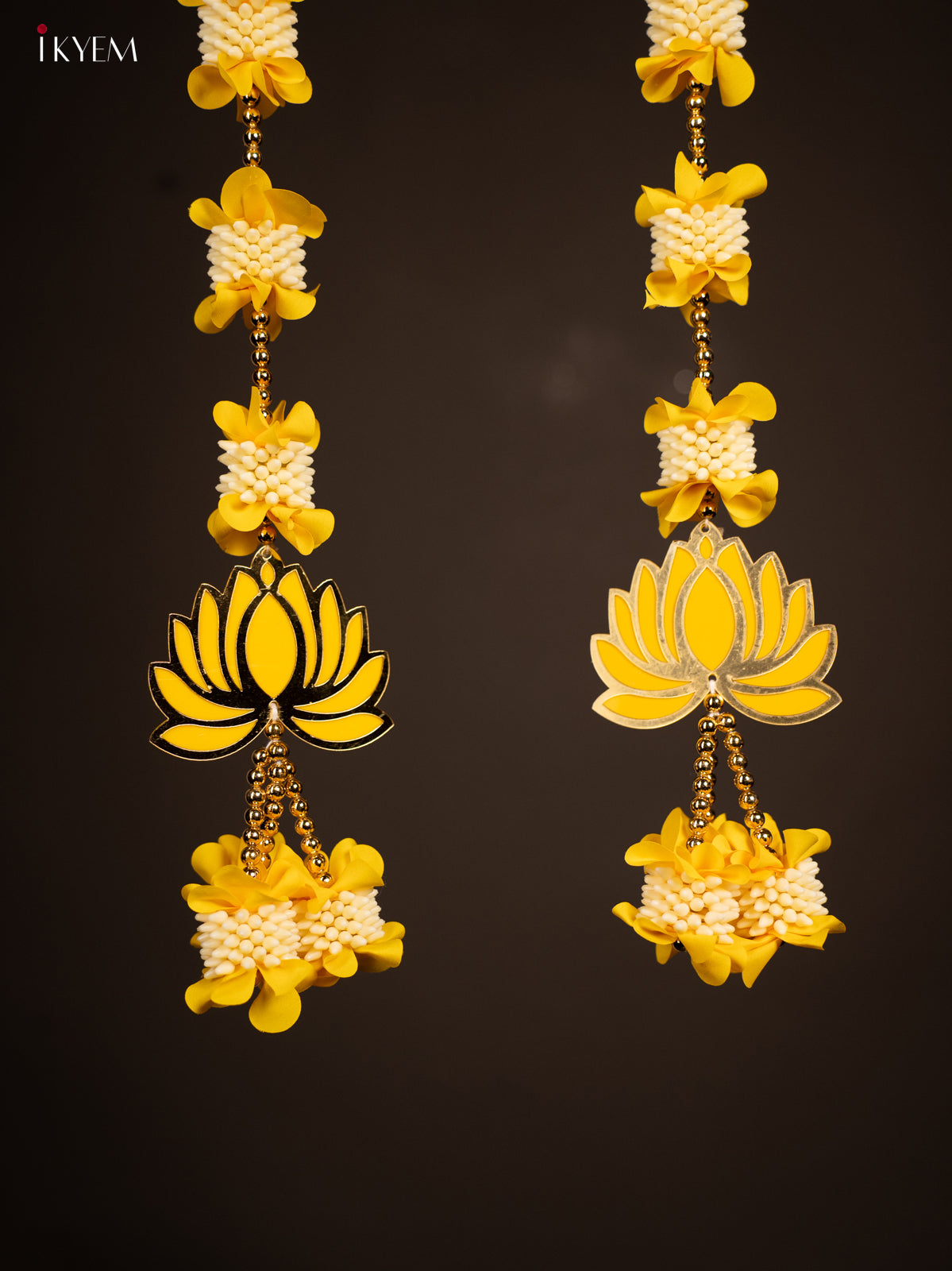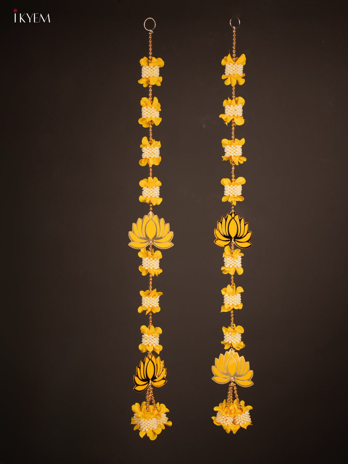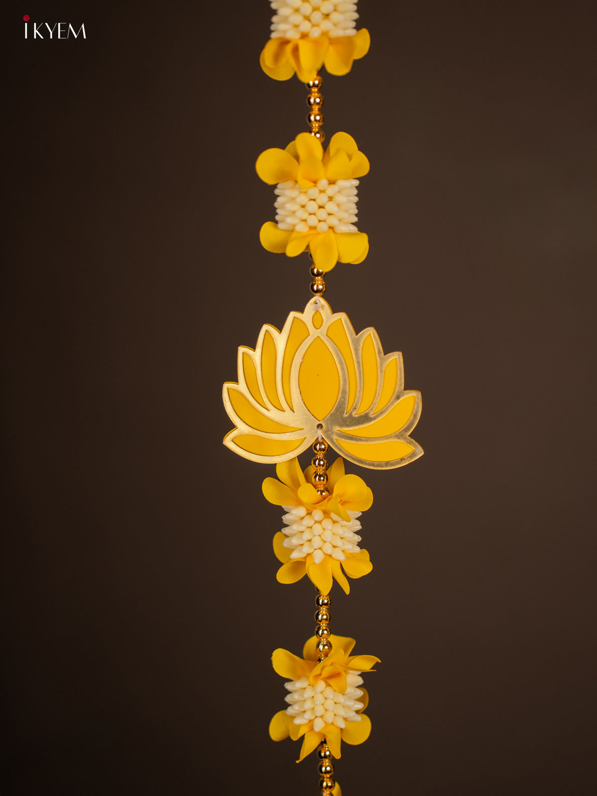 - Enhance your festive and ceremonial spaces with this Artificial Flowers Toran in yellow and White.