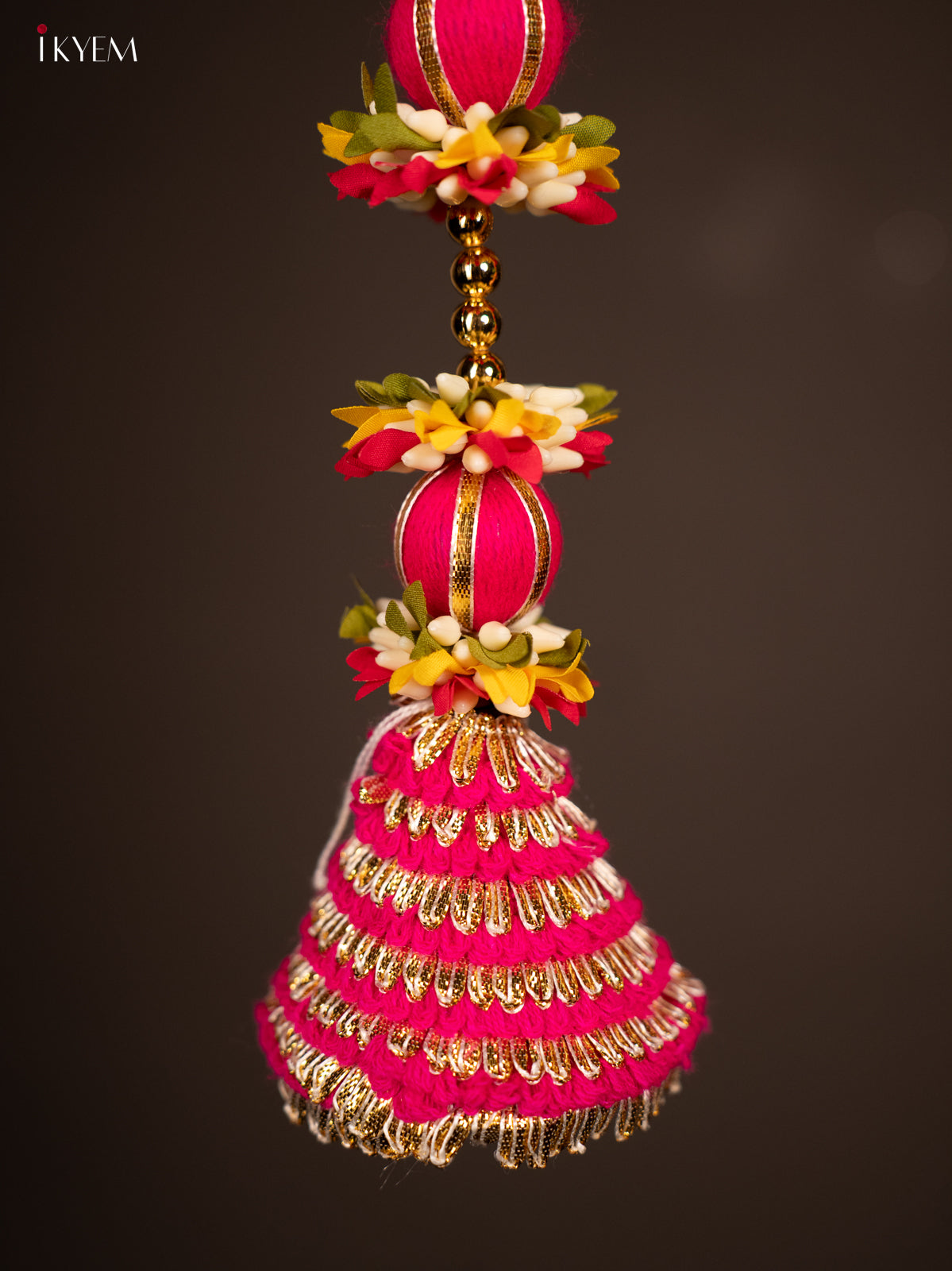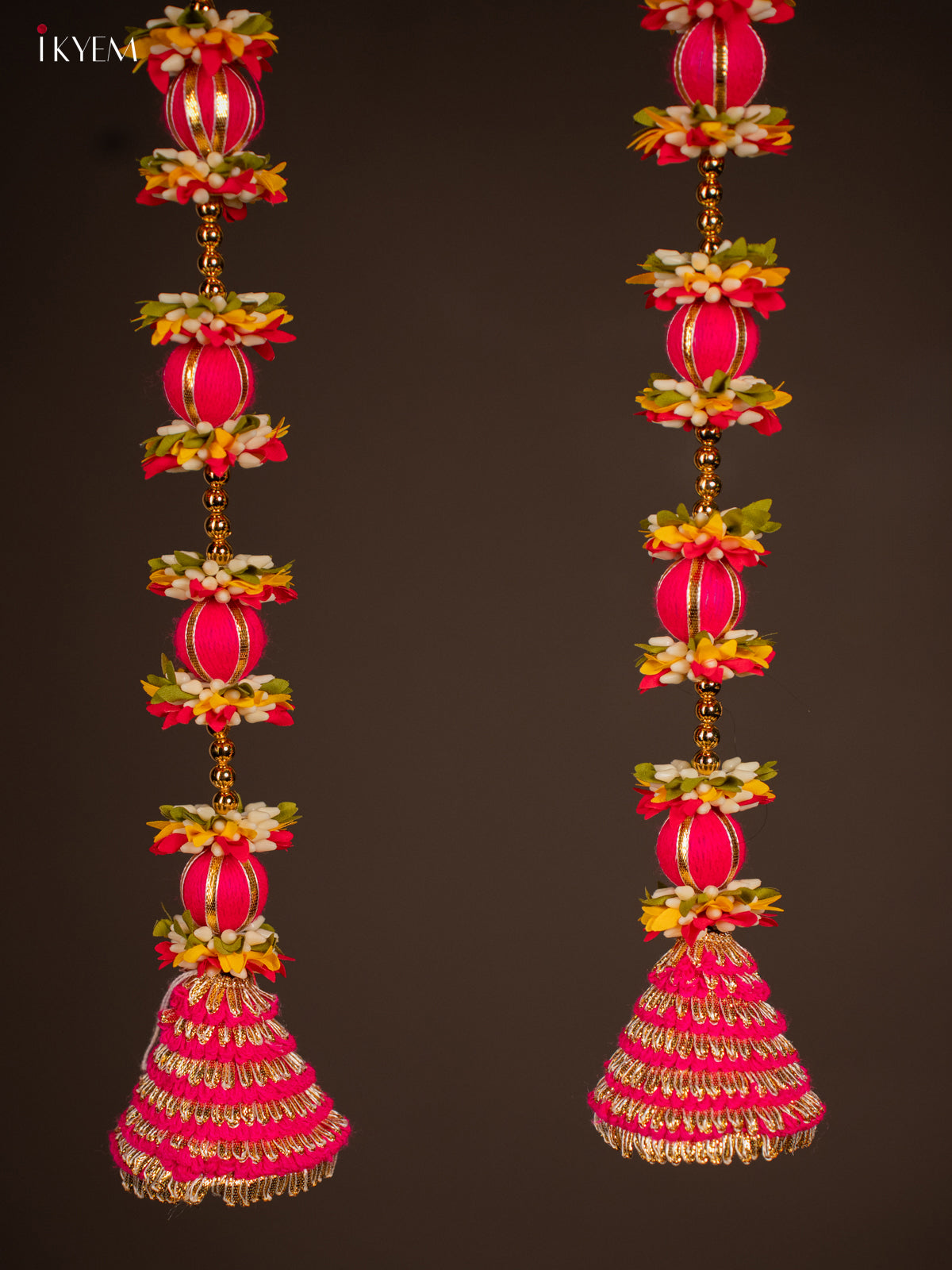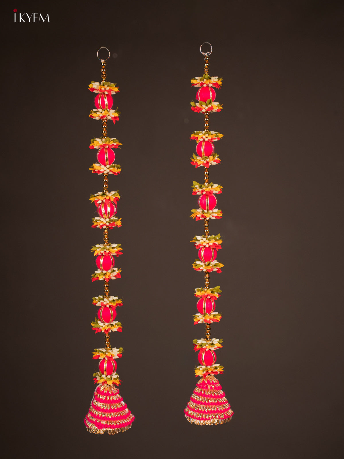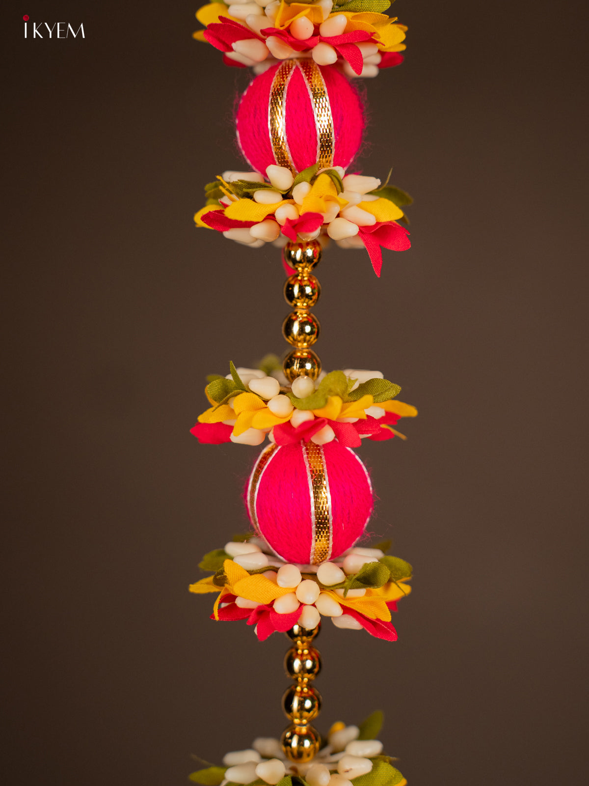 - Enhance your festive and ceremonial spaces with this Artificial Flowers Toran in Dark Pink and Yellow.