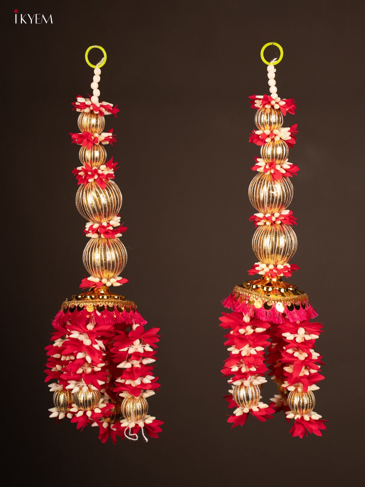 - Enhance your festive and ceremonial spaces with this Artificial Flowers Toran in Dark Pink and White.