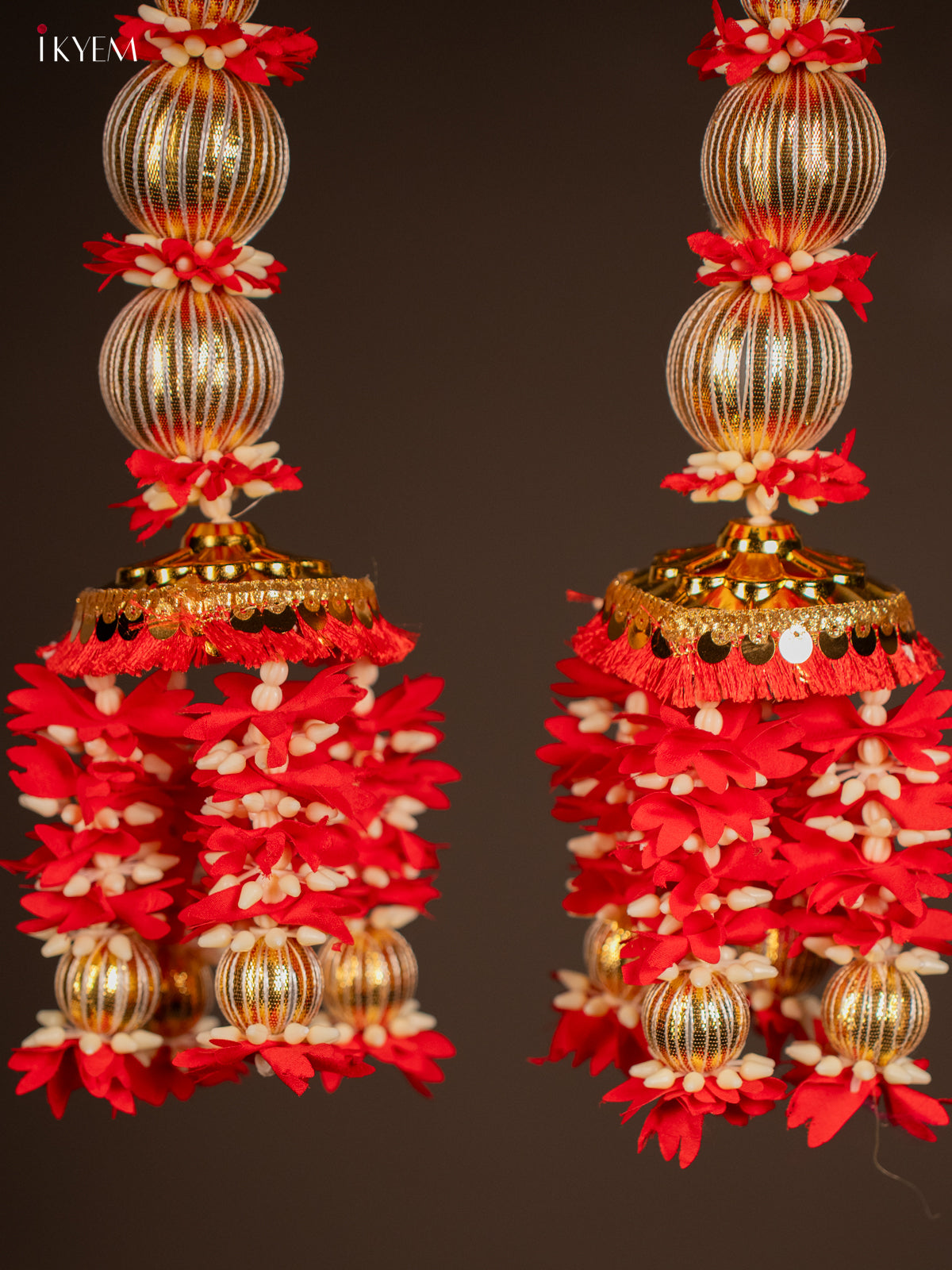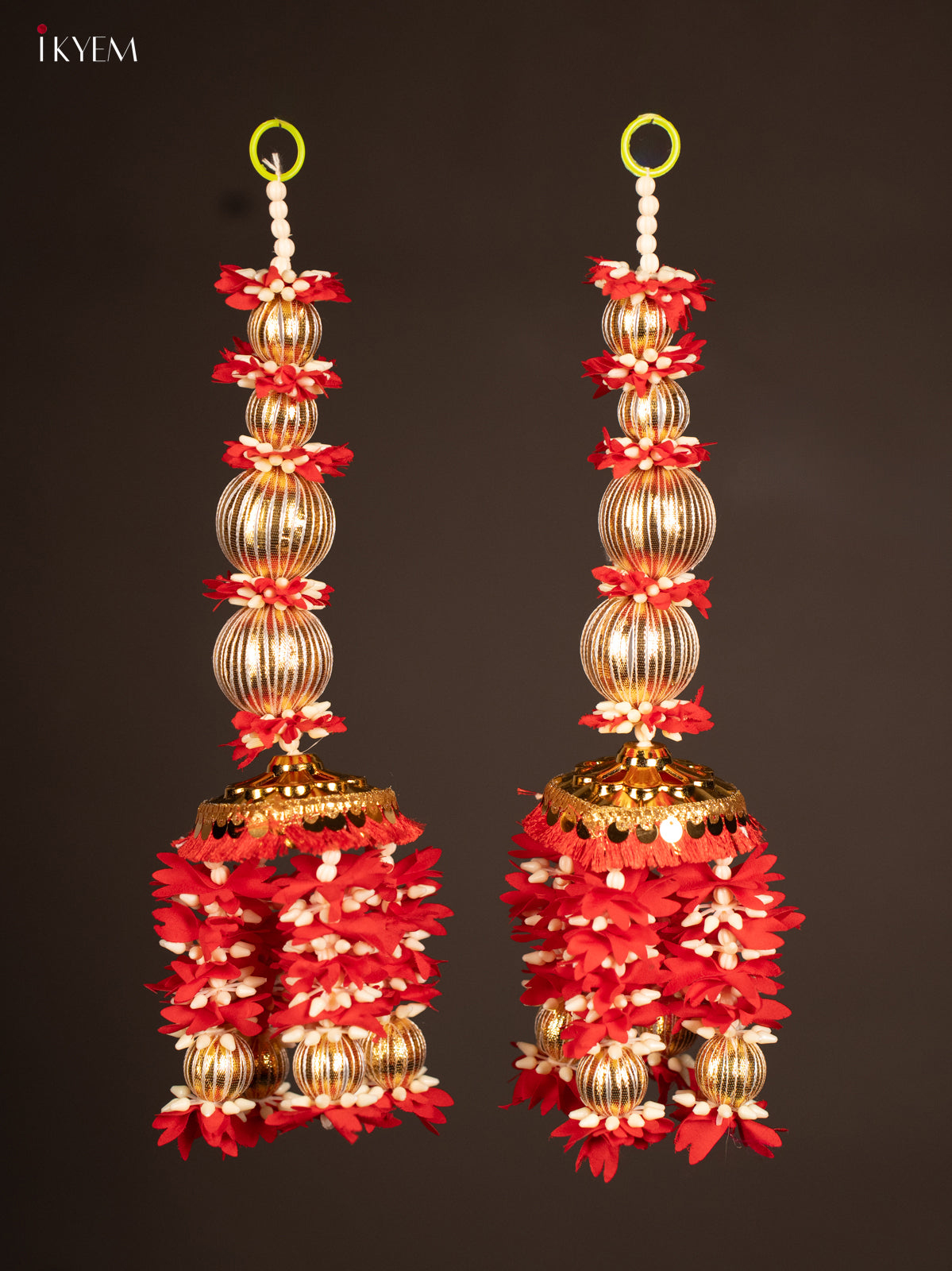 - Enhance your festive and ceremonial spaces with this Artificial Flowers Toran in red and white.