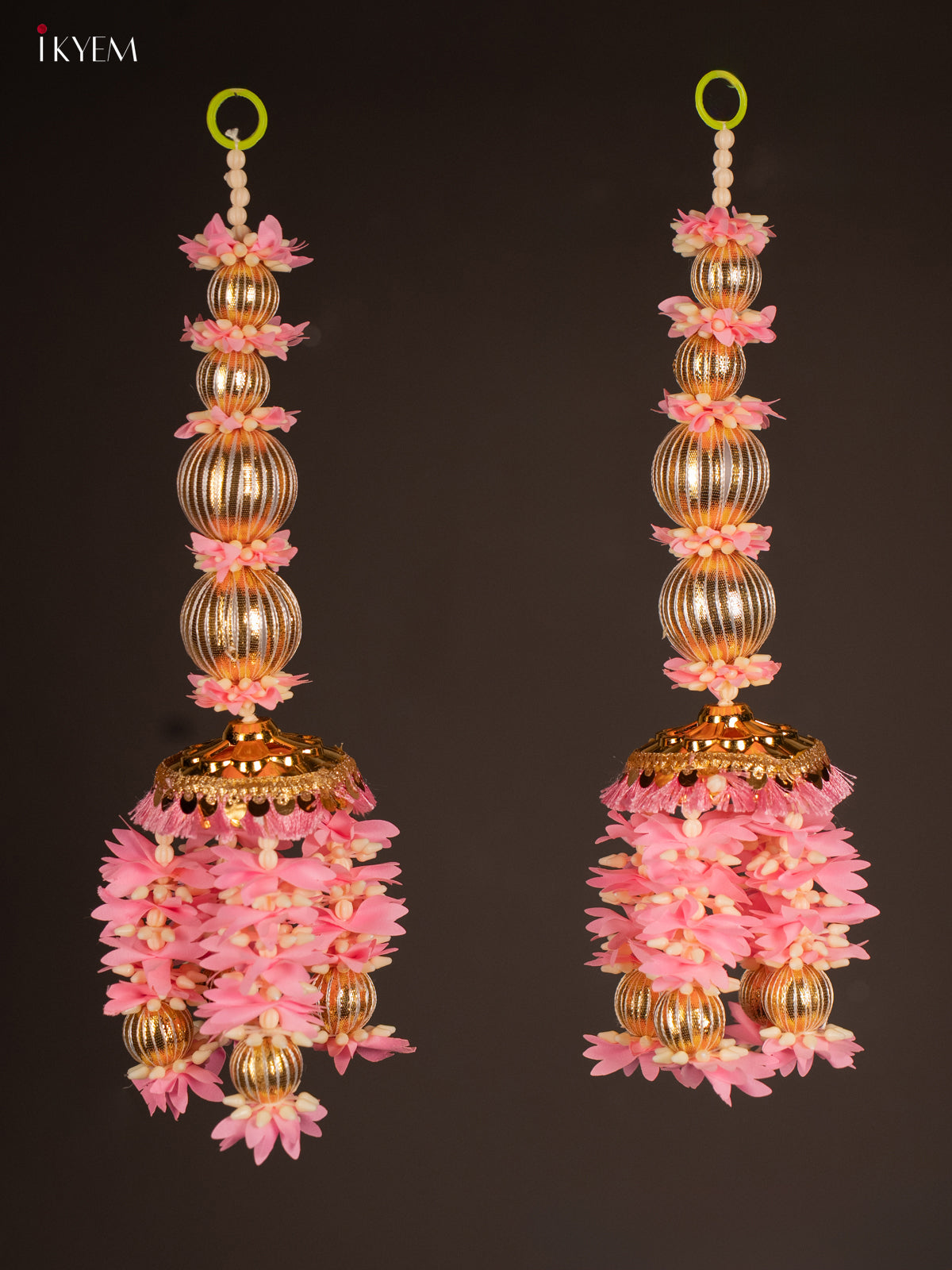 - Enhance your festive and ceremonial spaces with this Artificial Flowers Toran in light pink and white.