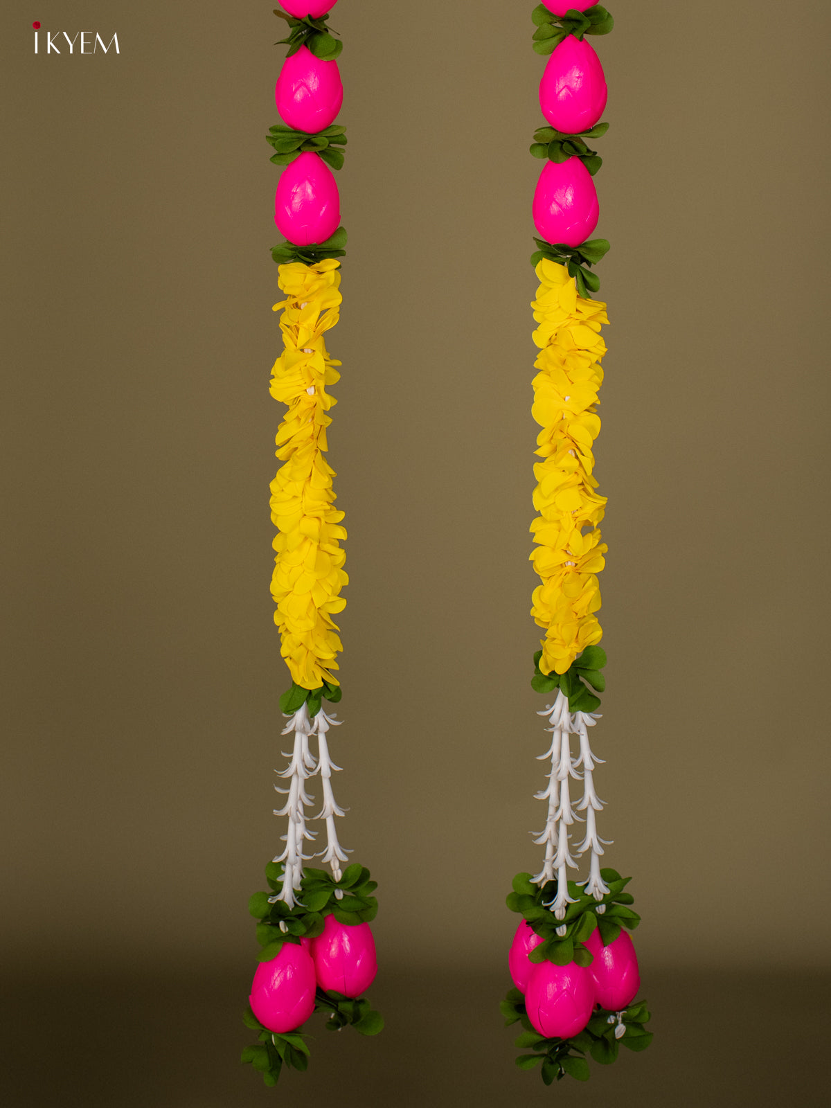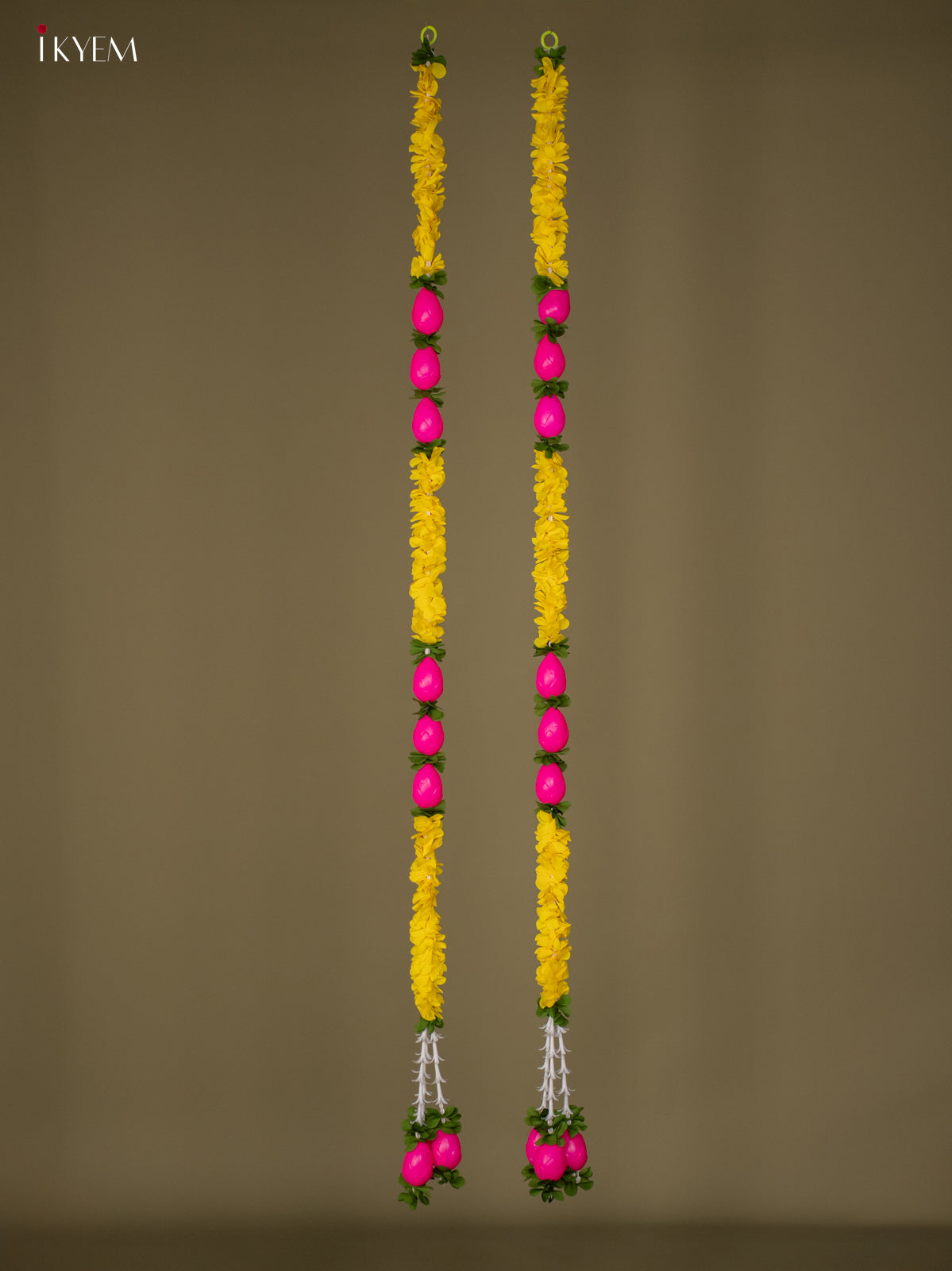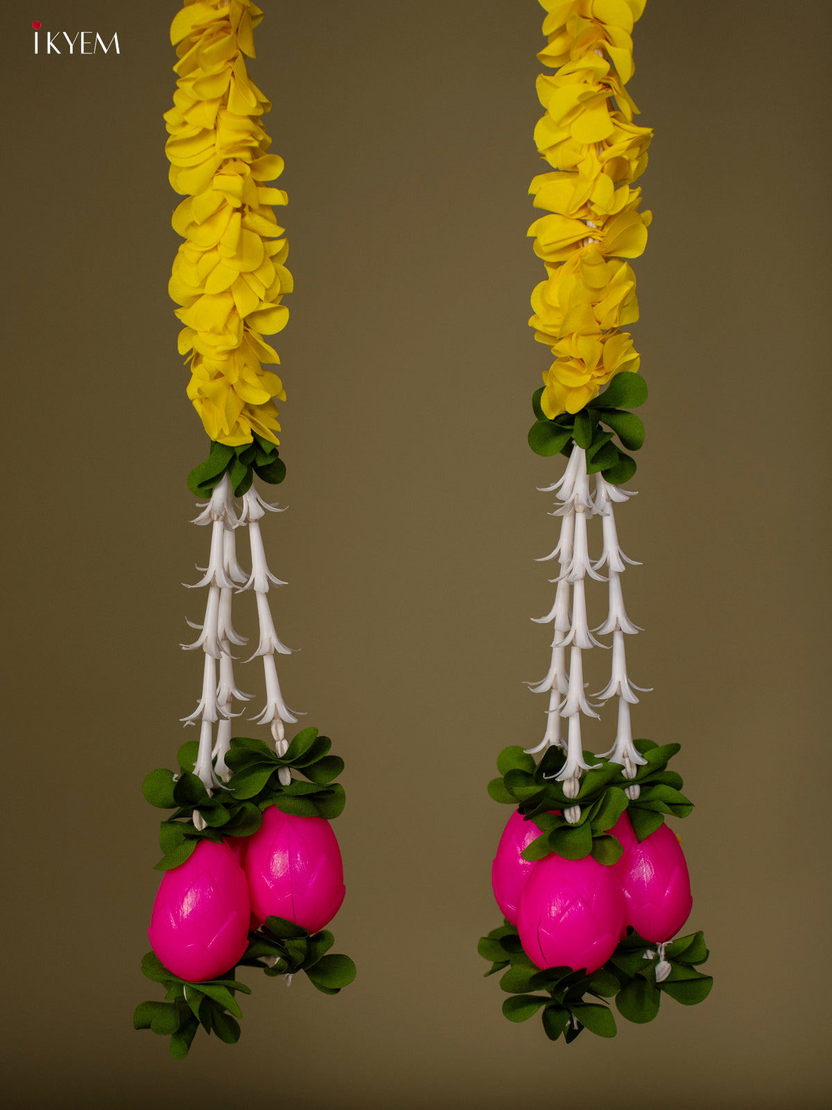- Enhance your festive and ceremonial spaces with this Artificial Flowers Toran in yellow and pink.